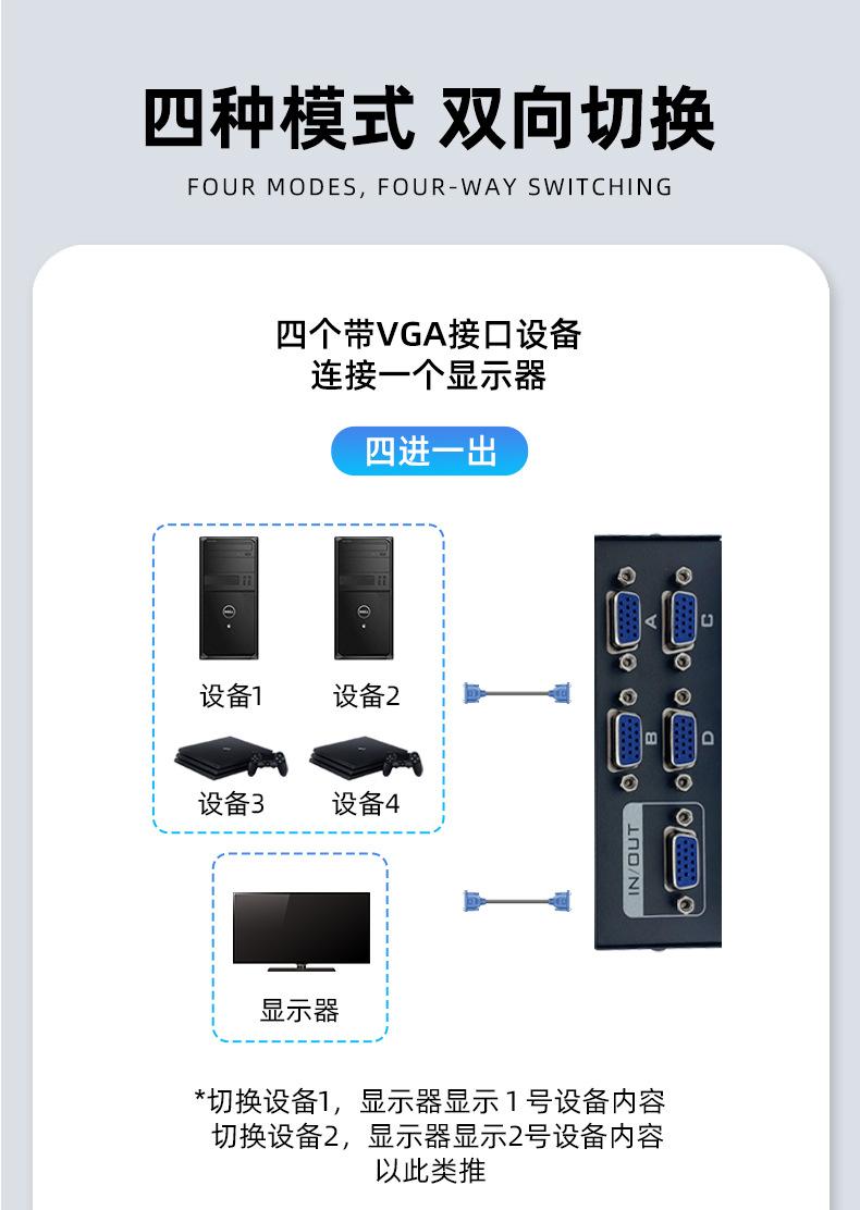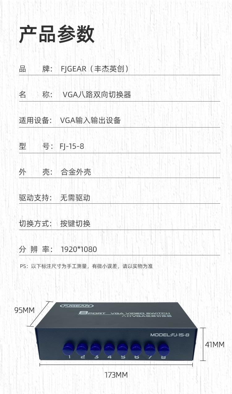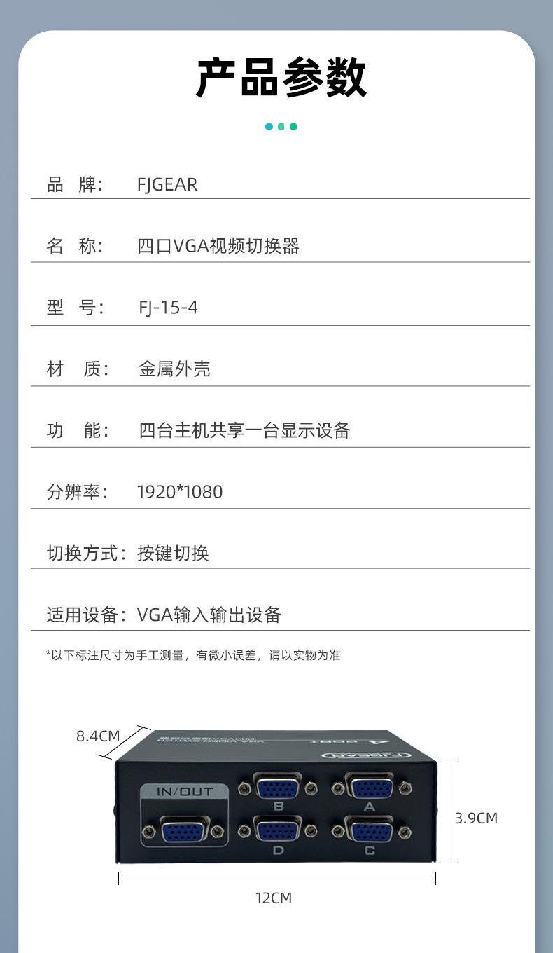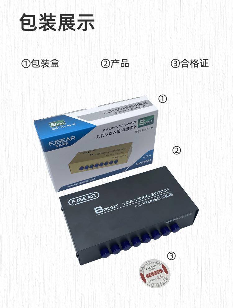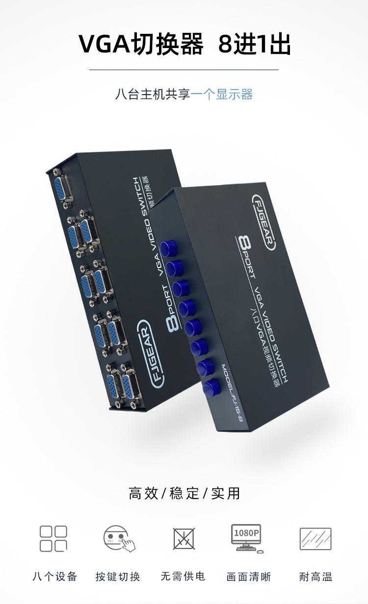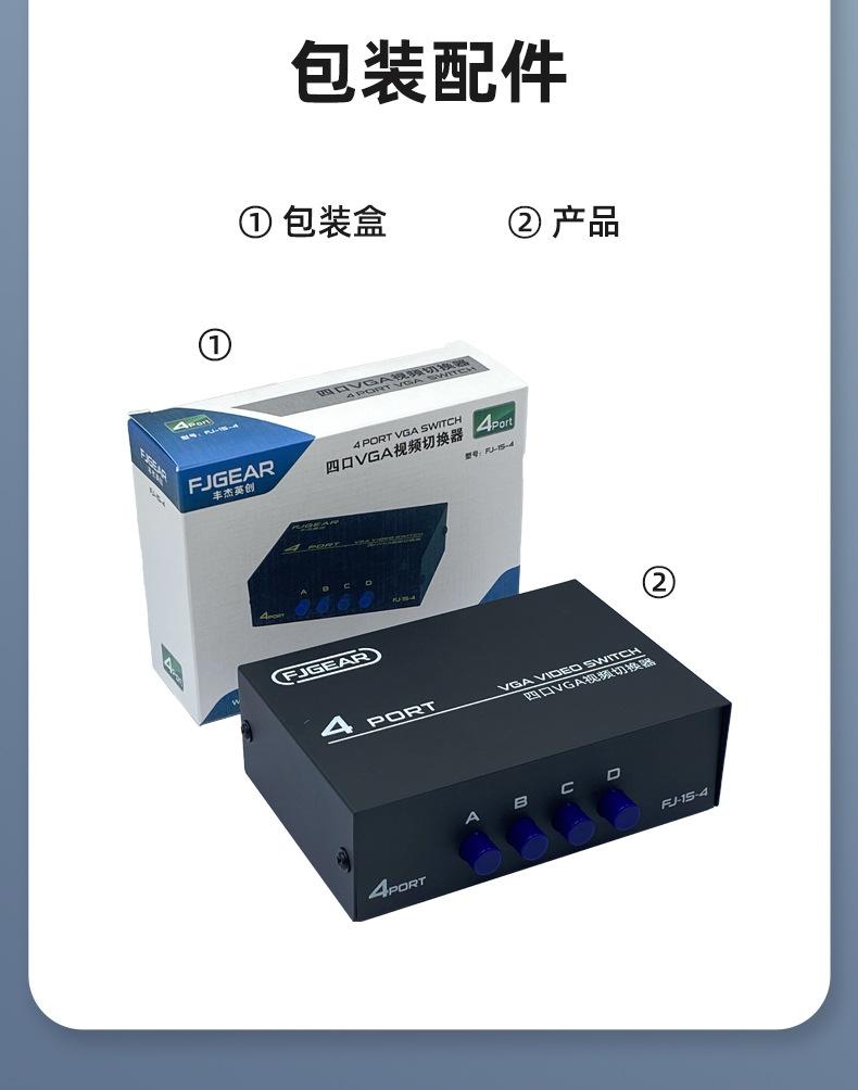 Interruptor VGA para computadora Fengjie cuidadosamente seleccionado Dos entradas y una salida Interruptor para host de múltiples computadoras Compartidor de 2 puertos VGA