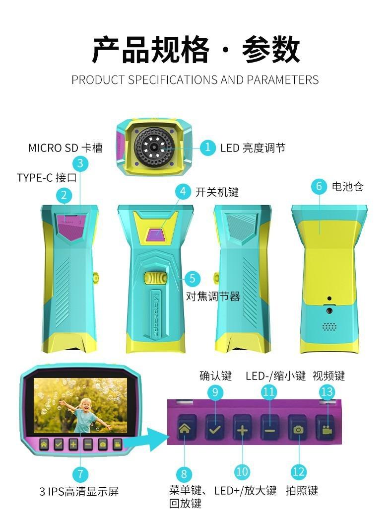 Microscopio electrónico para experimentos científicos de estudiantes, cámara para niños, microscopio fotográfico y de vídeo portátil de mano