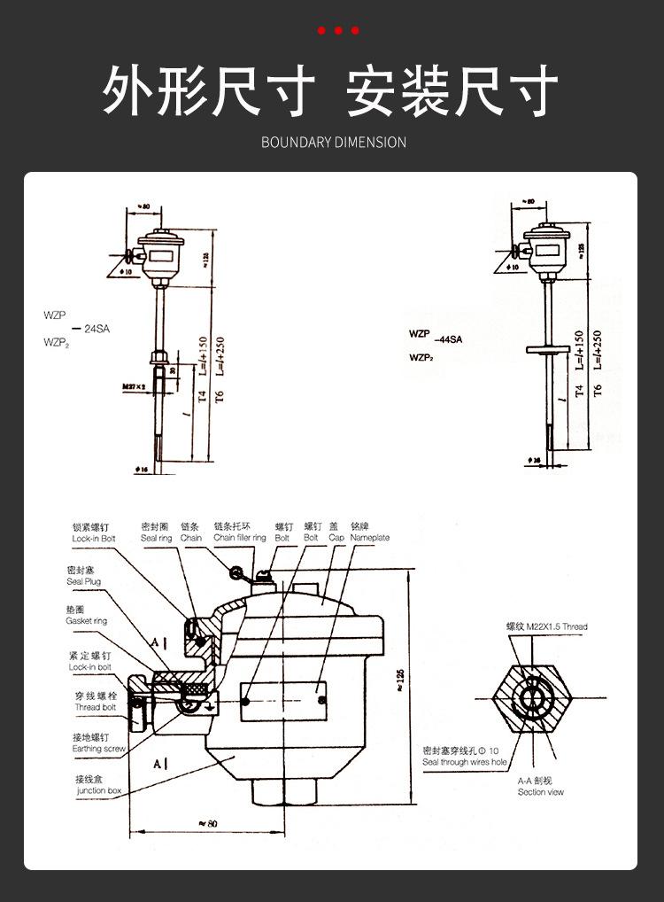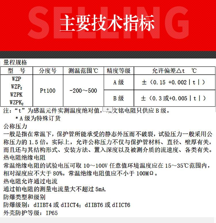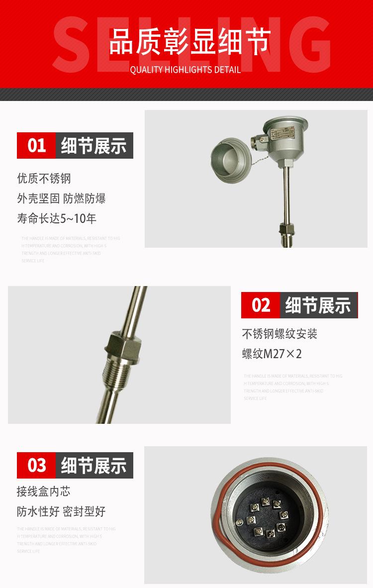 Resistencia térmica a prueba de explosiones, sonda PT100 resistente a altas temperaturas, sensor de temperatura integrado a prueba de explosiones WZP-24SA
