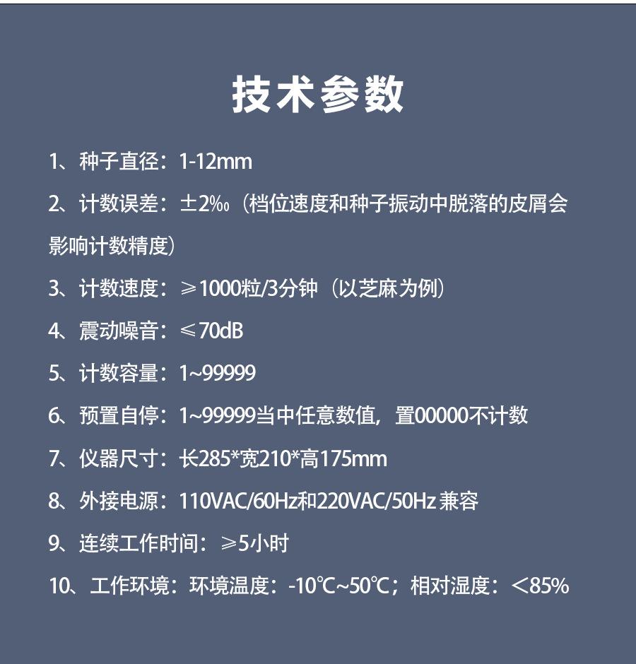 ±2‰ (the gear slot speed and dander that falls off during seed vibration will affect the counting accuracy)