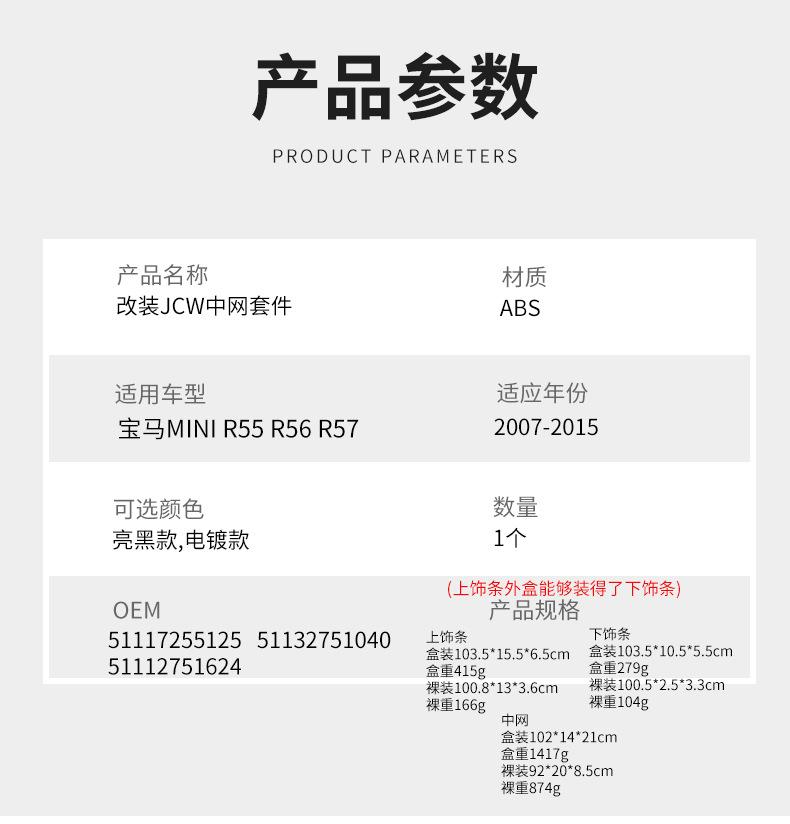 Adecuado para BMW mini MINI R55R56R57 rejilla de revestimiento JCW kit de barra delantera accesorios de modificación
