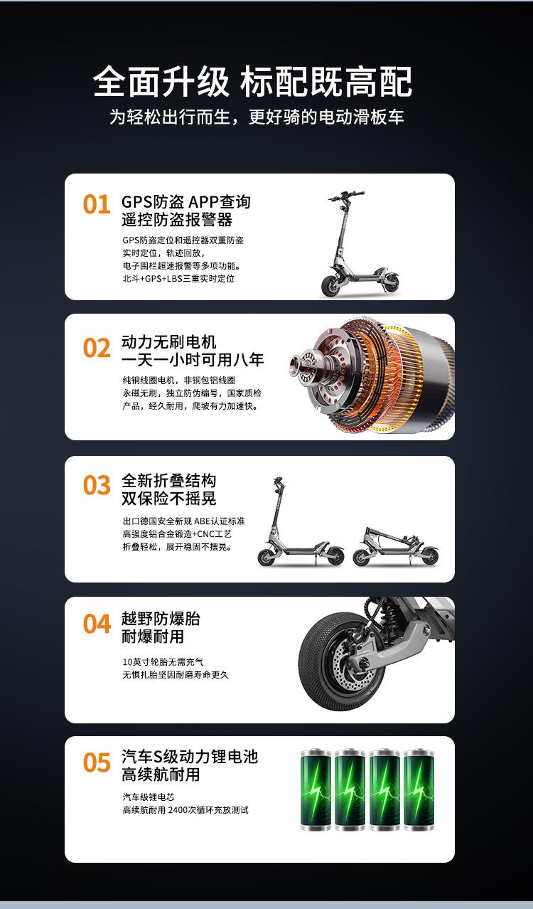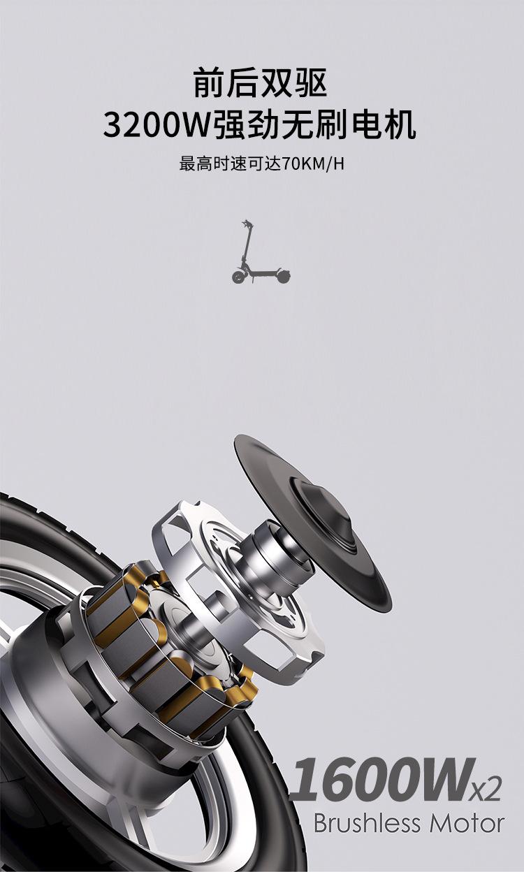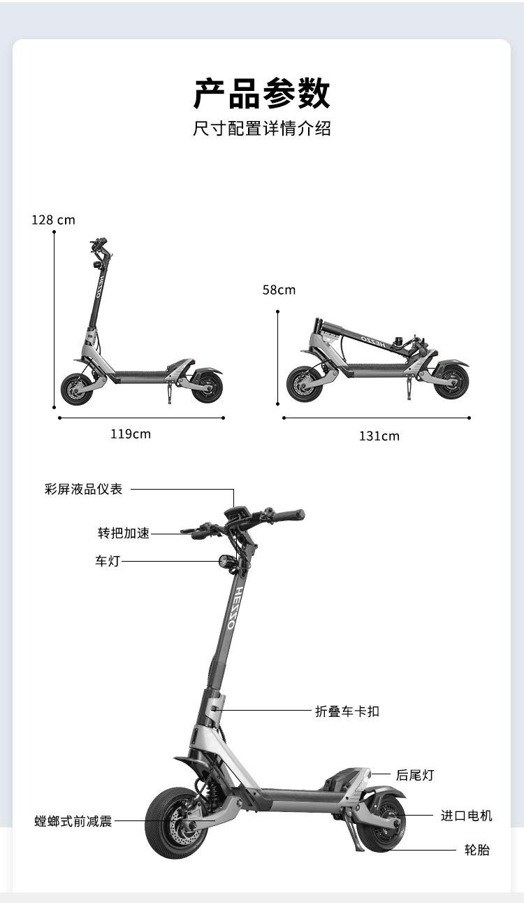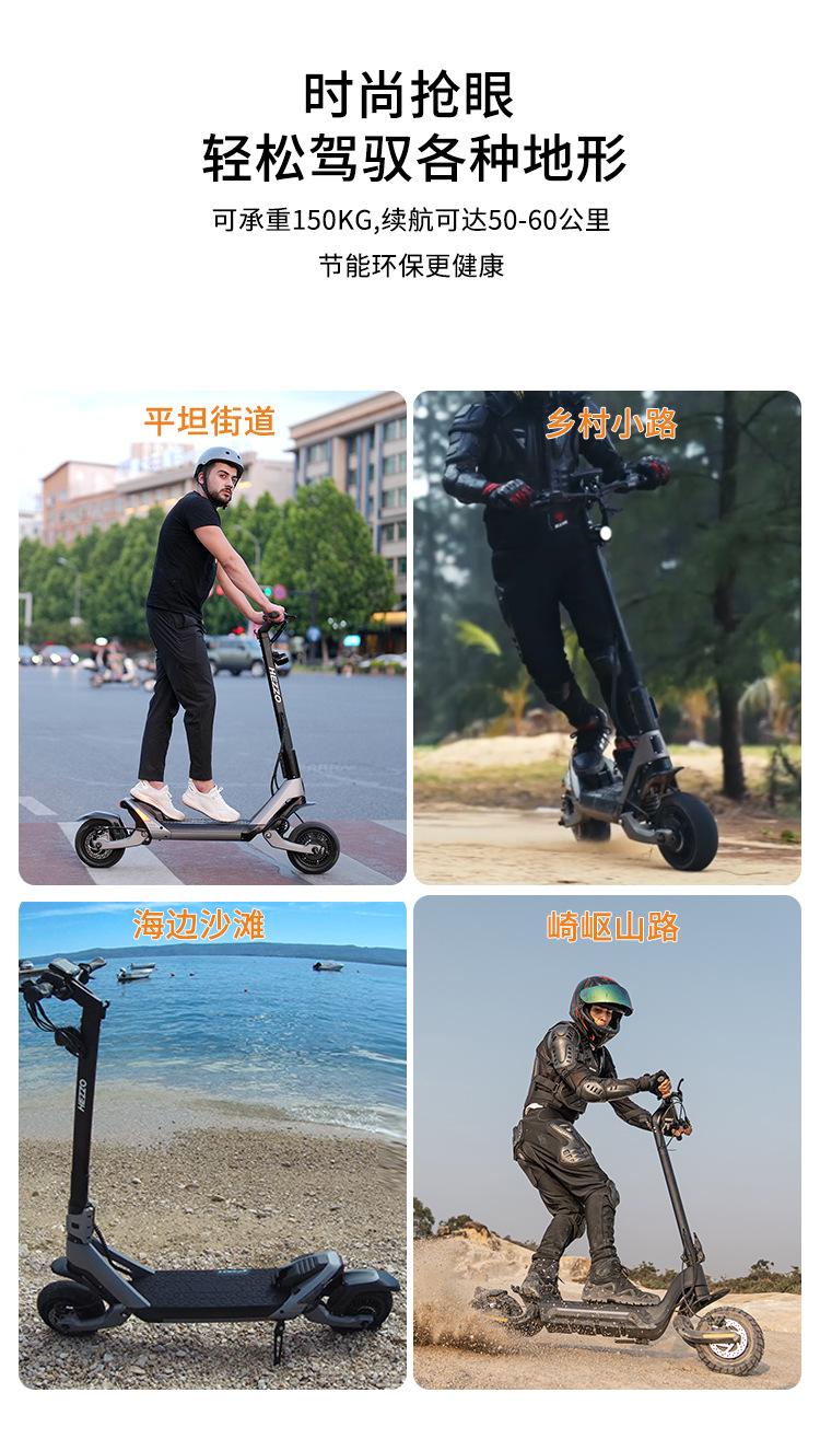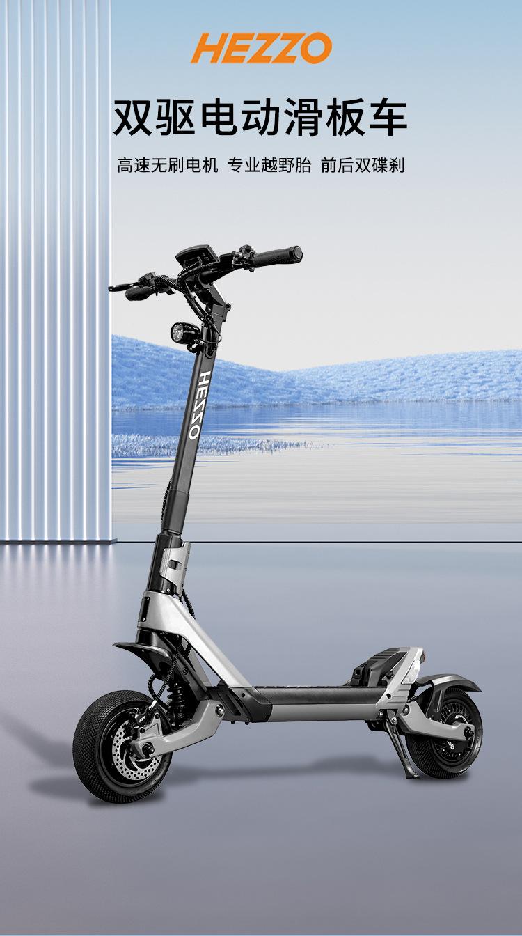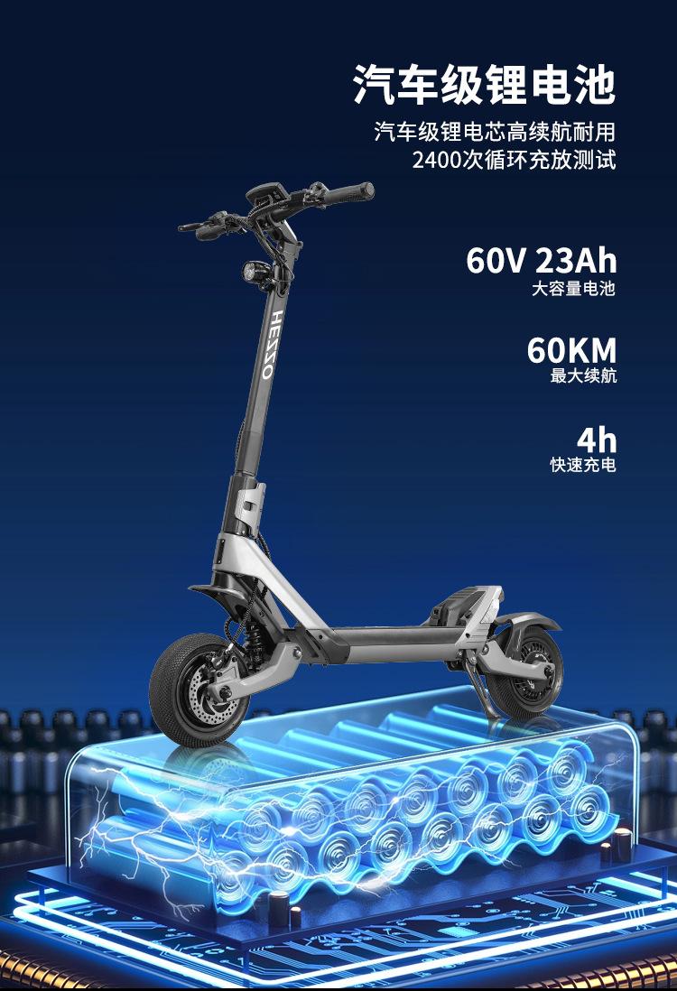 Scooter Eléctrico Todoterreno Hezzo para Exterior 60V3200W23Ah Doble Amortiguación Delantera y Trasera Neumático de 10 pulgadas Scooter Plegable