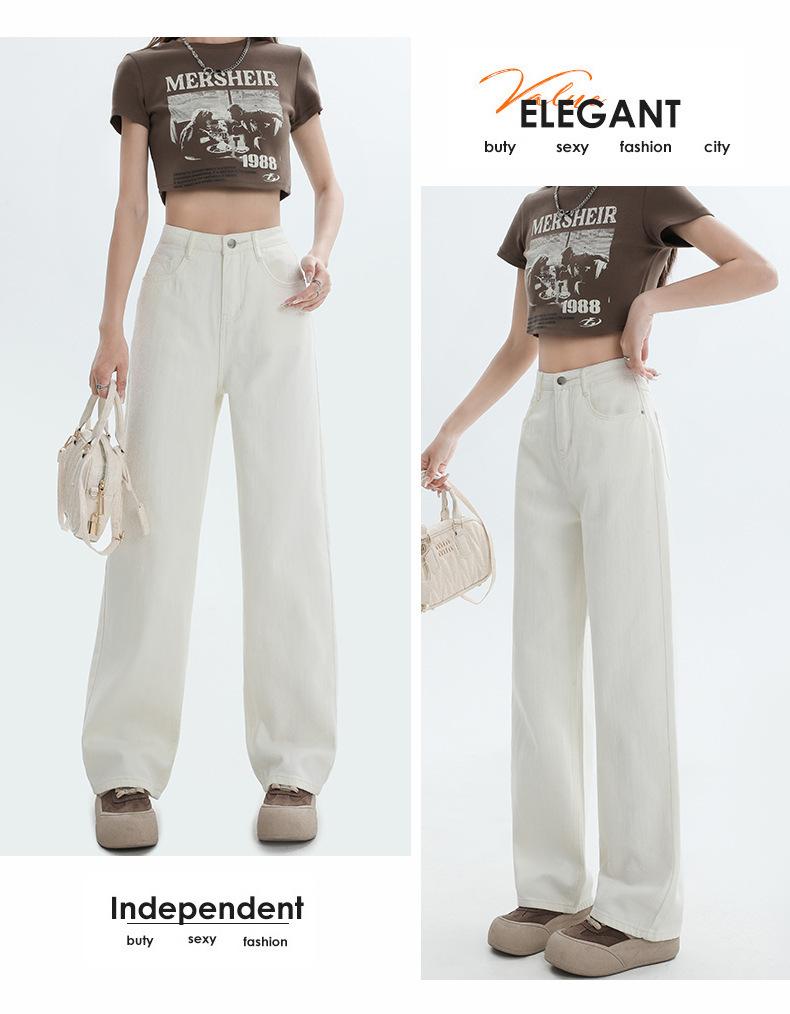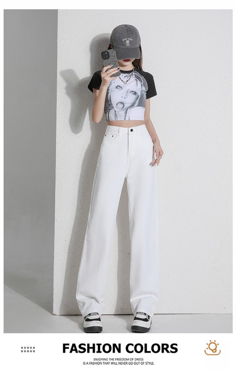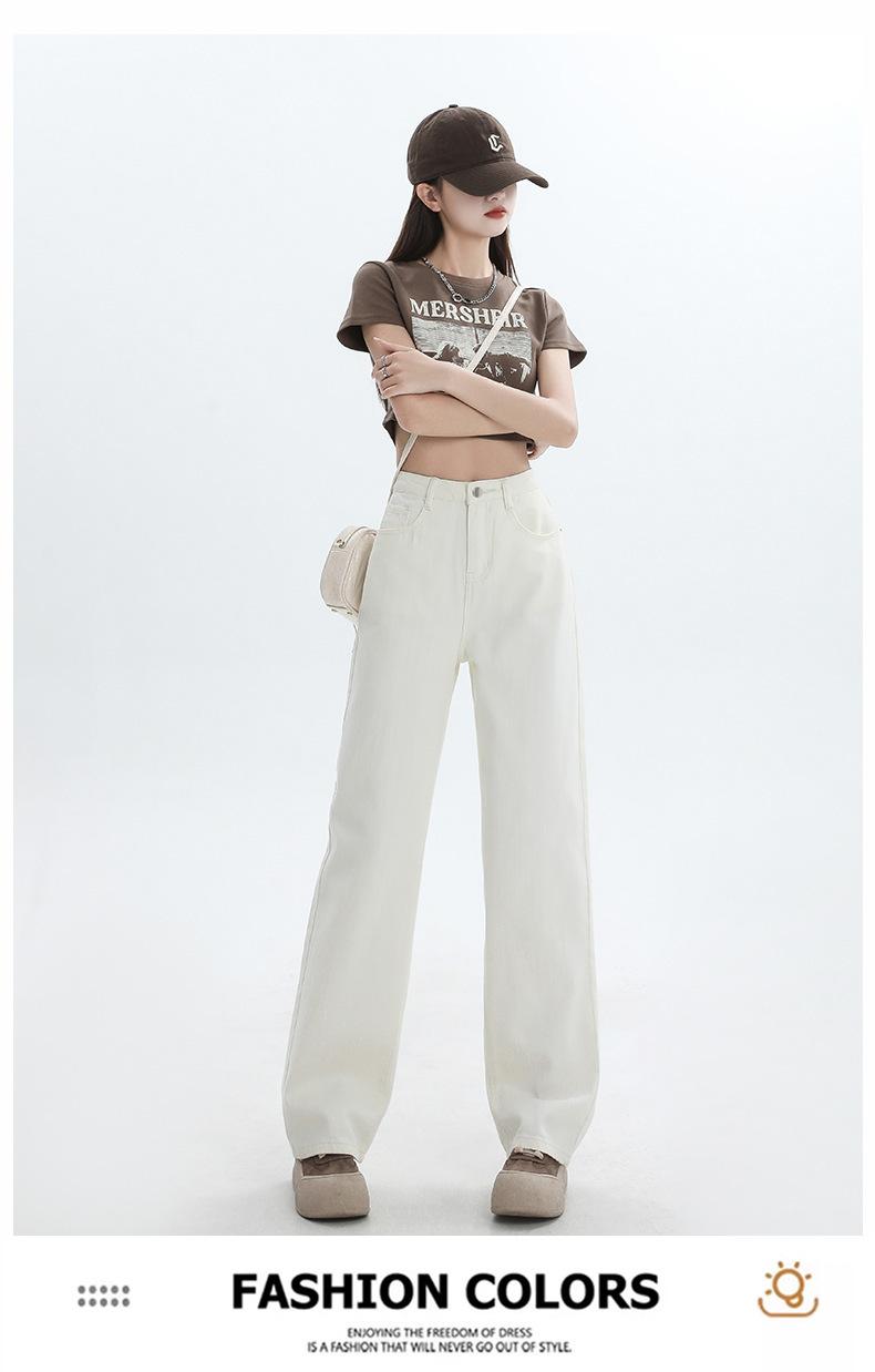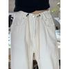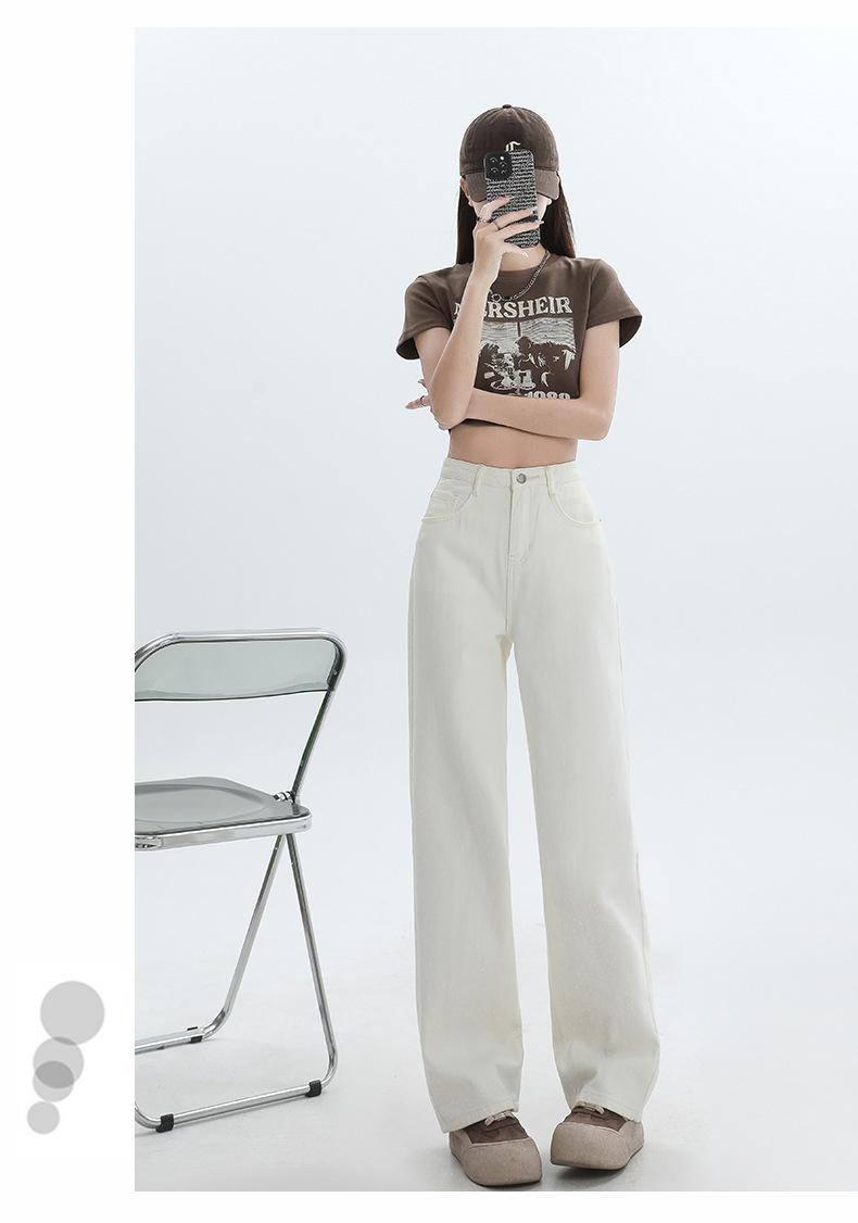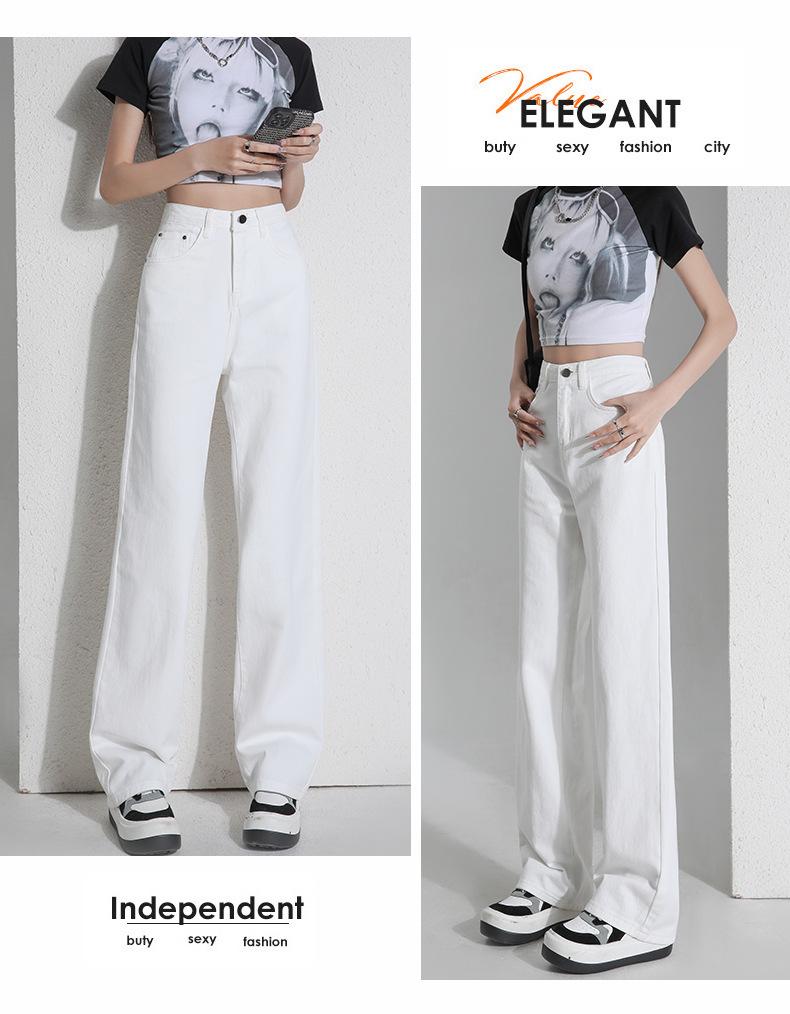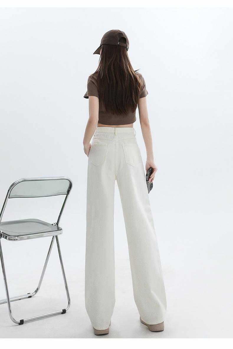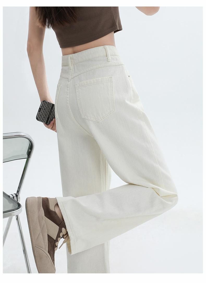 Pantalones vaqueros blancos holgados de pierna ancha estilo americano retro para mujer, pantalones ajustados de cintura alta, pantalones rectos de algodón de color liso.