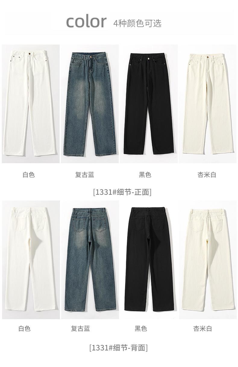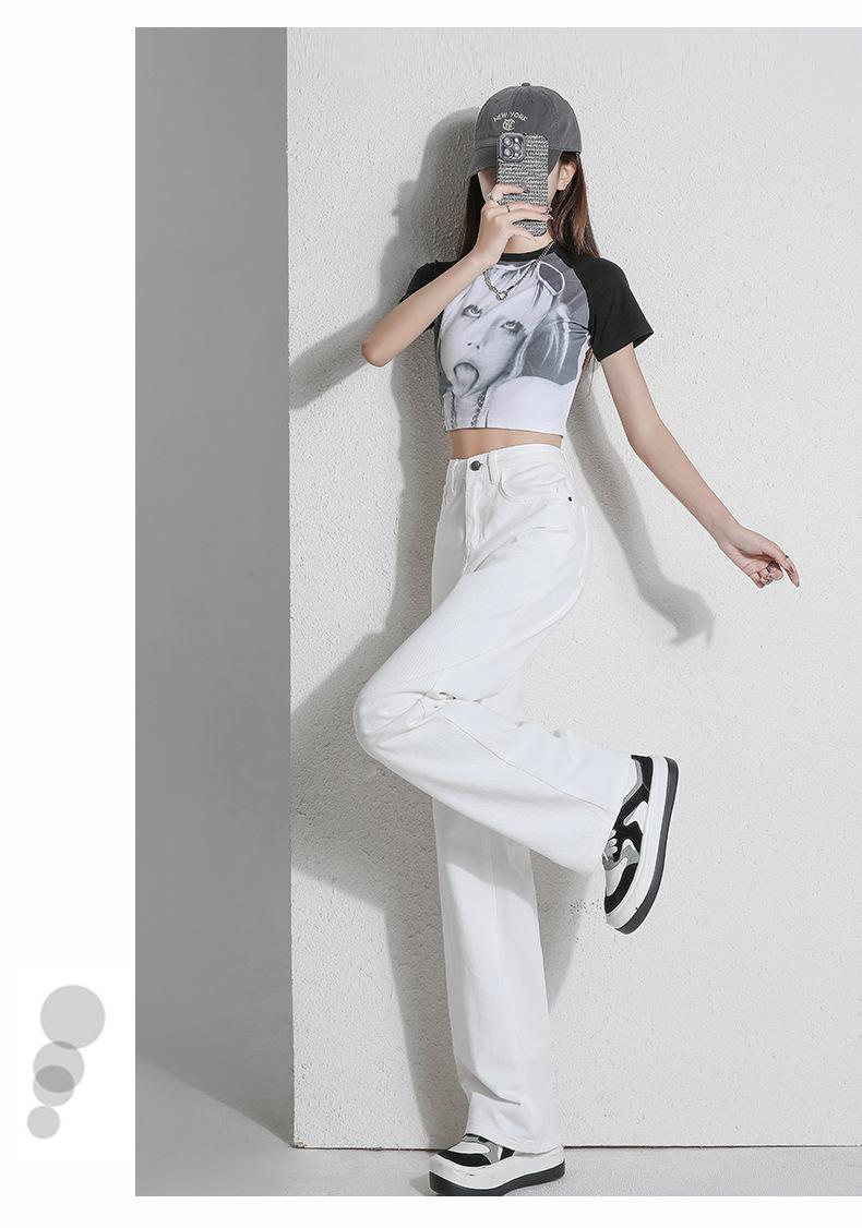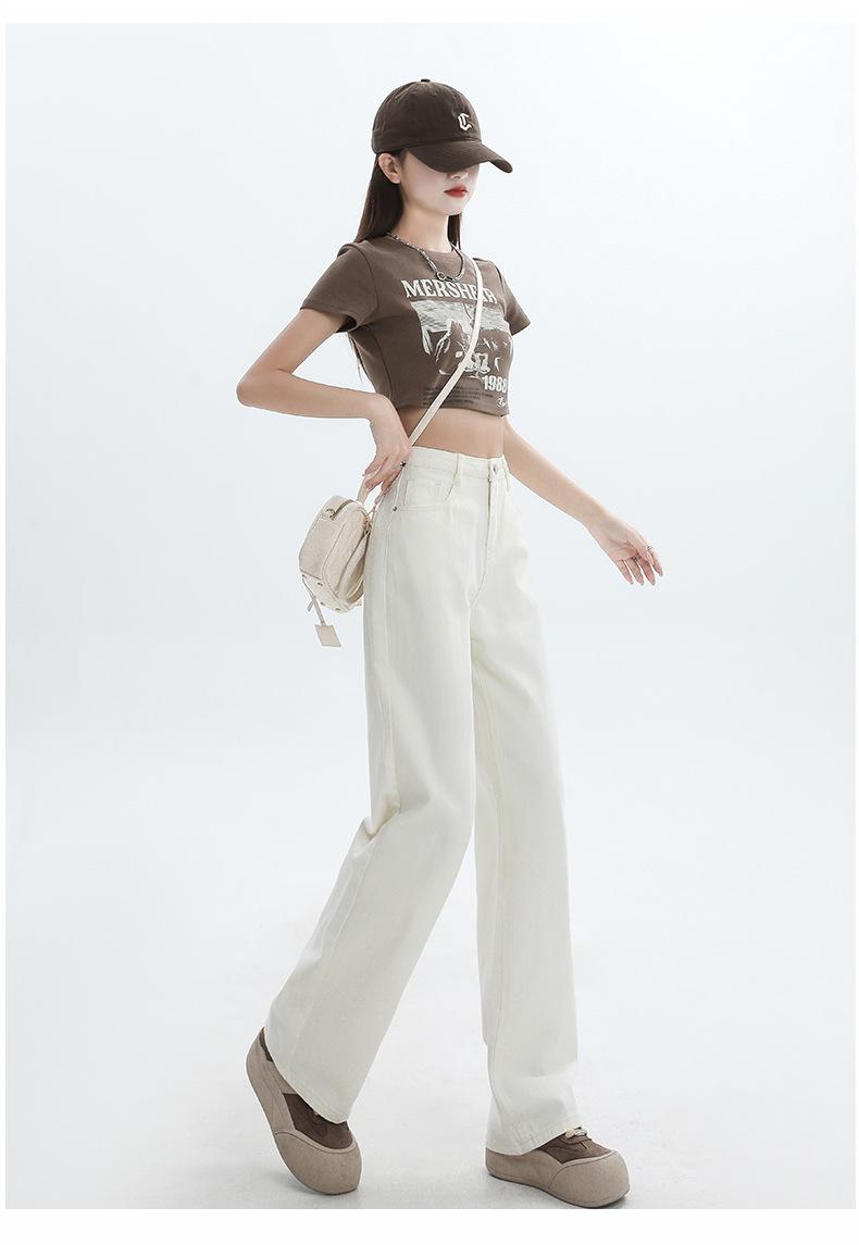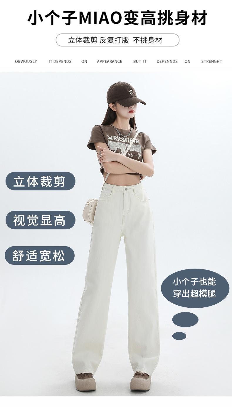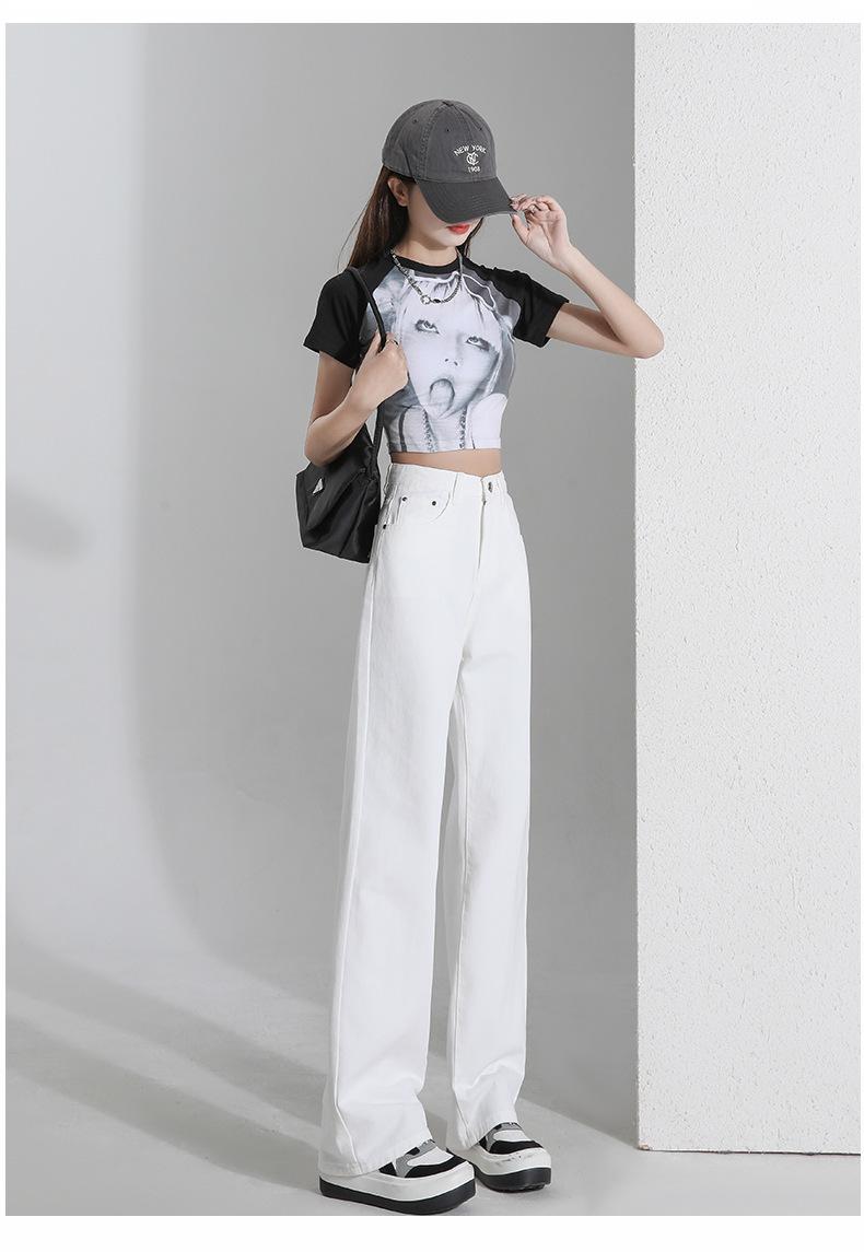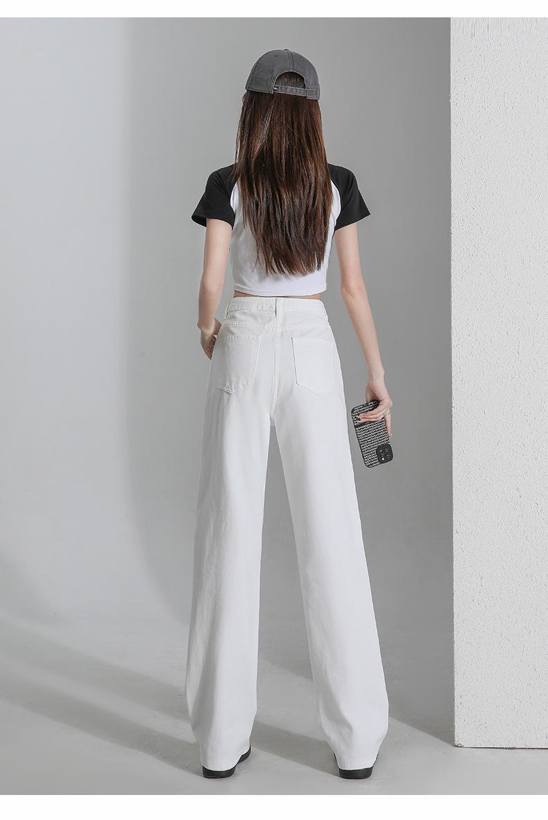 Pantalones vaqueros blancos holgados de pierna ancha estilo americano retro para mujer, pantalones ajustados de cintura alta, pantalones rectos de algodón de color liso.