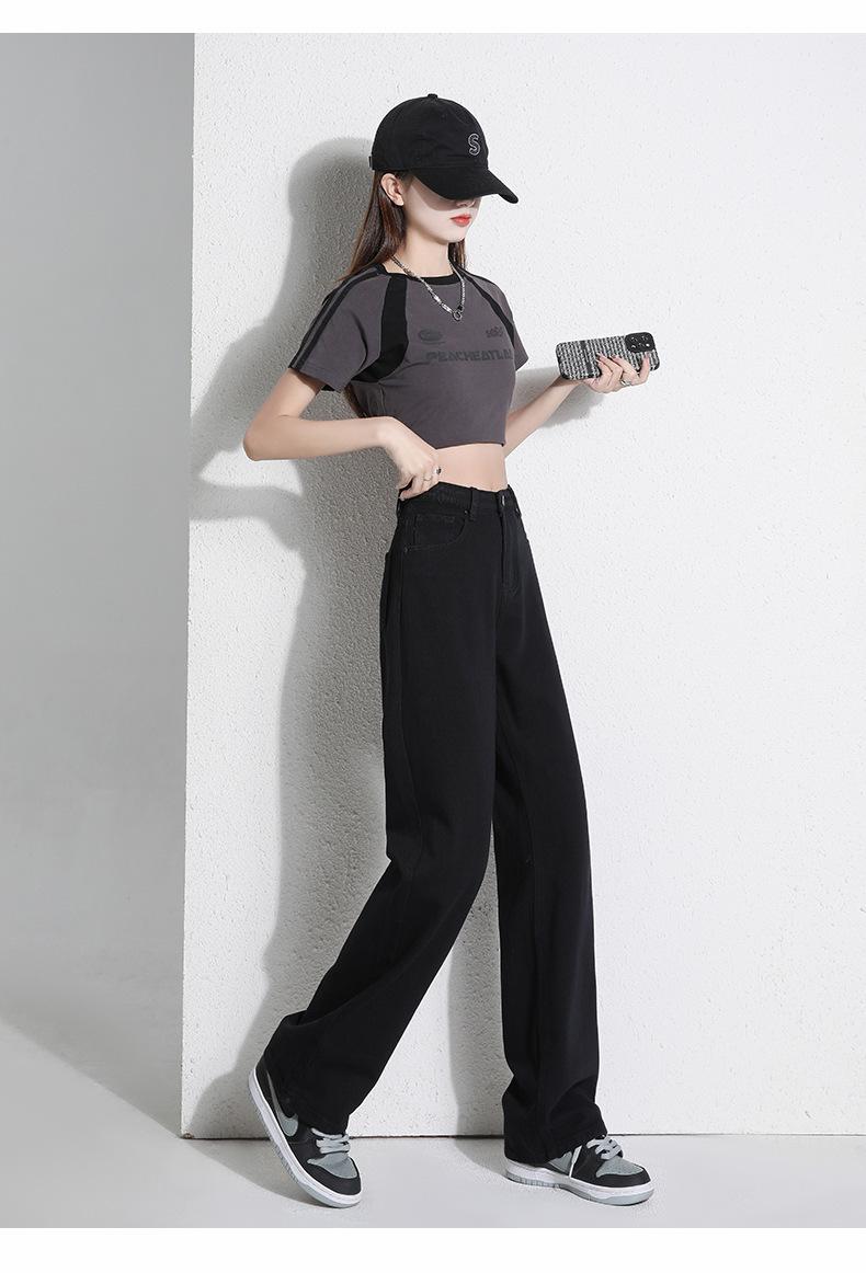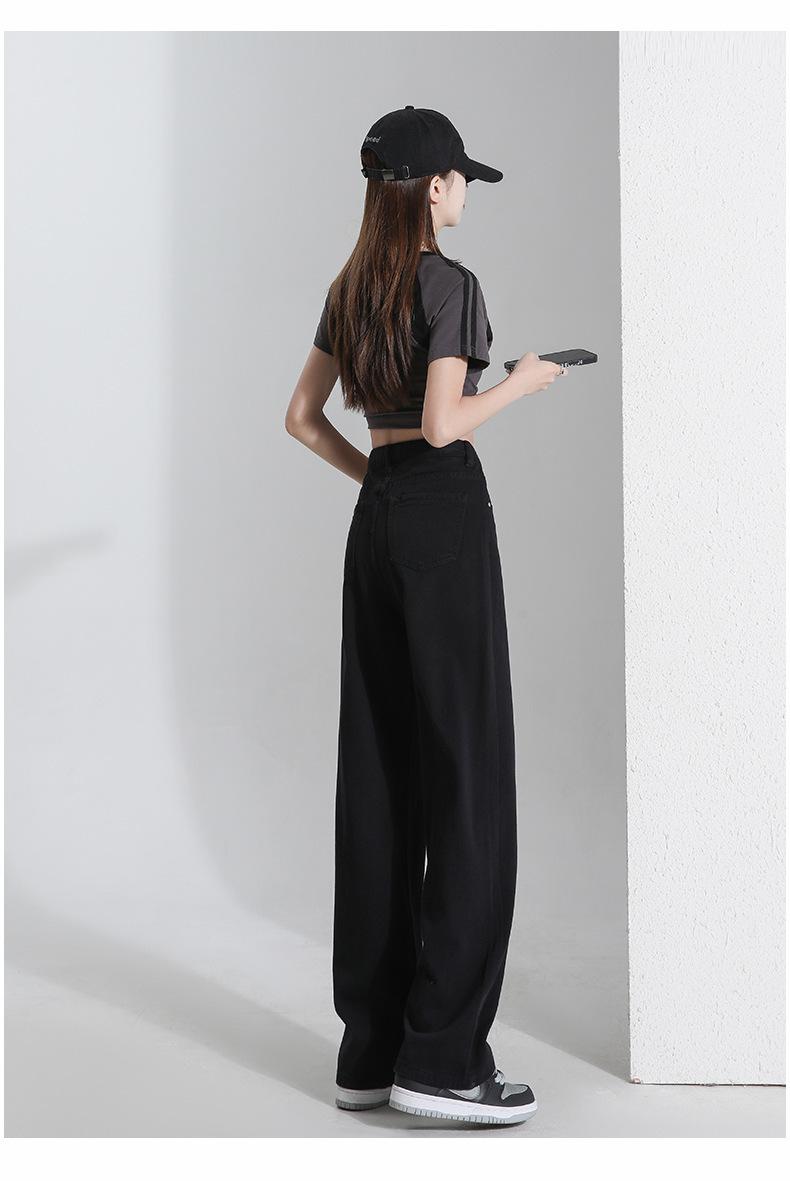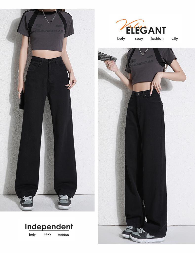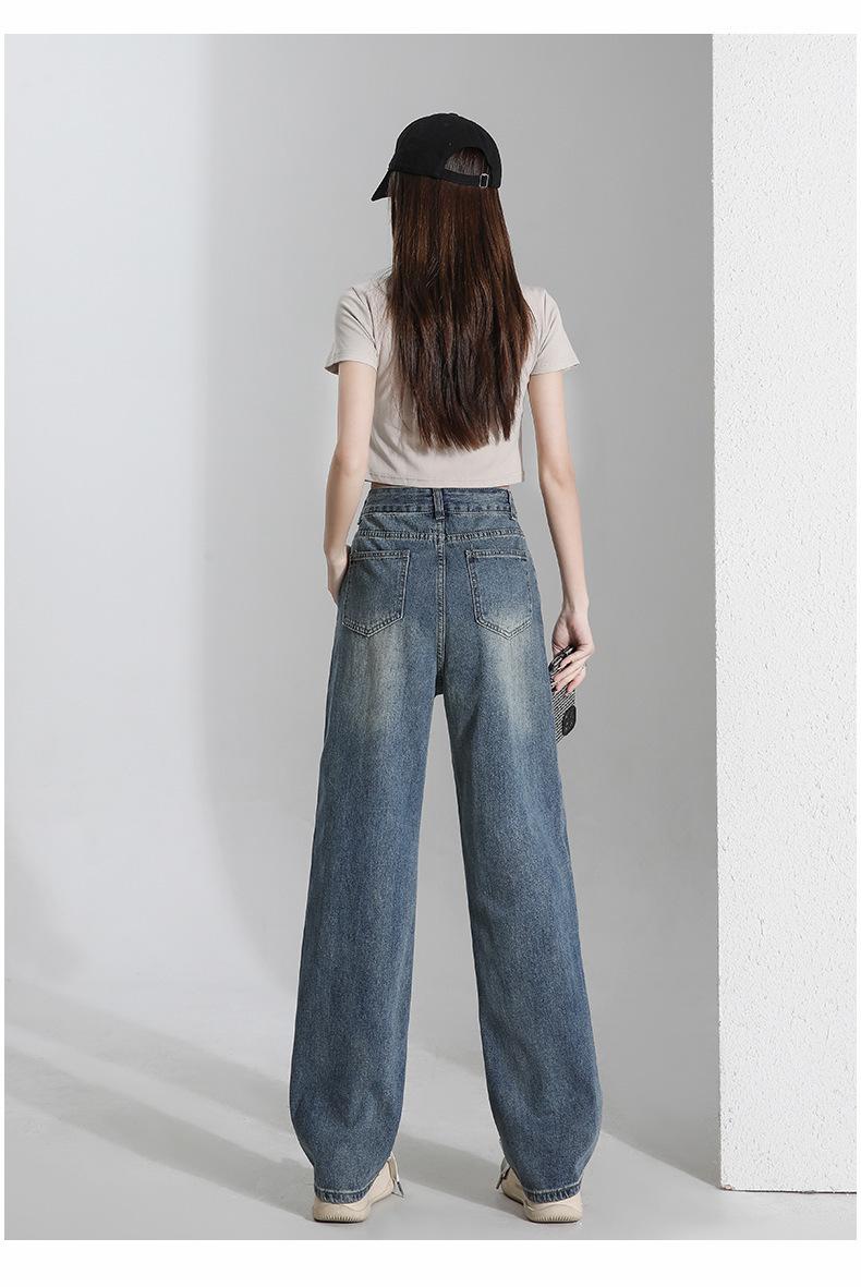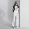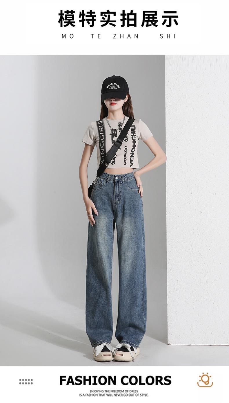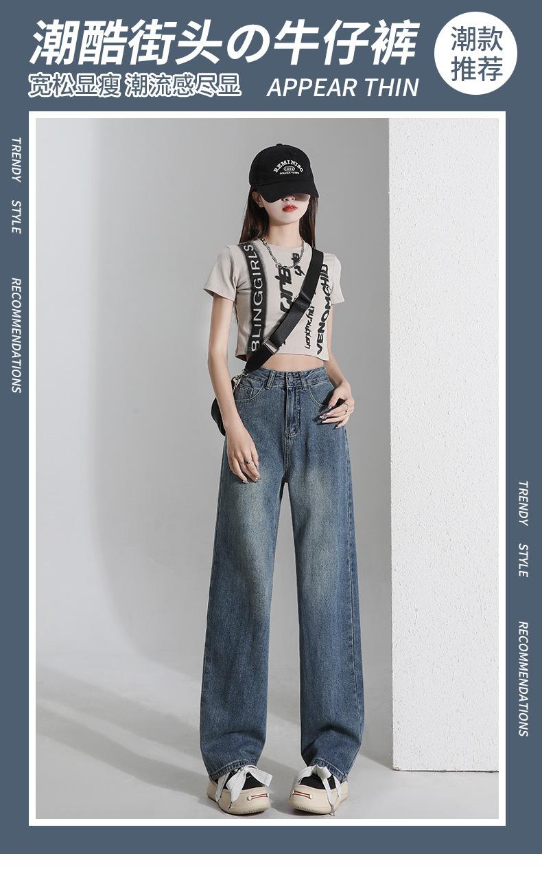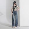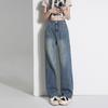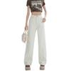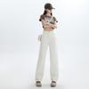 Pantalones vaqueros blancos holgados de pierna ancha estilo americano retro para mujer, pantalones ajustados de cintura alta, pantalones rectos de algodón de color liso.