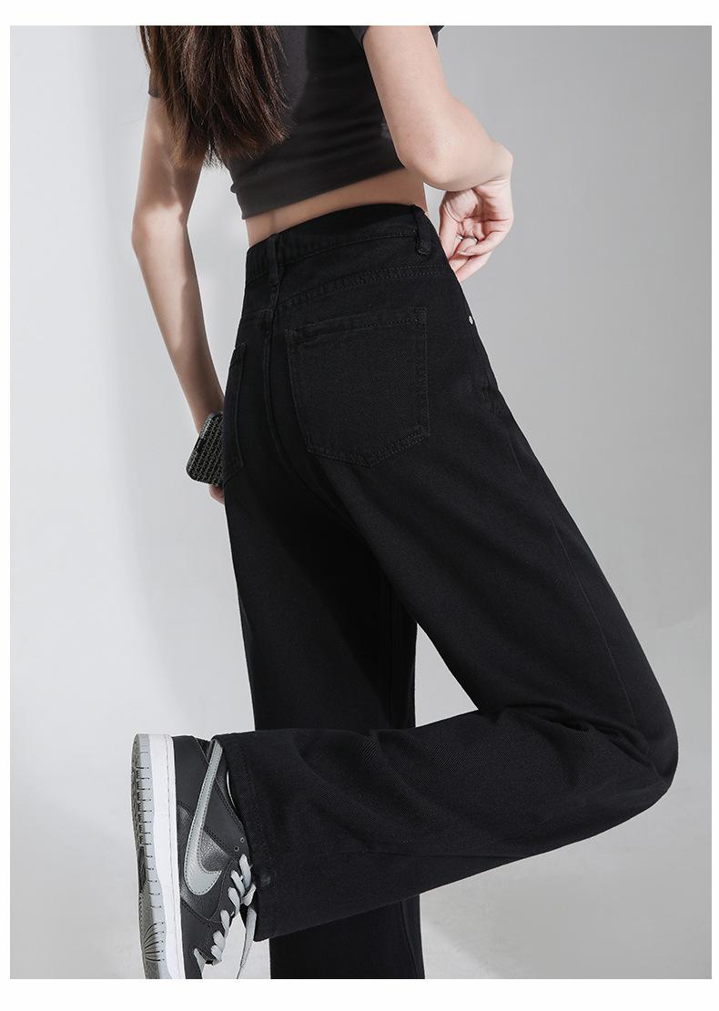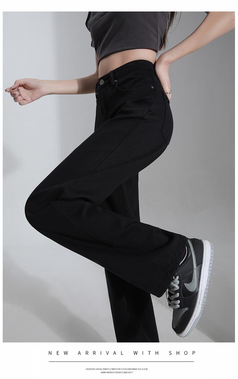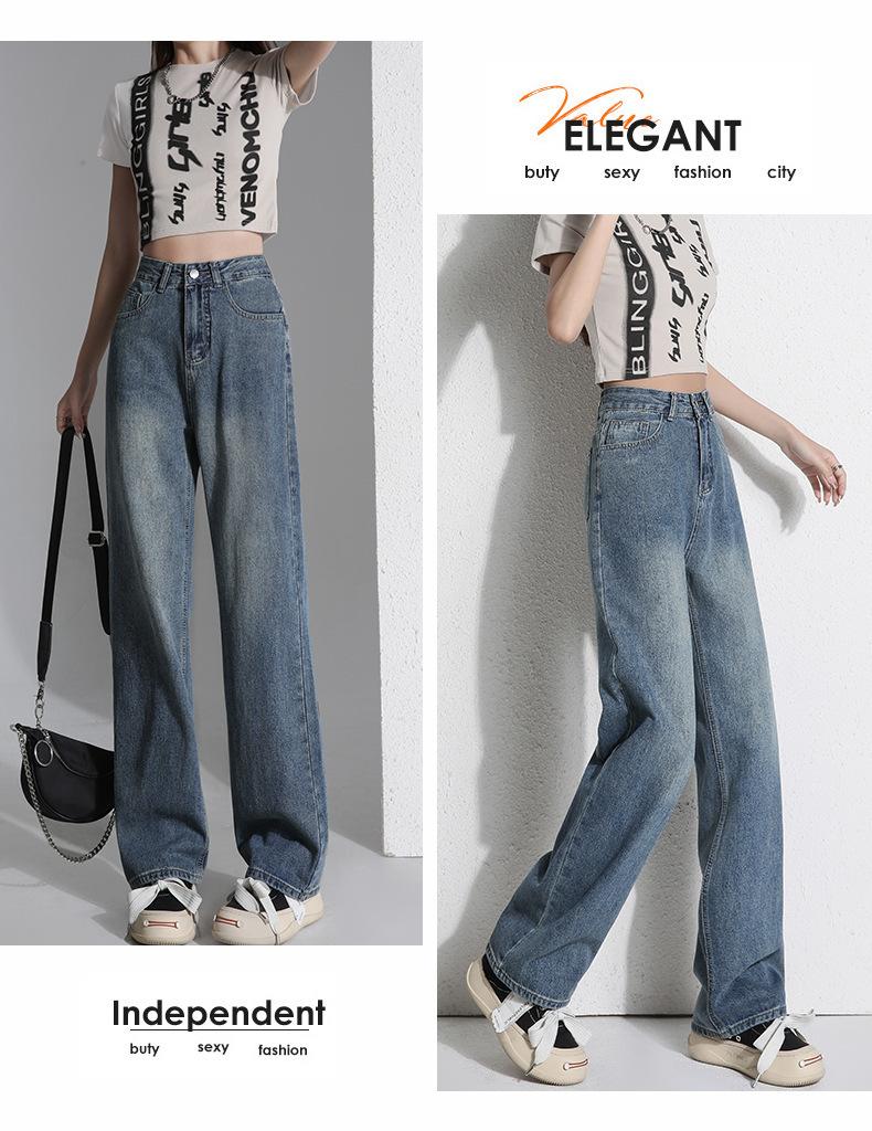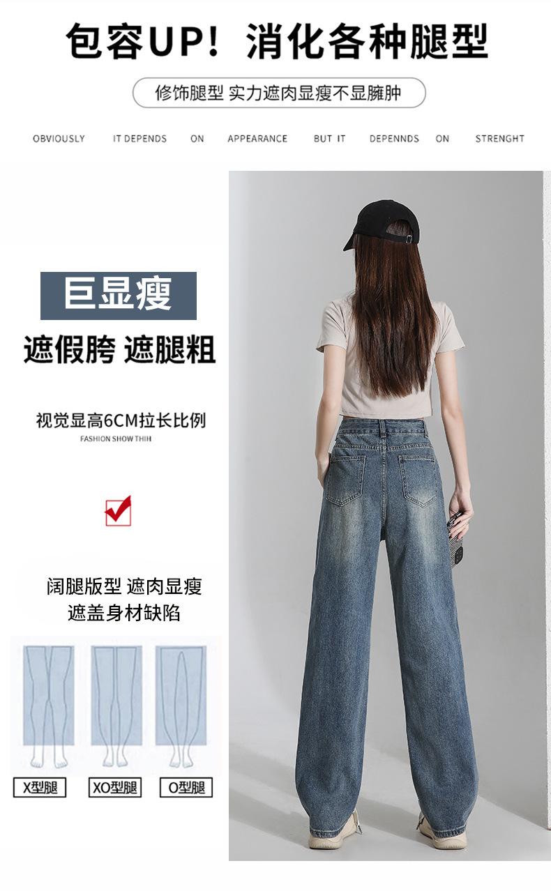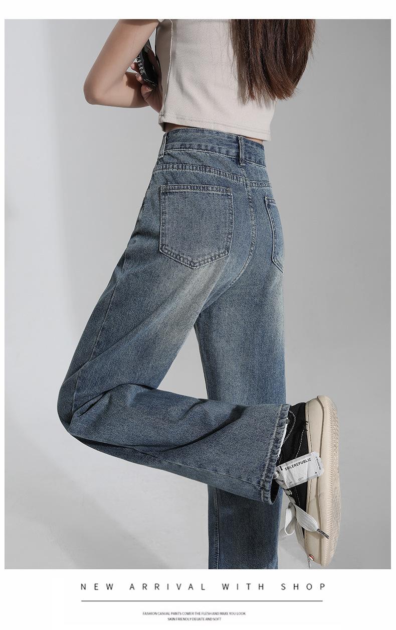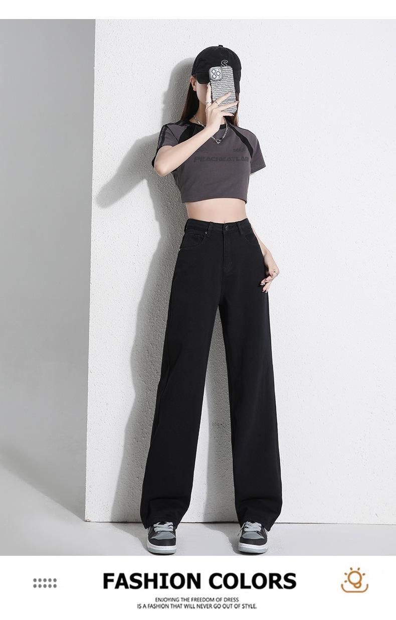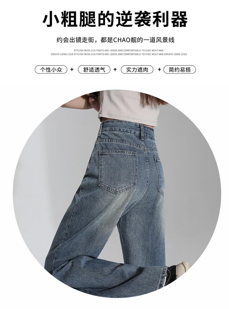 Pantalones vaqueros blancos holgados de pierna ancha estilo americano retro para mujer, pantalones ajustados de cintura alta, pantalones rectos de algodón de color liso.
