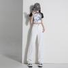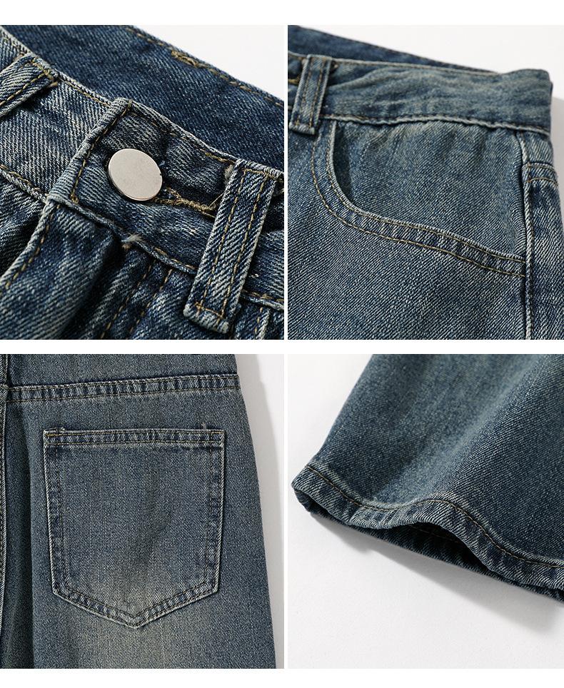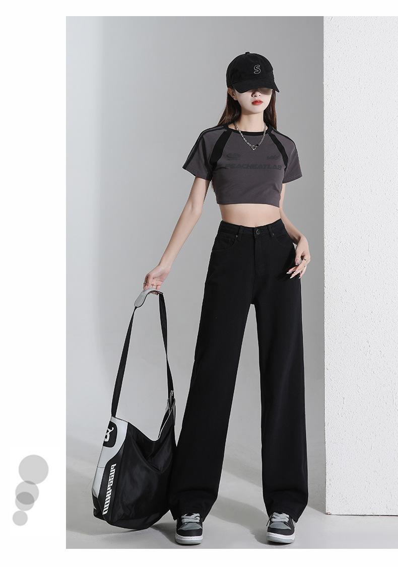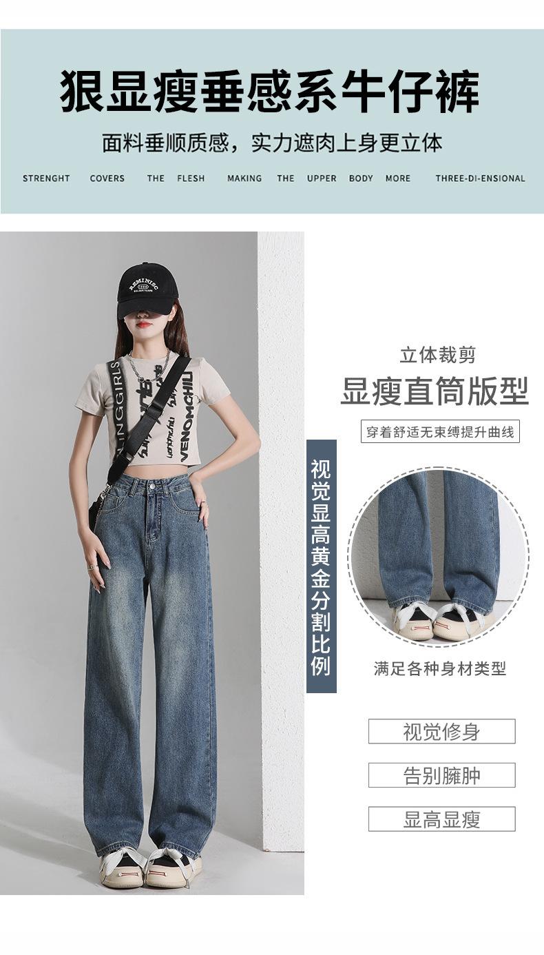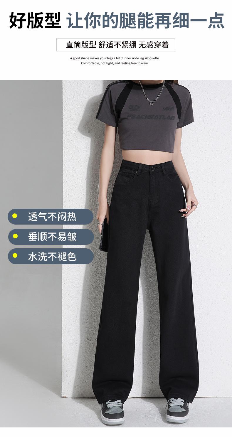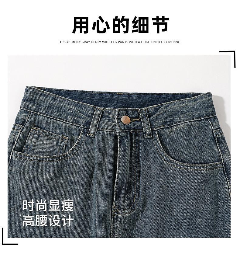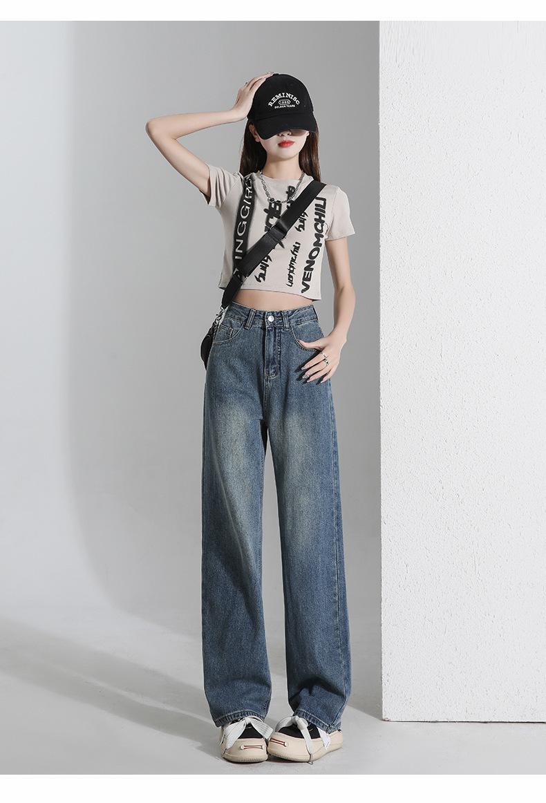 Pantalones vaqueros blancos holgados de pierna ancha estilo americano retro para mujer, pantalones ajustados de cintura alta, pantalones rectos de algodón de color liso.