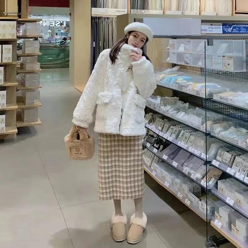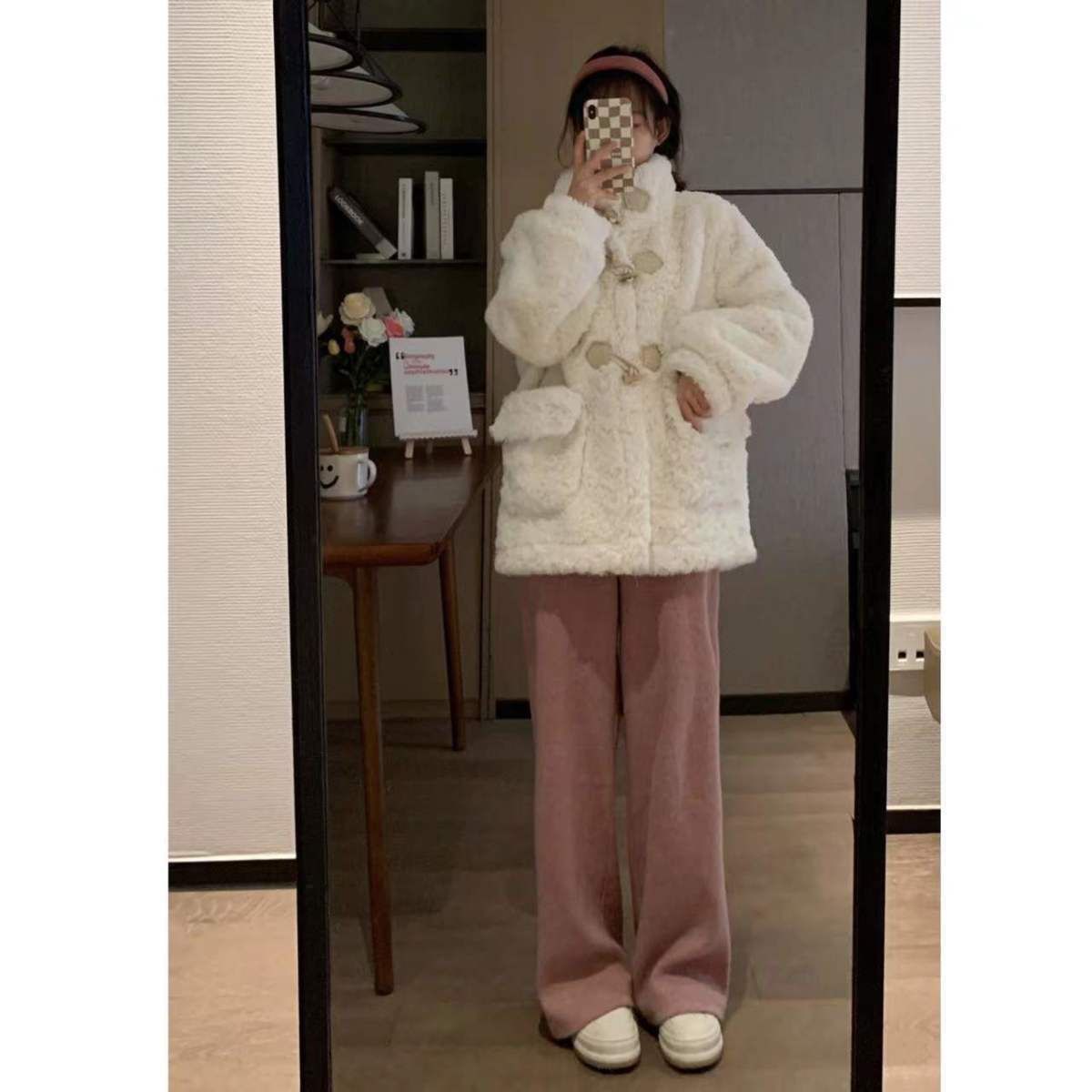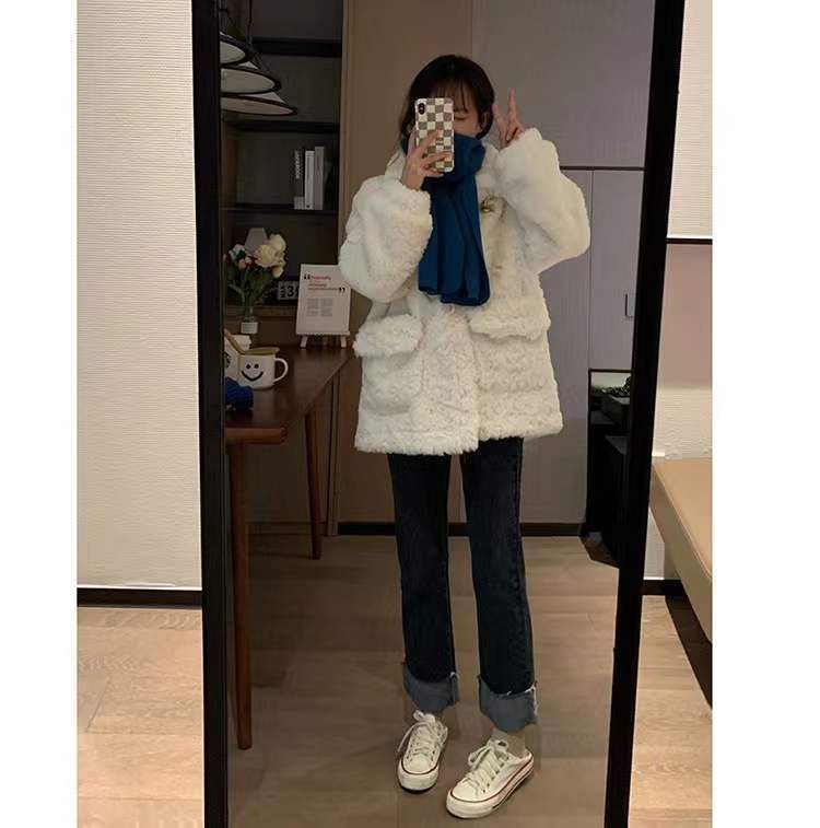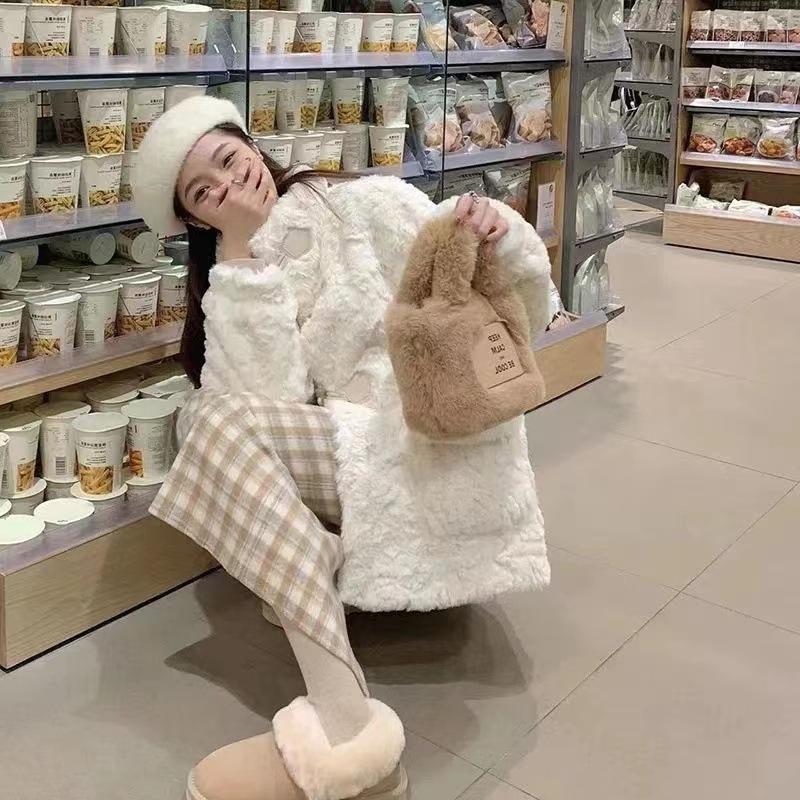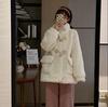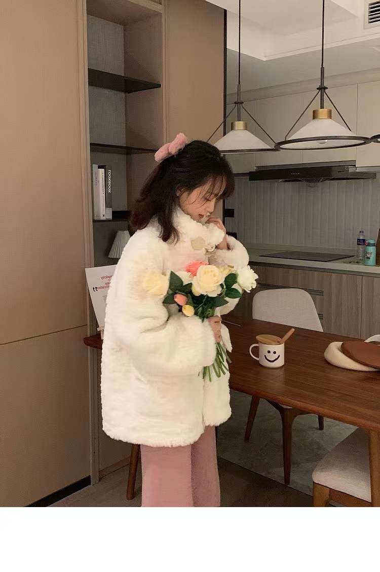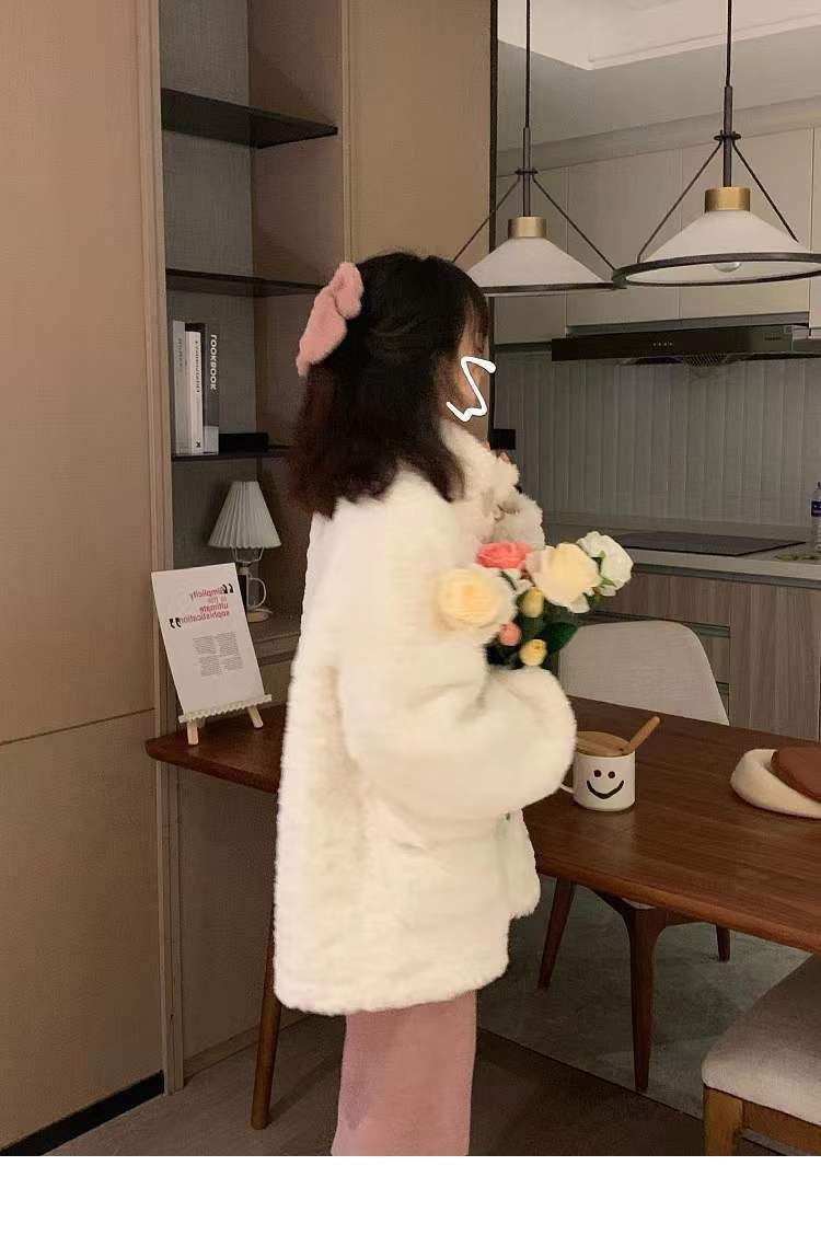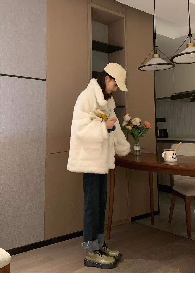 Abrigo de piel de cordero para mujer, abrigo de invierno cálido de piel de felpa con imitación de piel de conejo Rex integrada, abrigo de piel informal