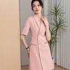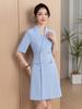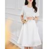 Vestido elegante de verano para mujer, estilo formal, con falda acampanada de longitud media y manga corta para personas de talla pequeña.