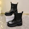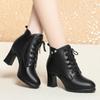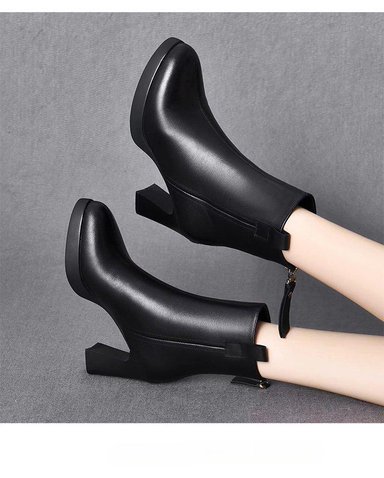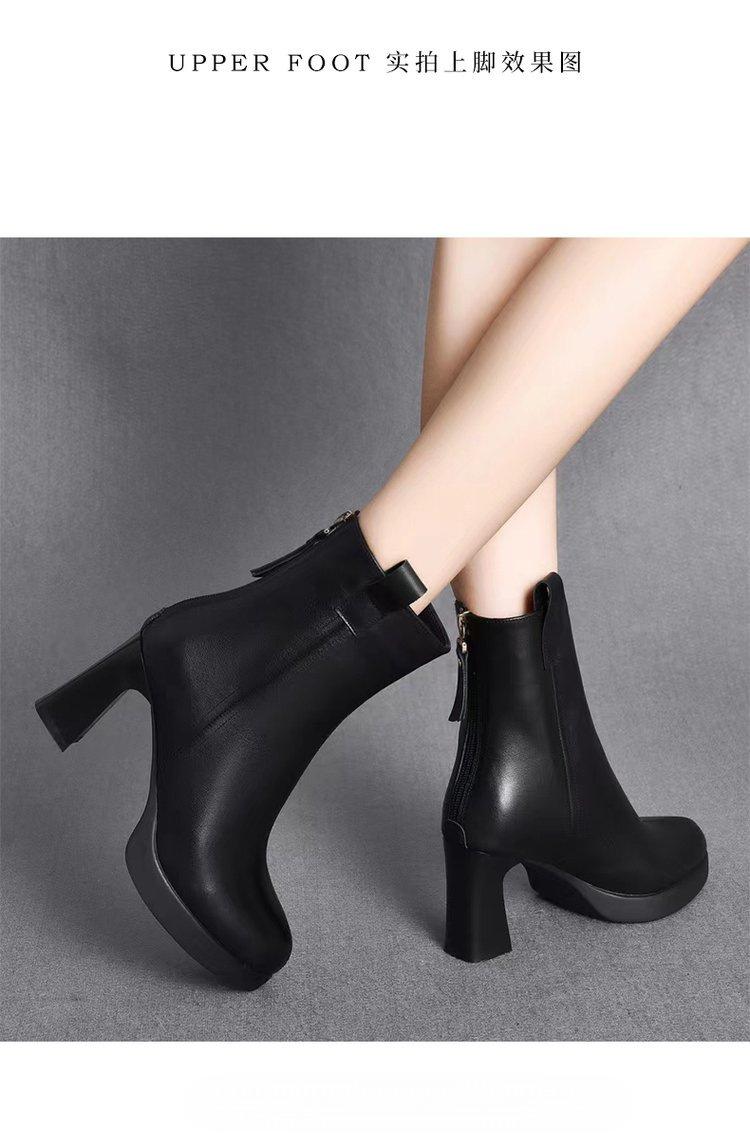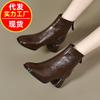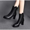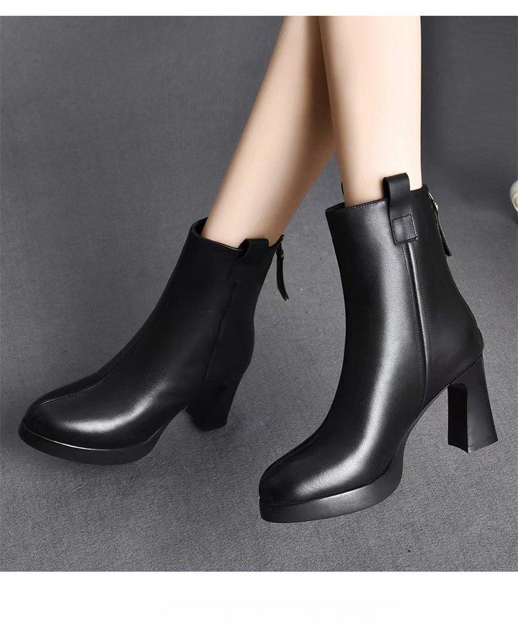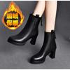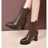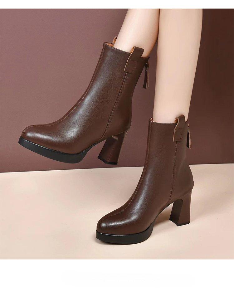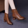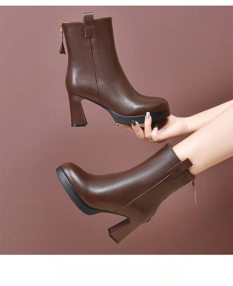 Botas cortas de tacón alto de cuero suave para otoño e invierno, zapatos de cuero marrón para mujer, zapatos de mujer con forro polar, botas Martin de mesa impermeables, novedad de 2024