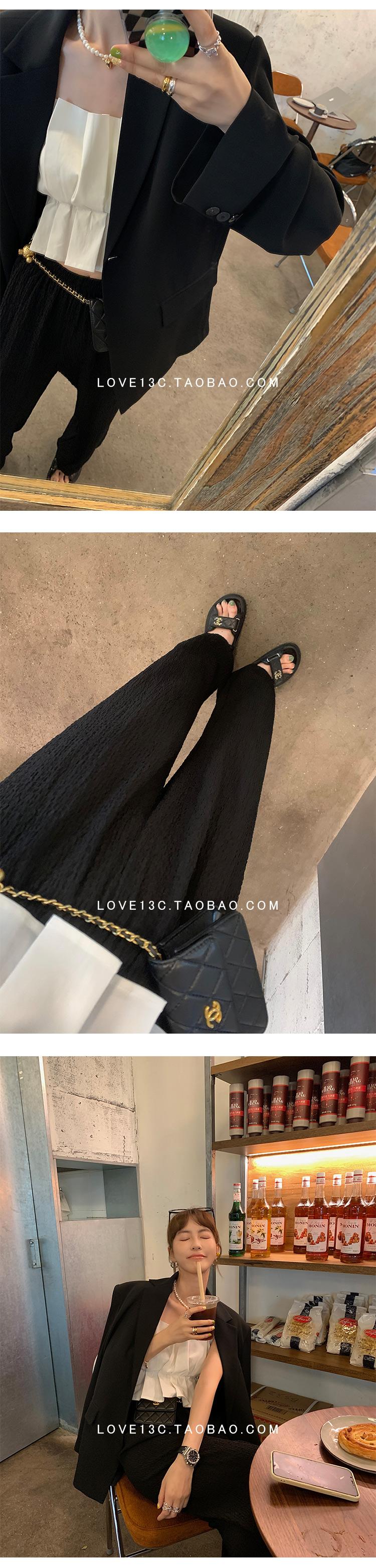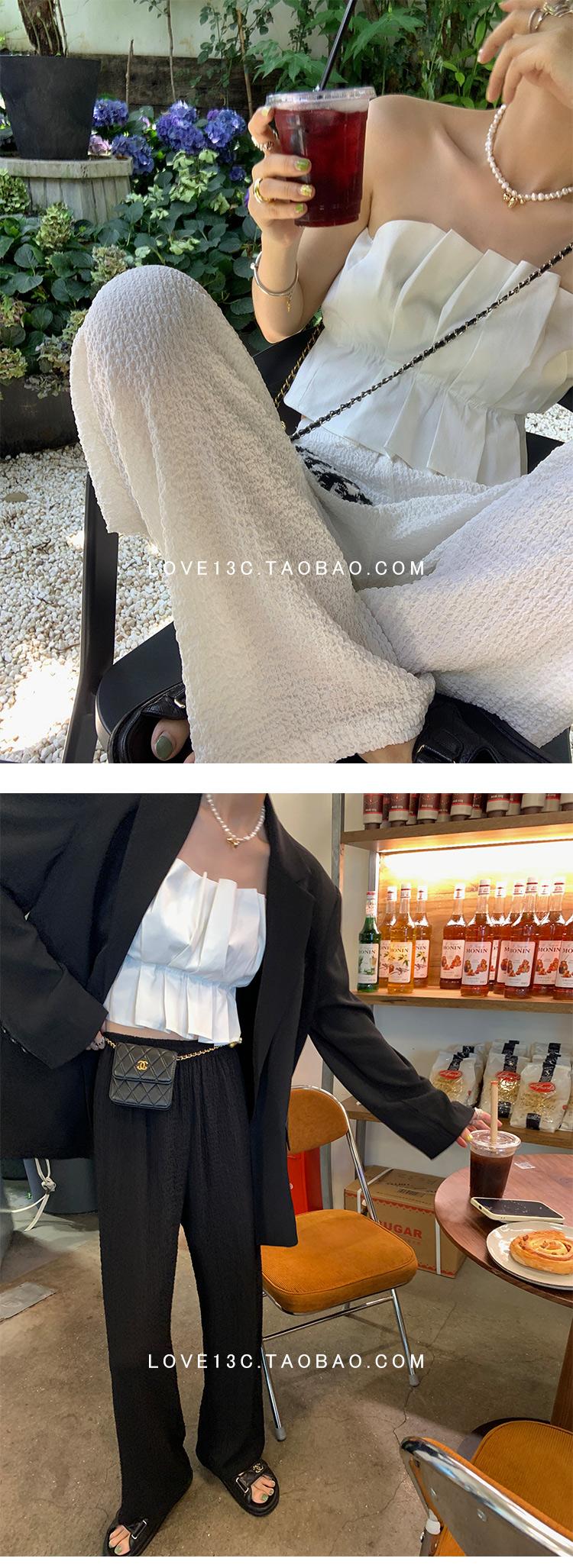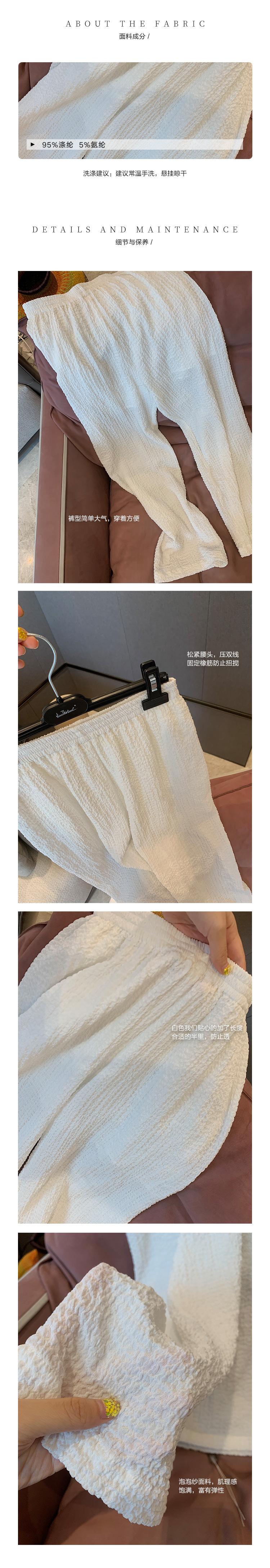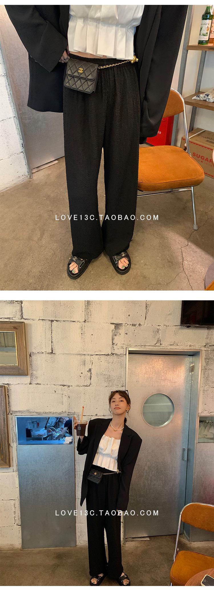 [13] Pantalones de pierna ancha y cintura alta con textura para mujer, pantalones casuales de verano finos, rectos y sueltos que adelgazan y drapean.