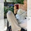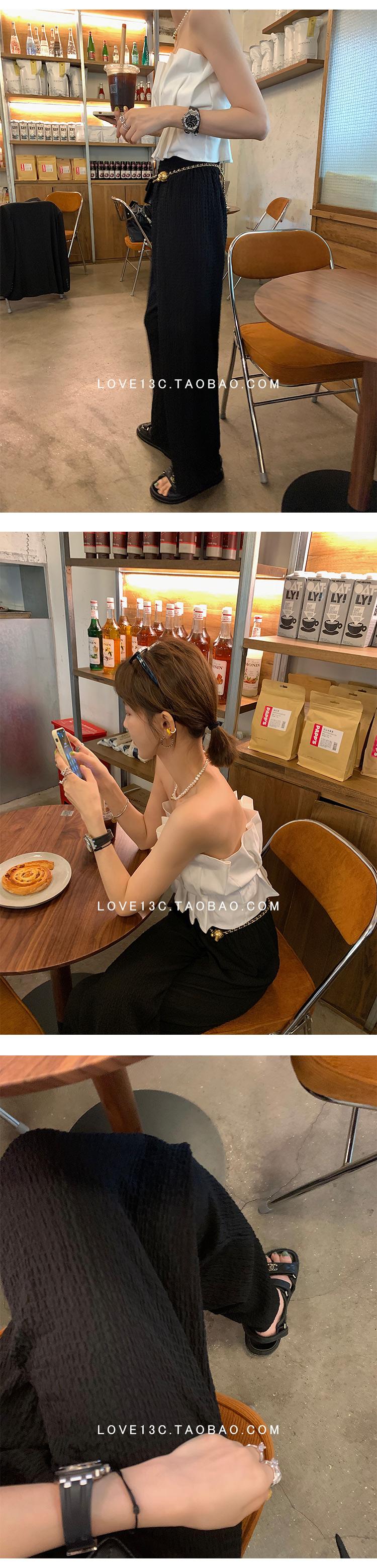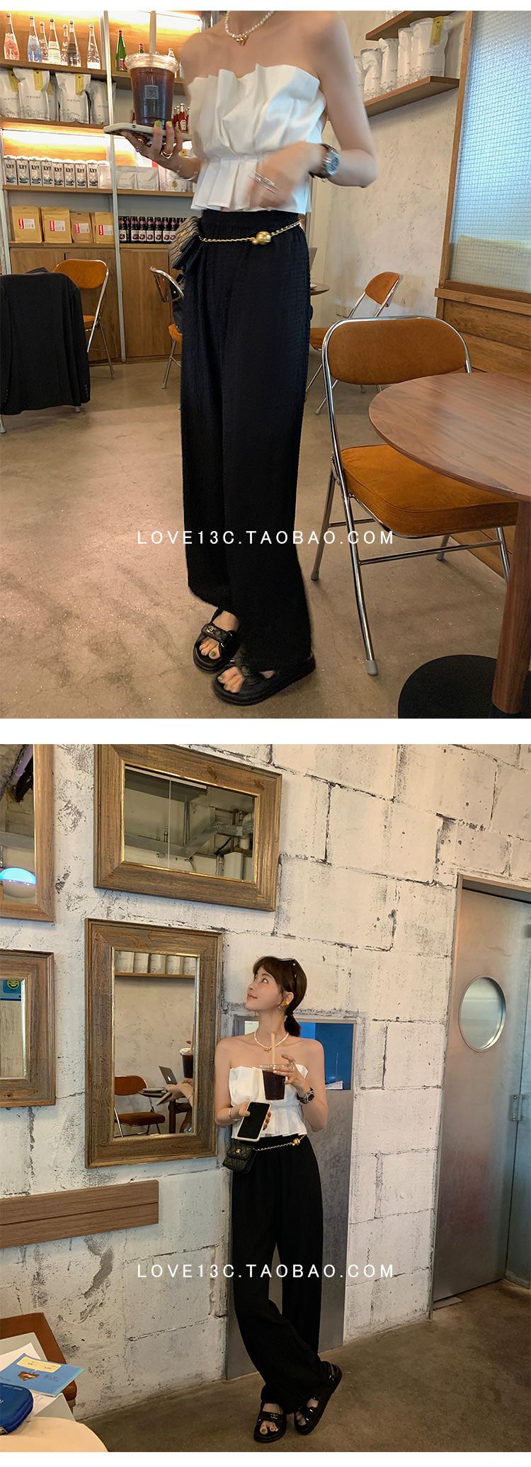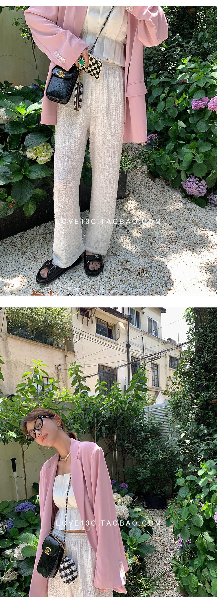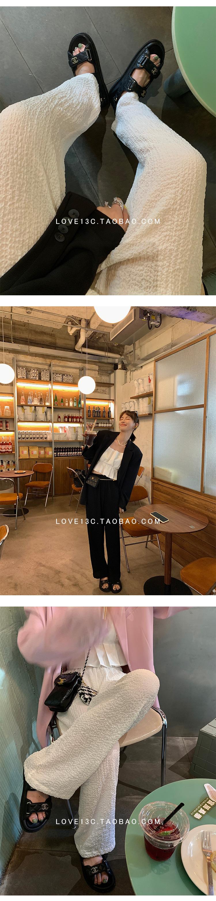 [13] Pantalones de pierna ancha y cintura alta con textura para mujer, pantalones casuales de verano finos, rectos y sueltos que adelgazan y drapean.