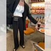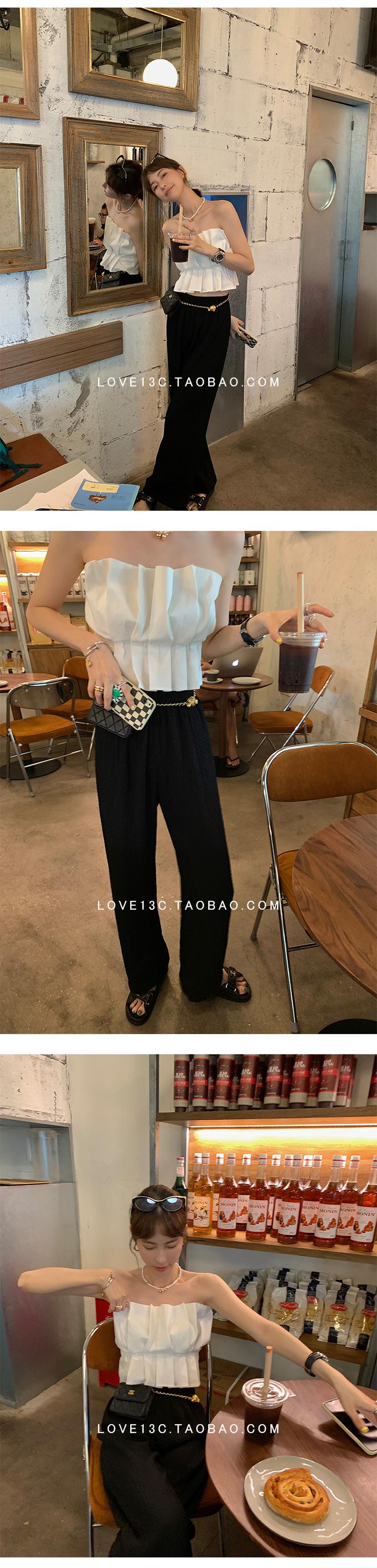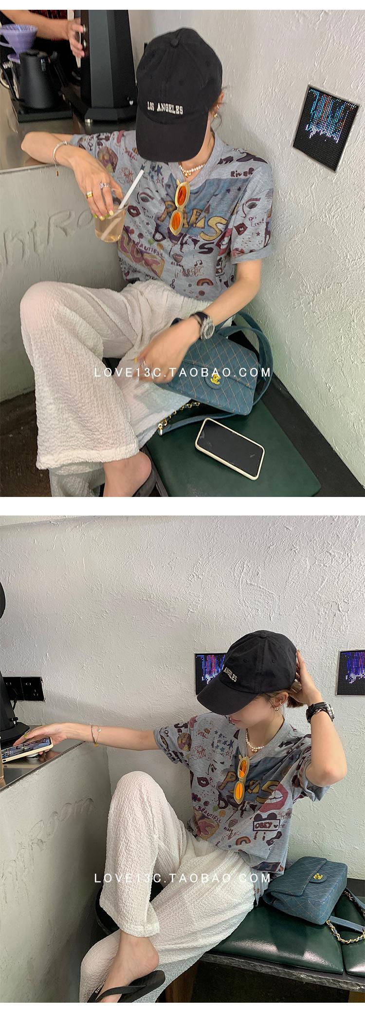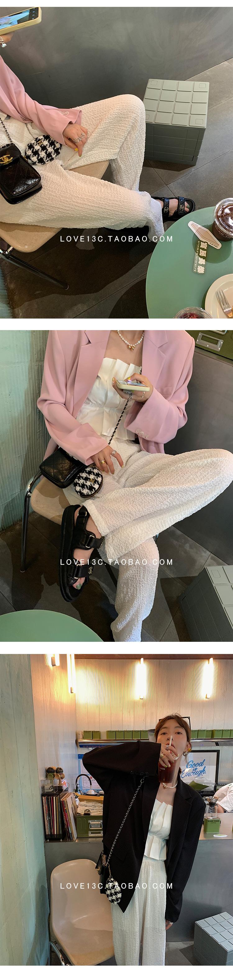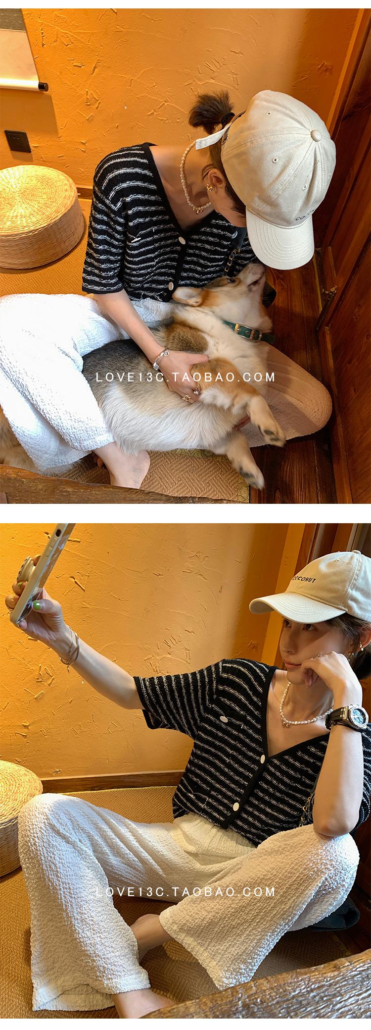 [13] Pantalones de pierna ancha y cintura alta con textura para mujer, pantalones casuales de verano finos, rectos y sueltos que adelgazan y drapean.