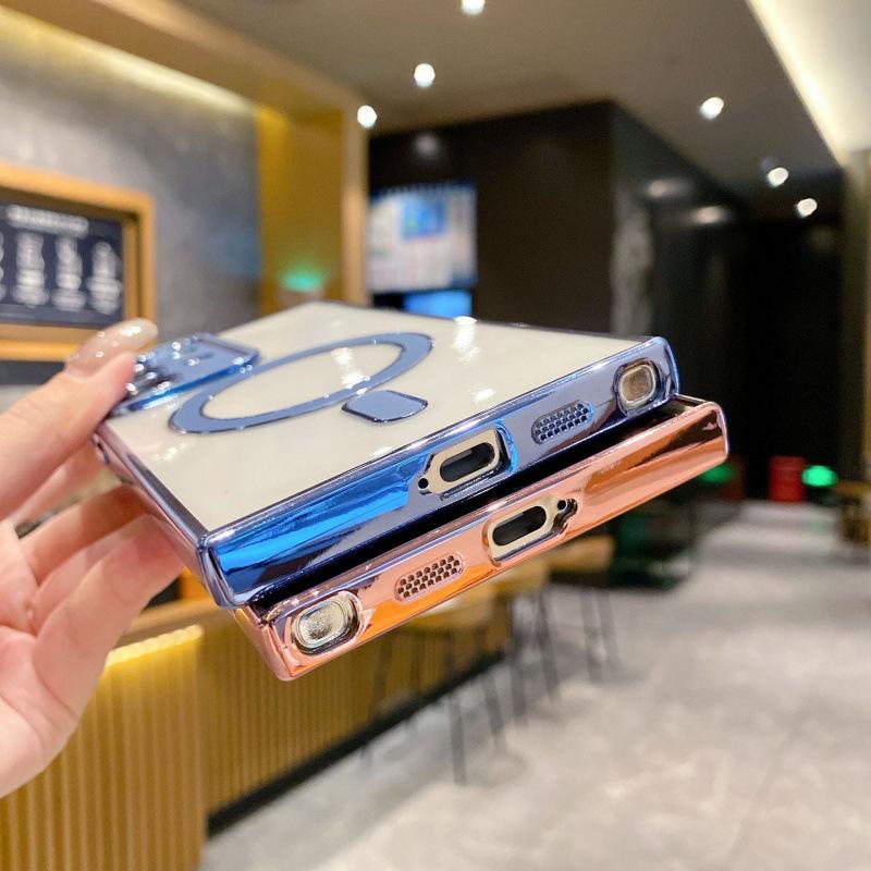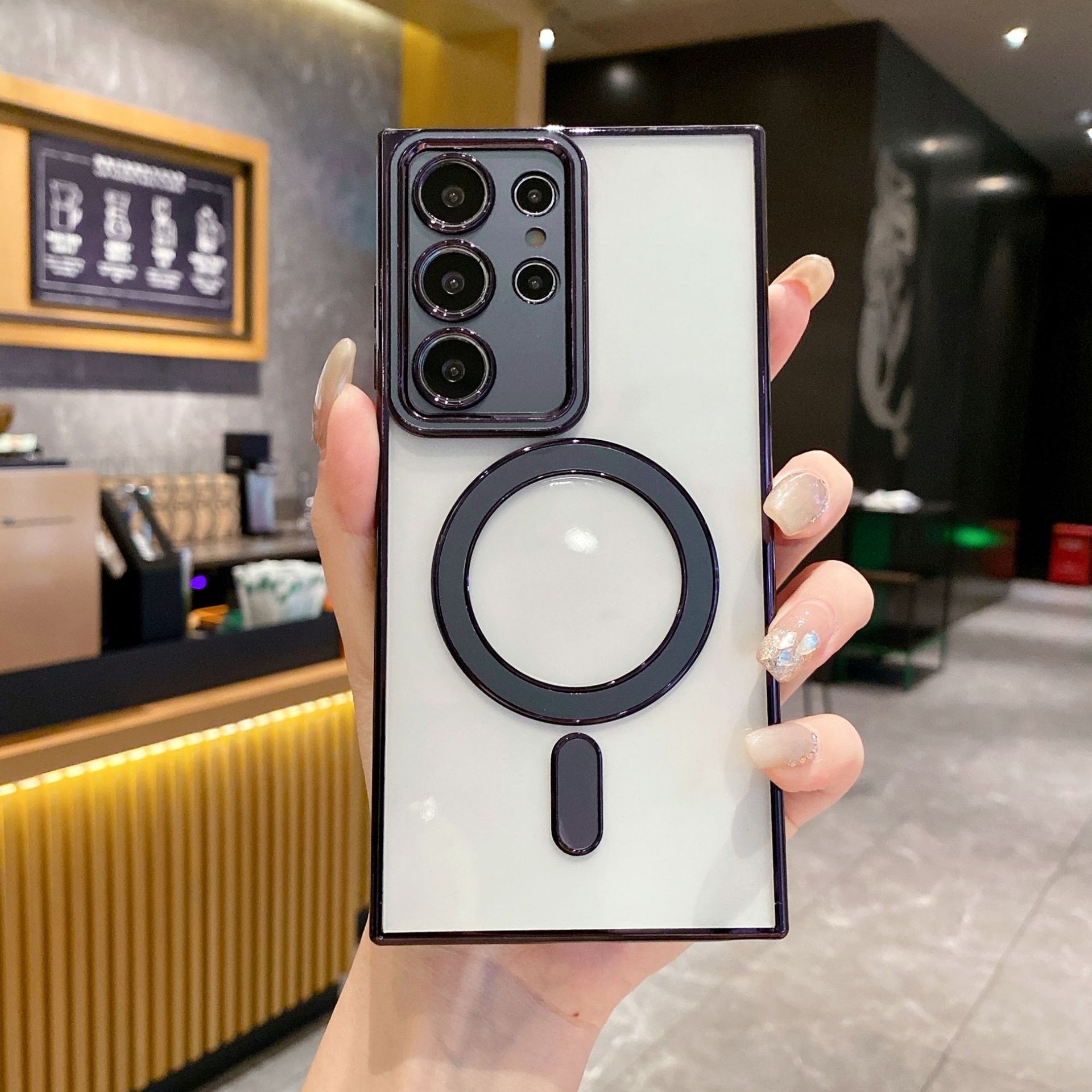 [Nombre del producto]: Funda magnética transparente Macron galvanizada para teléfono móvil
