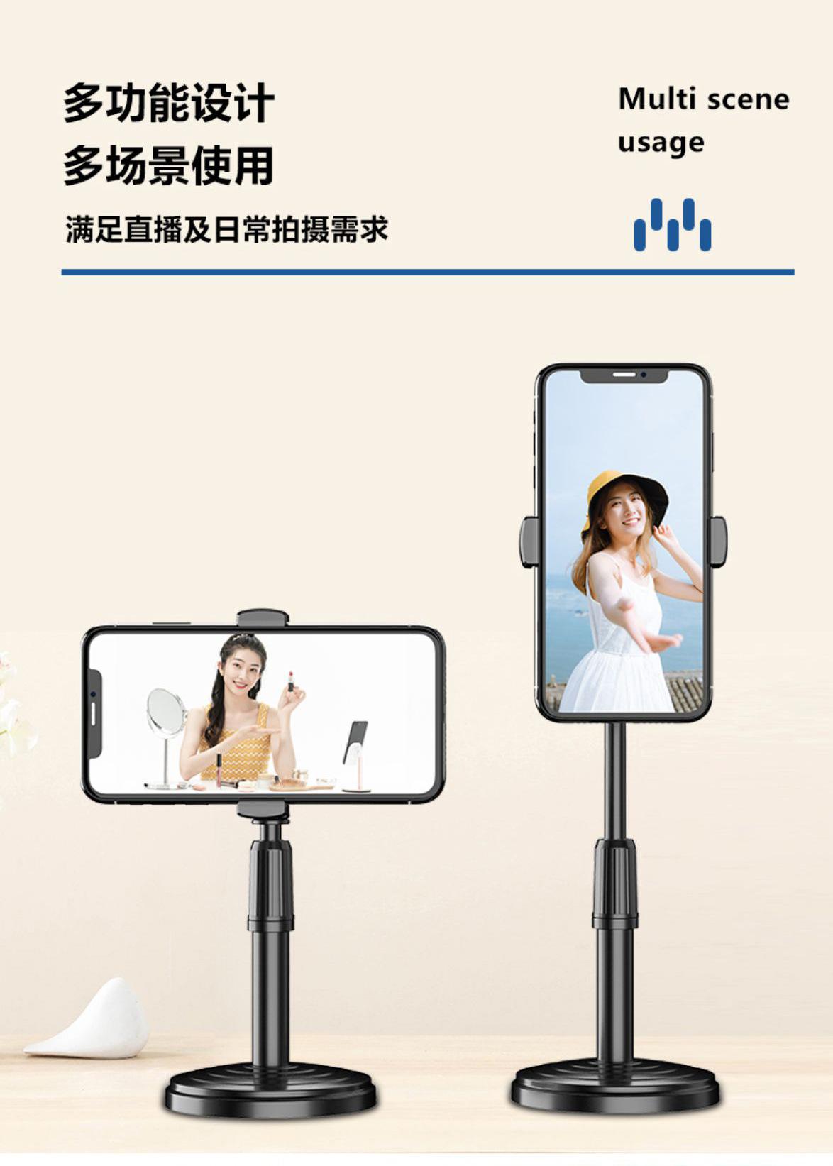 Soporte de transmisión en vivo para teléfono móvil, soporte retráctil para mesita de noche, soporte universal multifuncional para teléfono inteligente