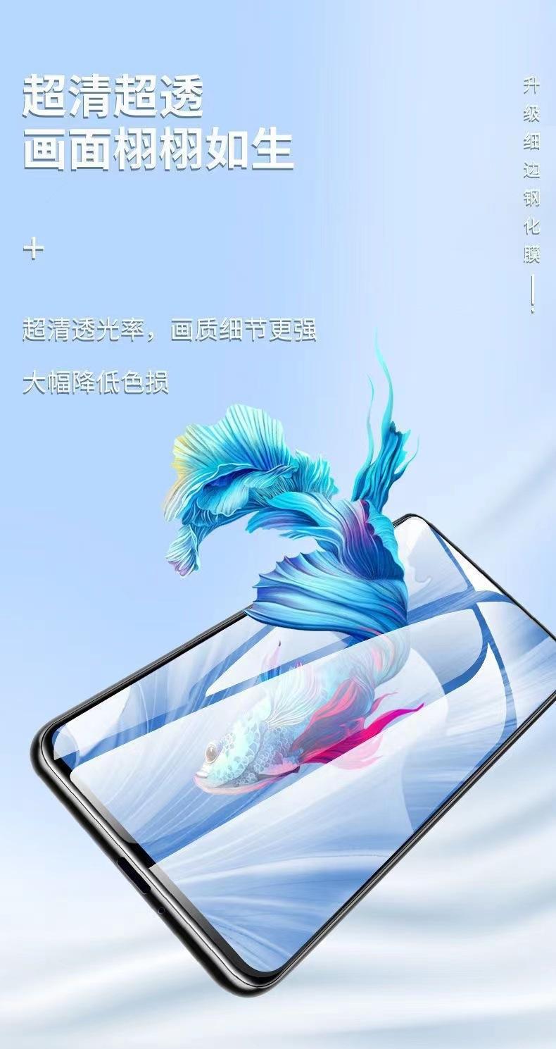 1. Material de película templada: El molde original de la máquina se traza y corta con precisión, y la posición del orificio es precisa. Utiliza vidrio importado de Japón, de alta transparencia, resistente a arañazos y roturas; utiliza aceite antihuellas importado, antihuellas y tacto suave, y ha sido templado durante más de 4 horas.