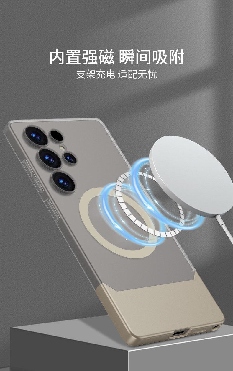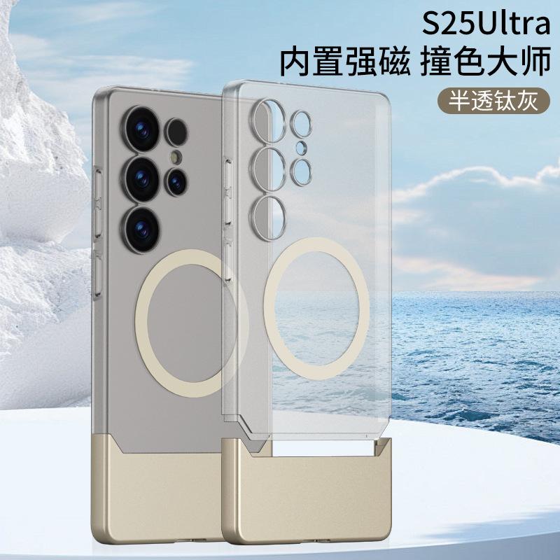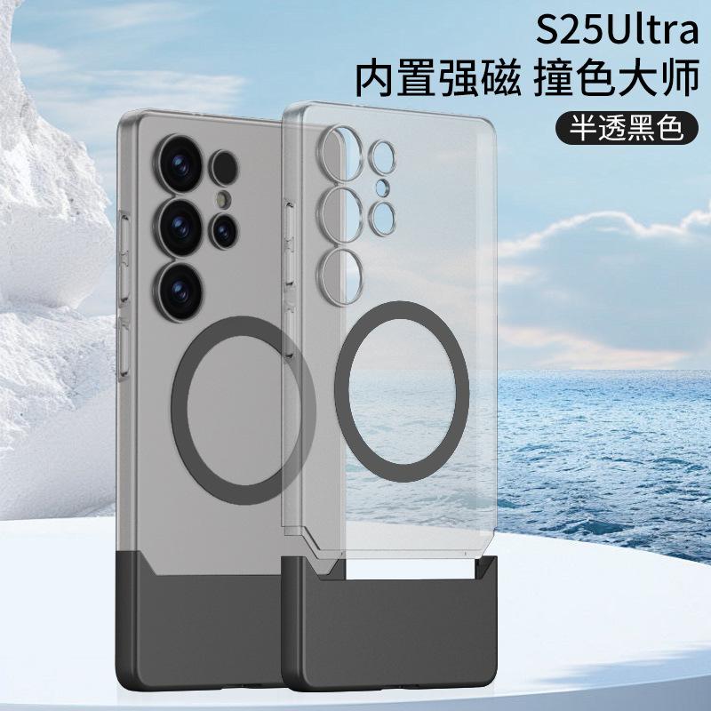 Estuche transfronterizo compatible con Samsung S25Ultra, anillo magnético incorporado, color semitransparente, funda protectora Master s25u.