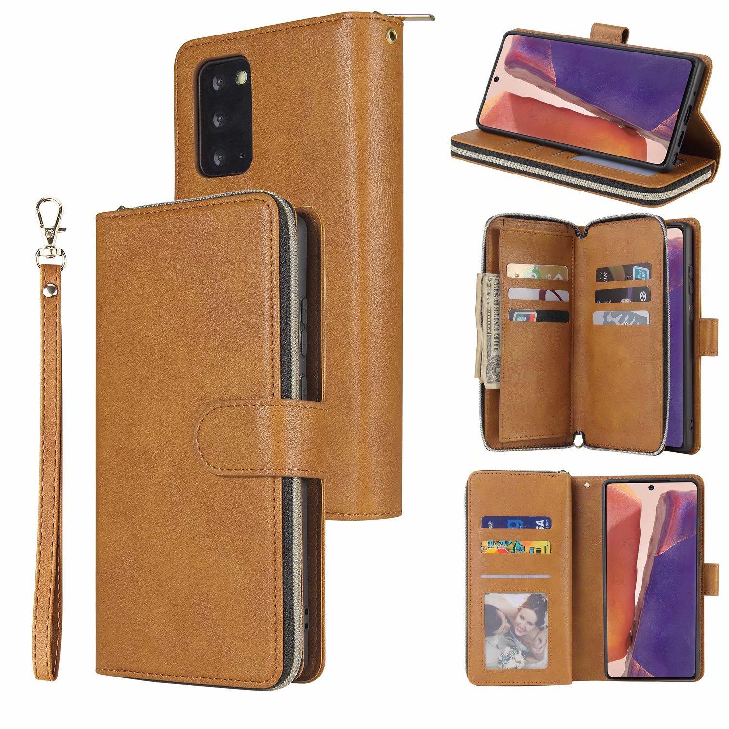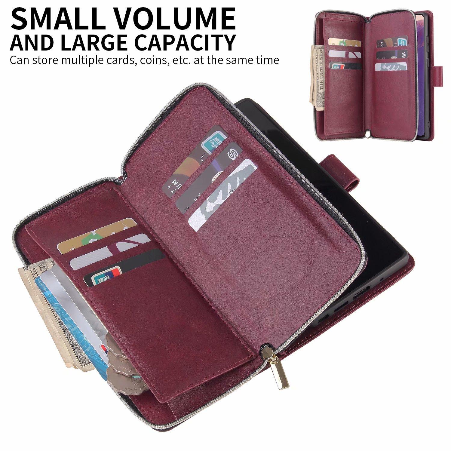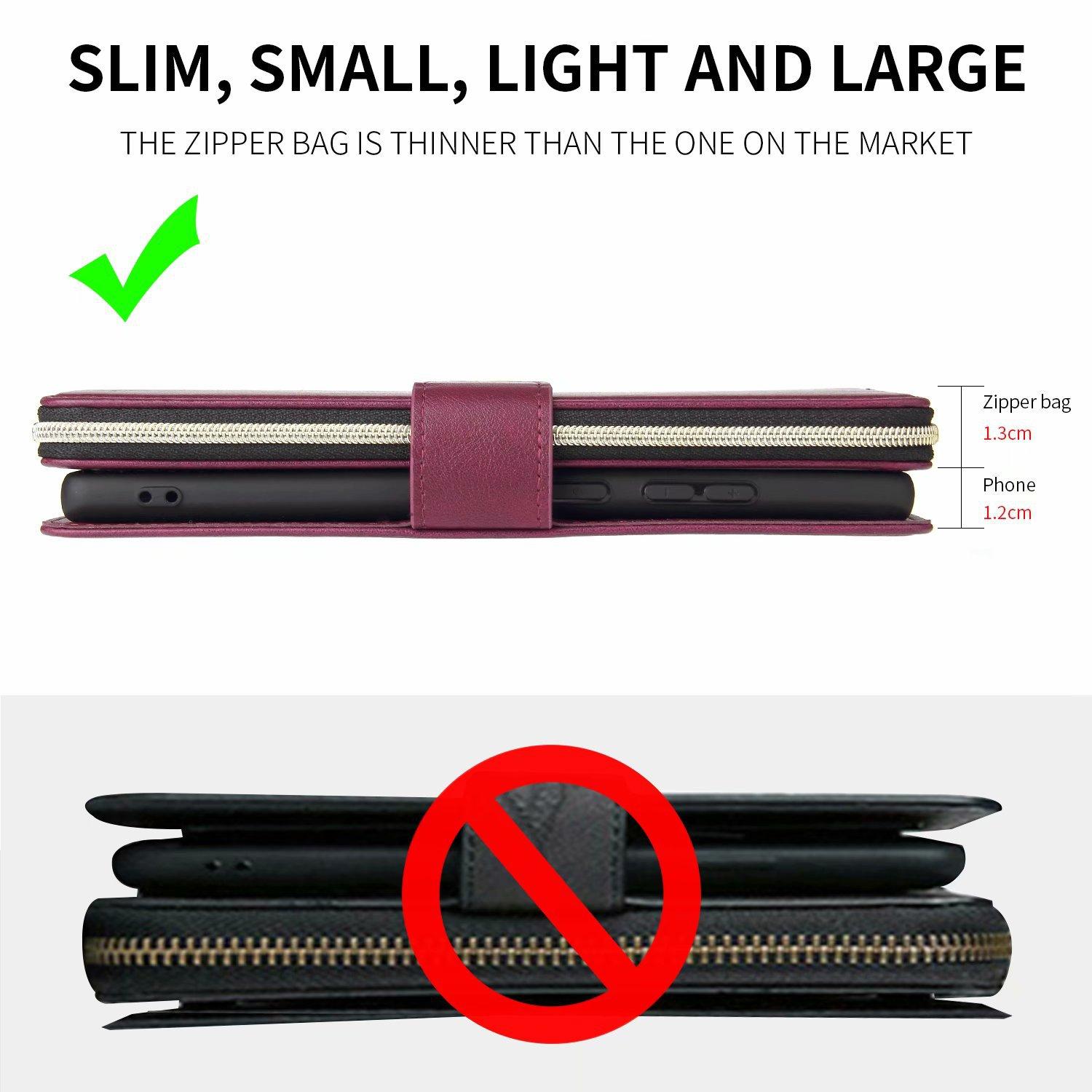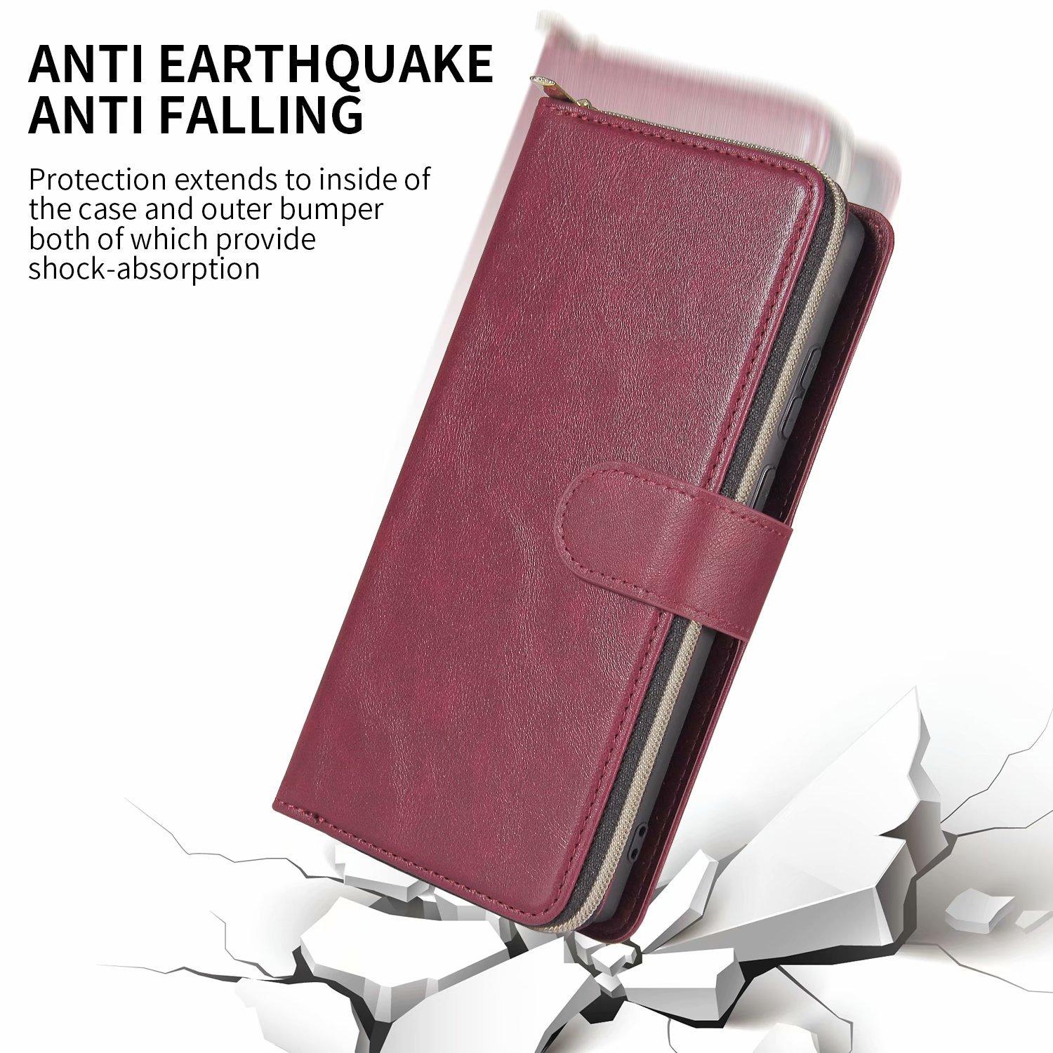Adecuado para Funda de Cuero para iPhone16E Samsung S25 Billetera con Cremallera de Nueve Tarjetas Tarjetero Cubierta Protectora Cuerda de Mano 17Pro
