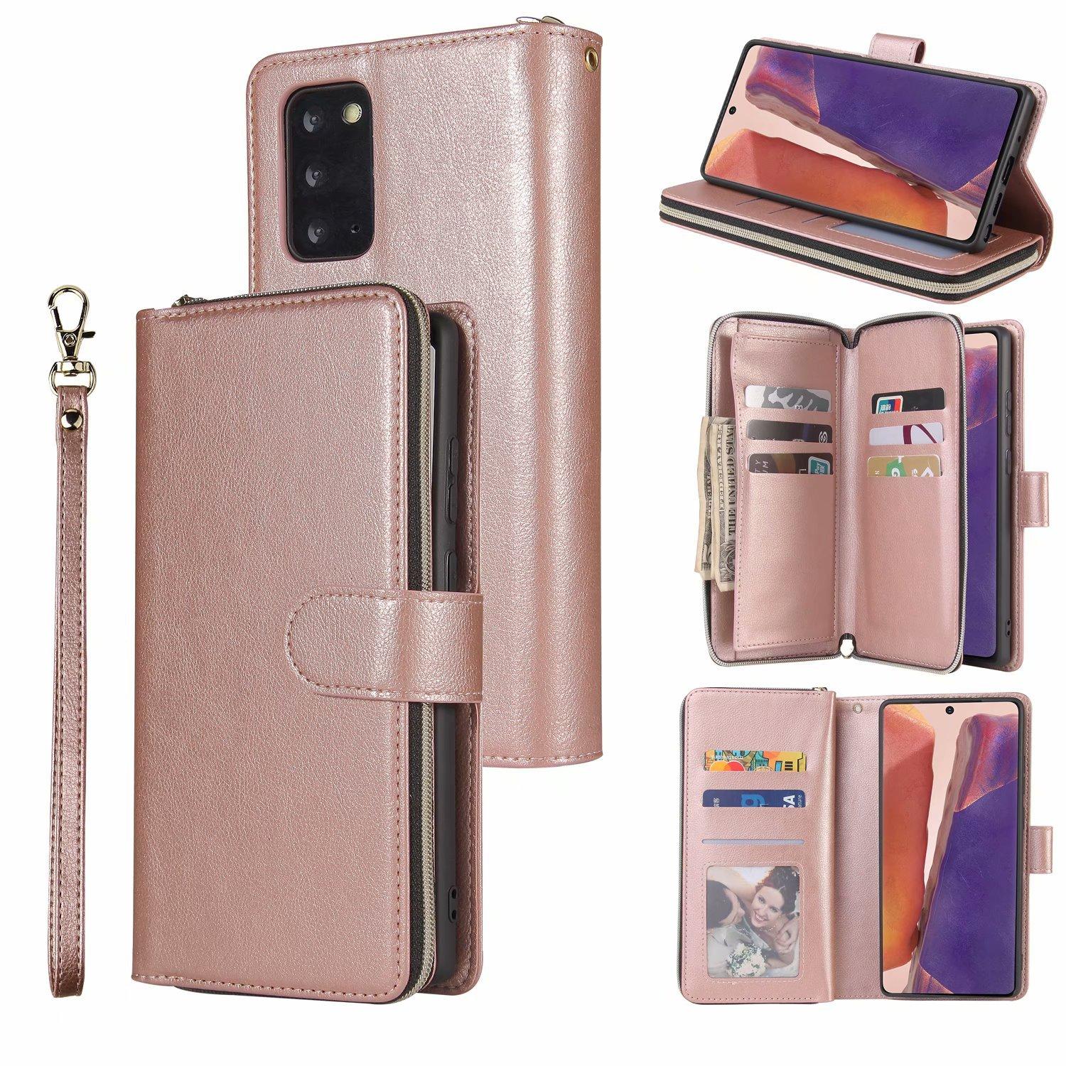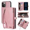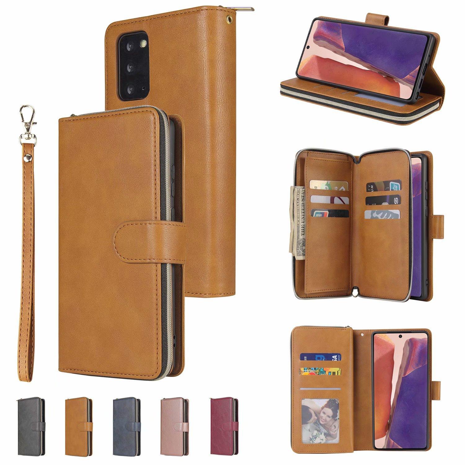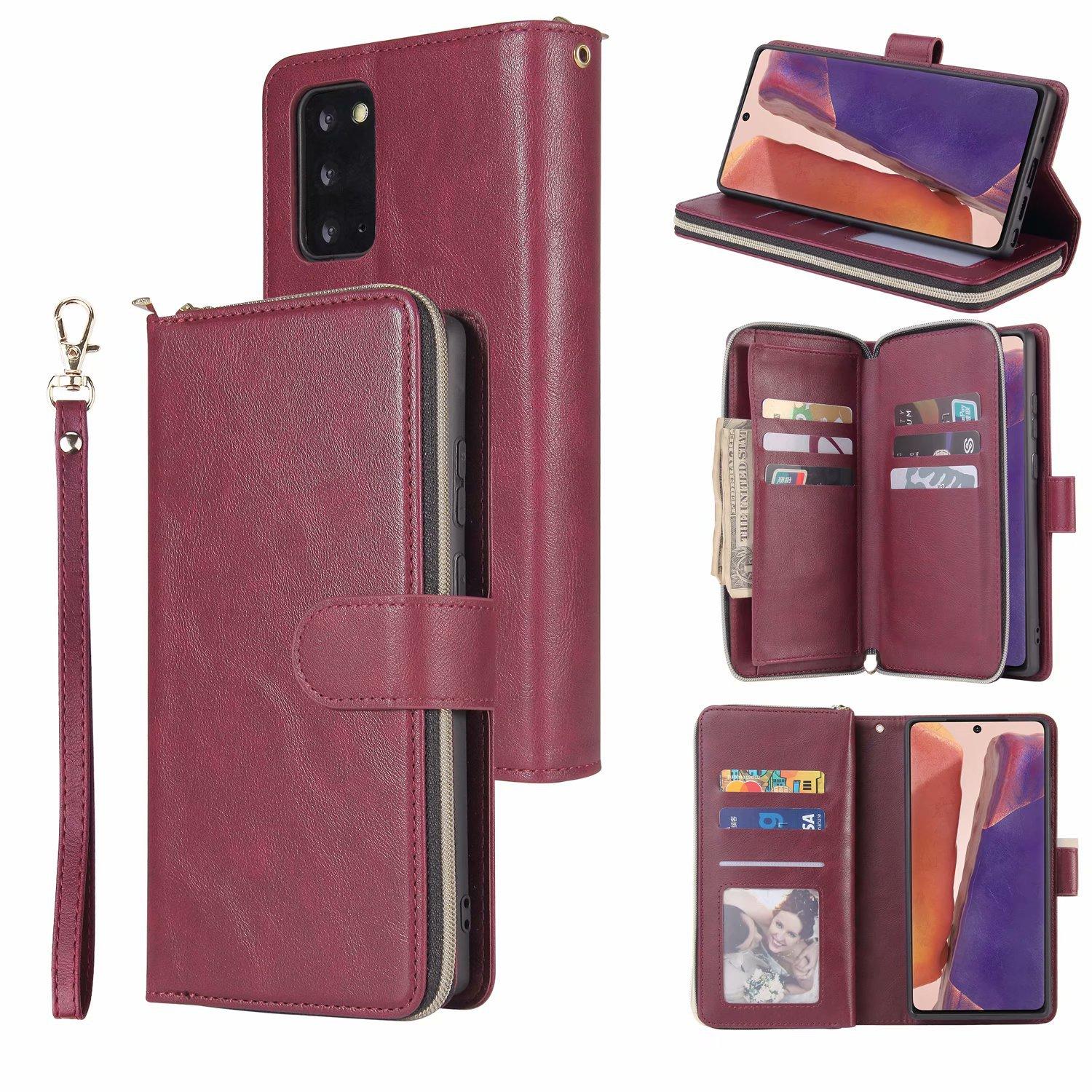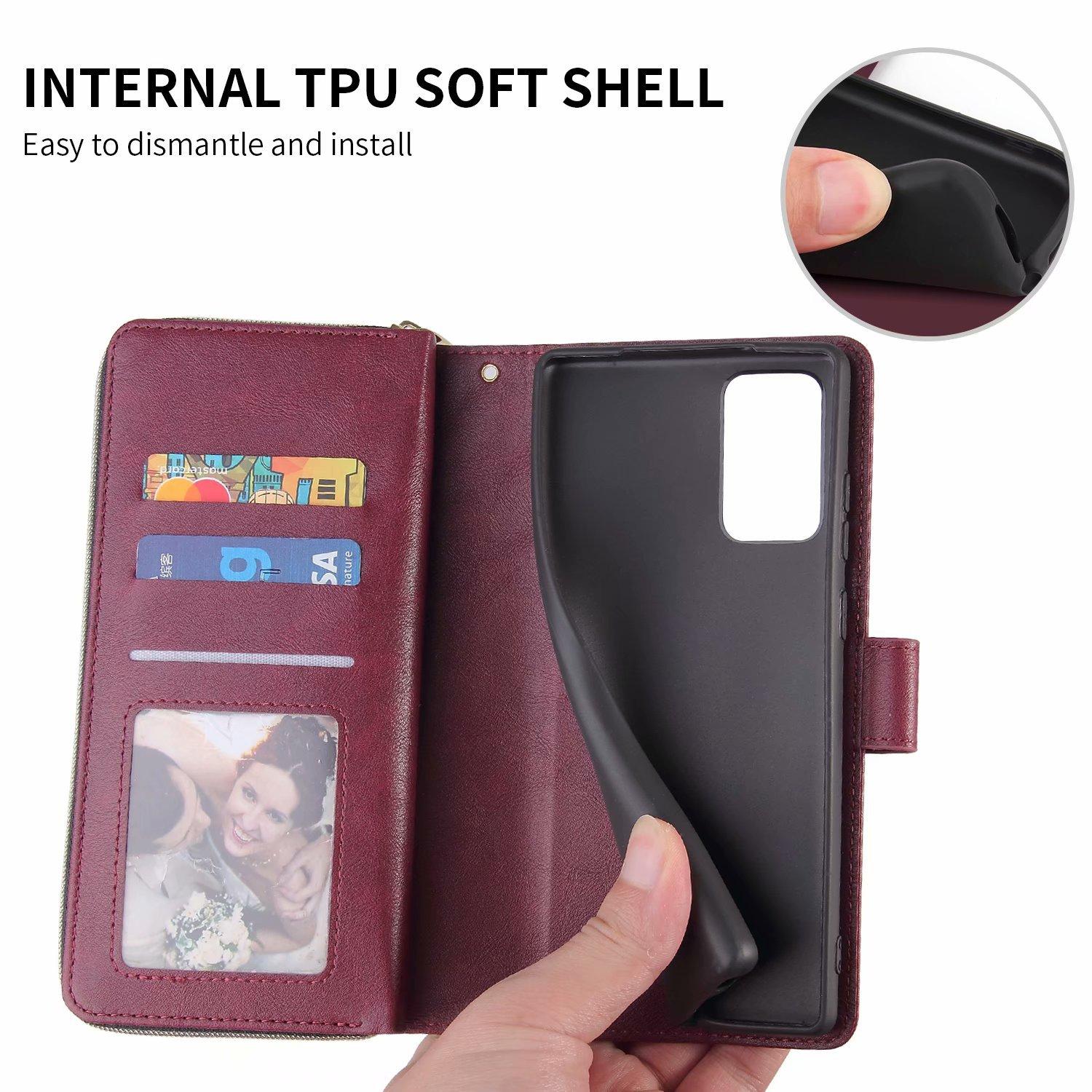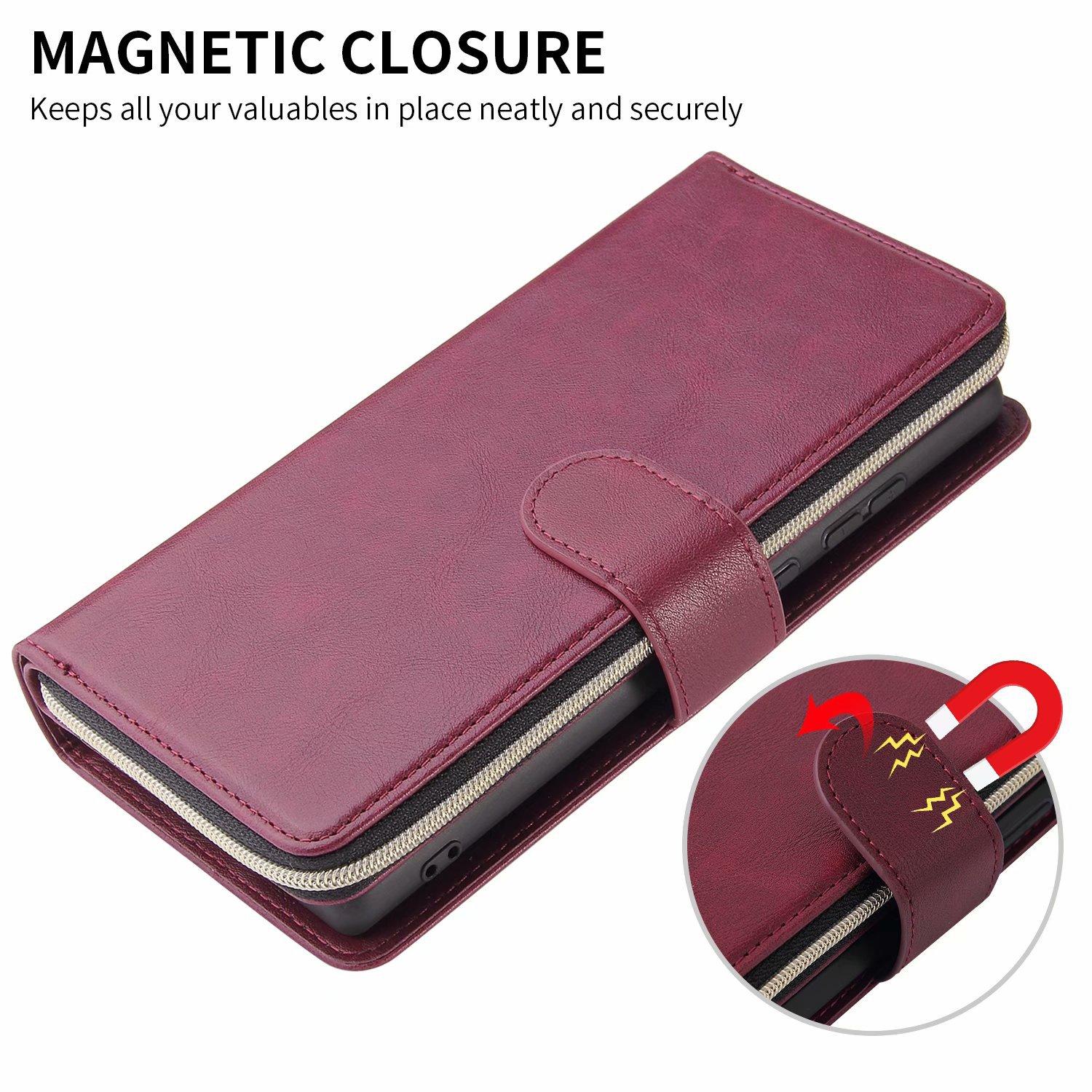 Adecuado para Funda de Cuero para iPhone16E Samsung S25 Billetera con Cremallera de Nueve Tarjetas Tarjetero Cubierta Protectora Cuerda de Mano 17Pro