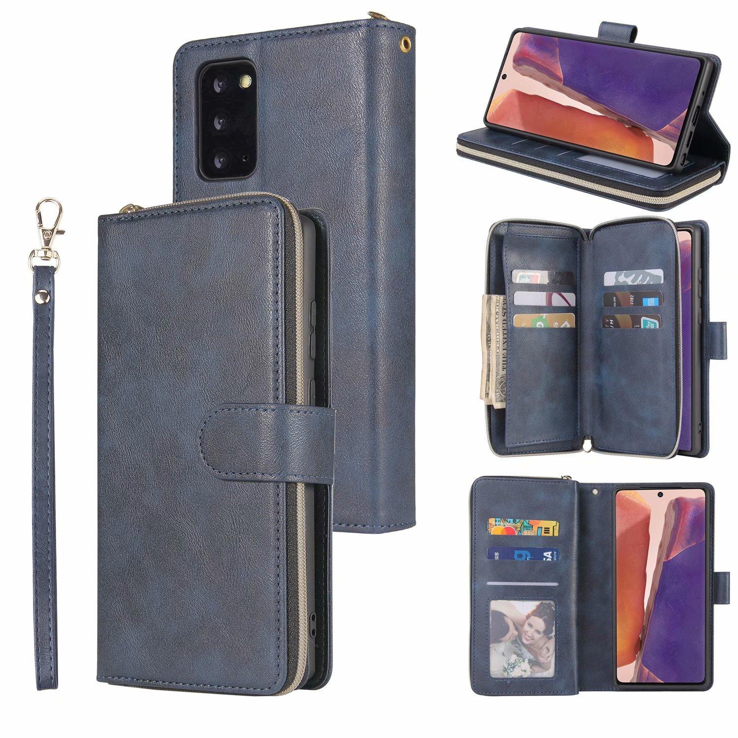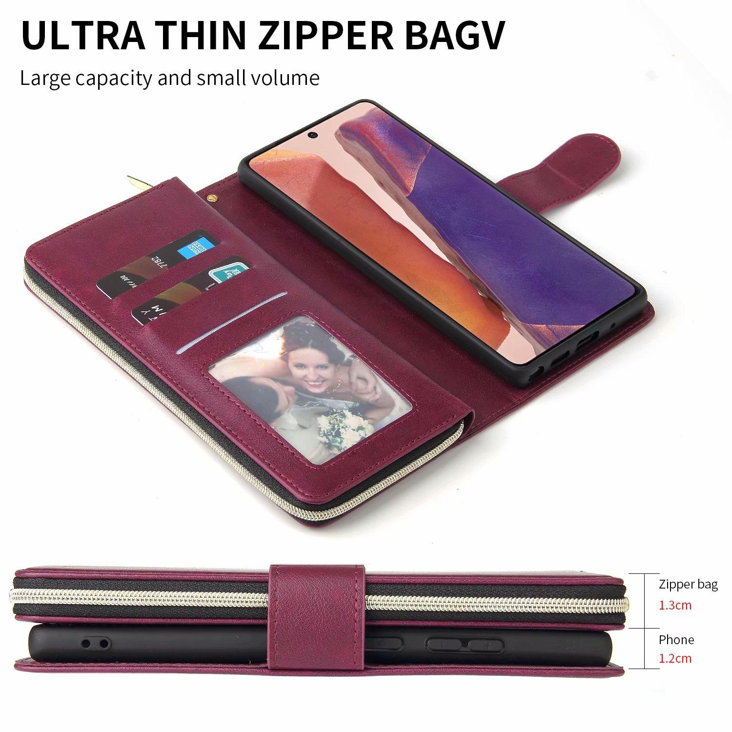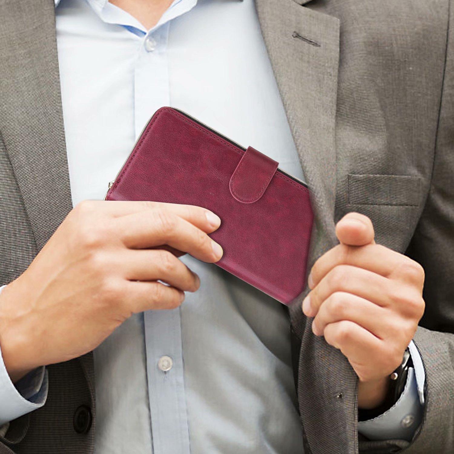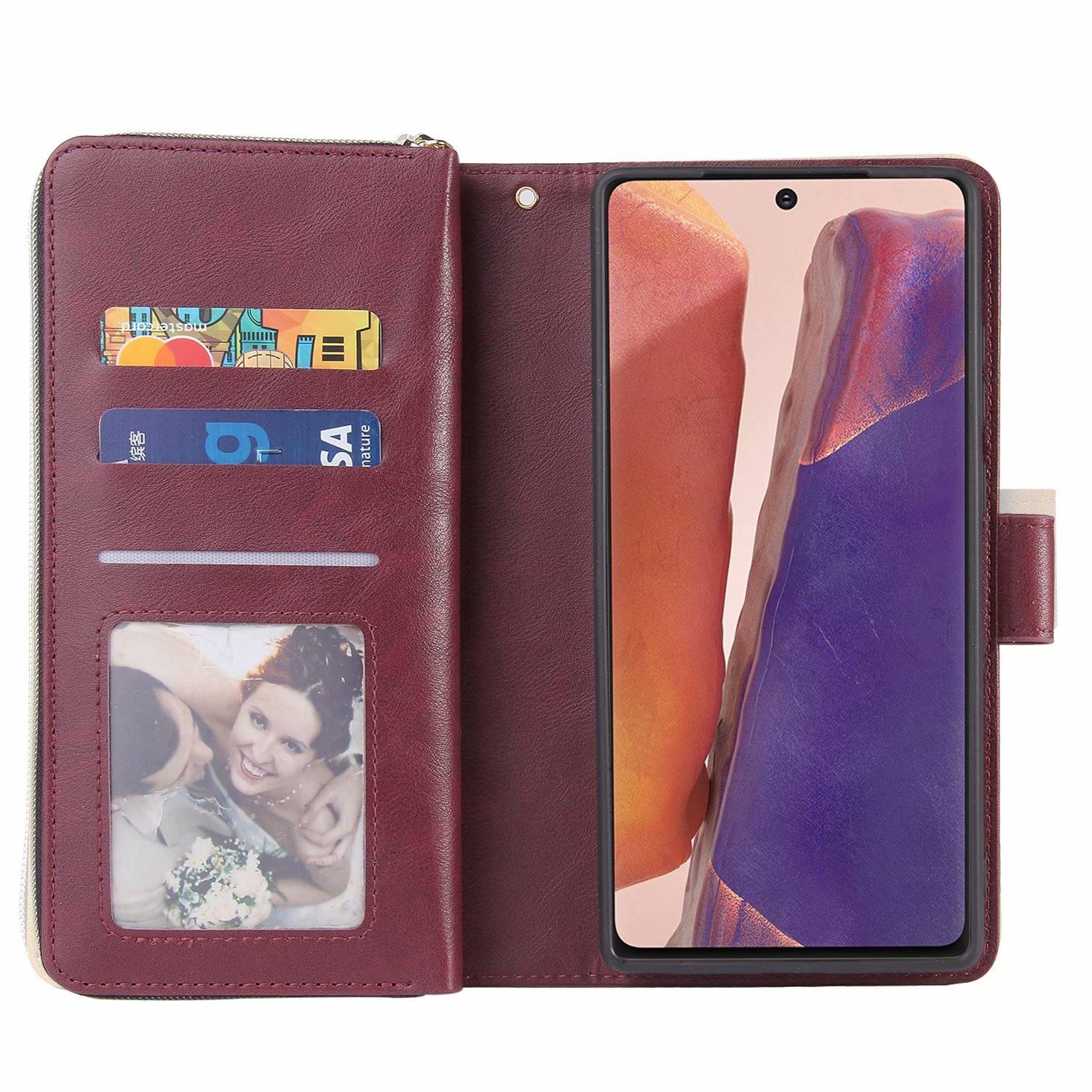 Adecuado para Funda de Cuero para iPhone16E Samsung S25 Billetera con Cremallera de Nueve Tarjetas Tarjetero Cubierta Protectora Cuerda de Mano 17Pro