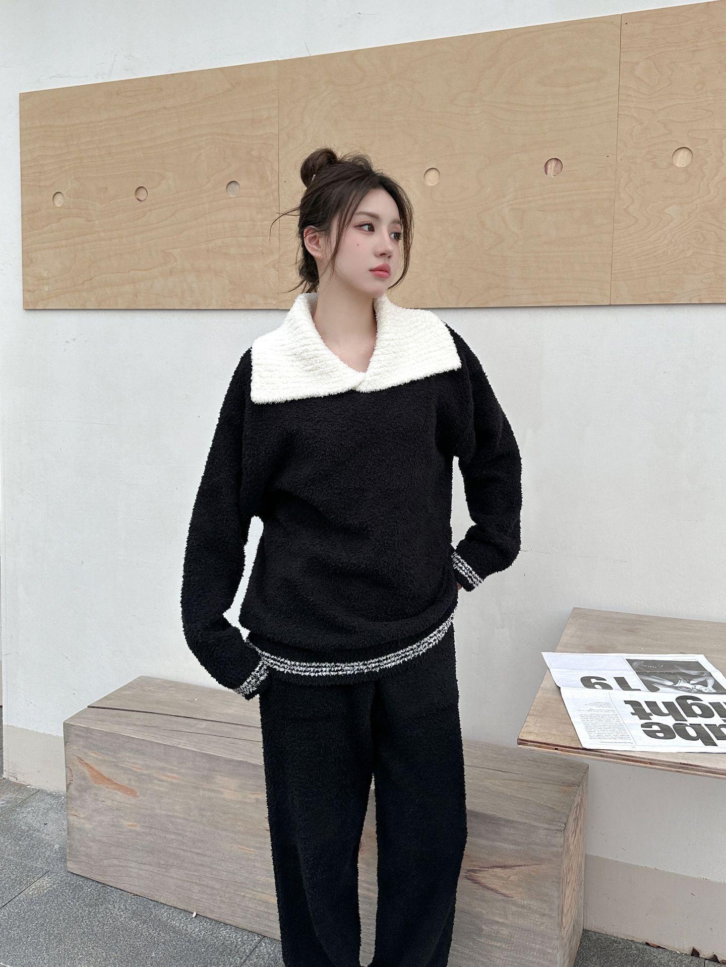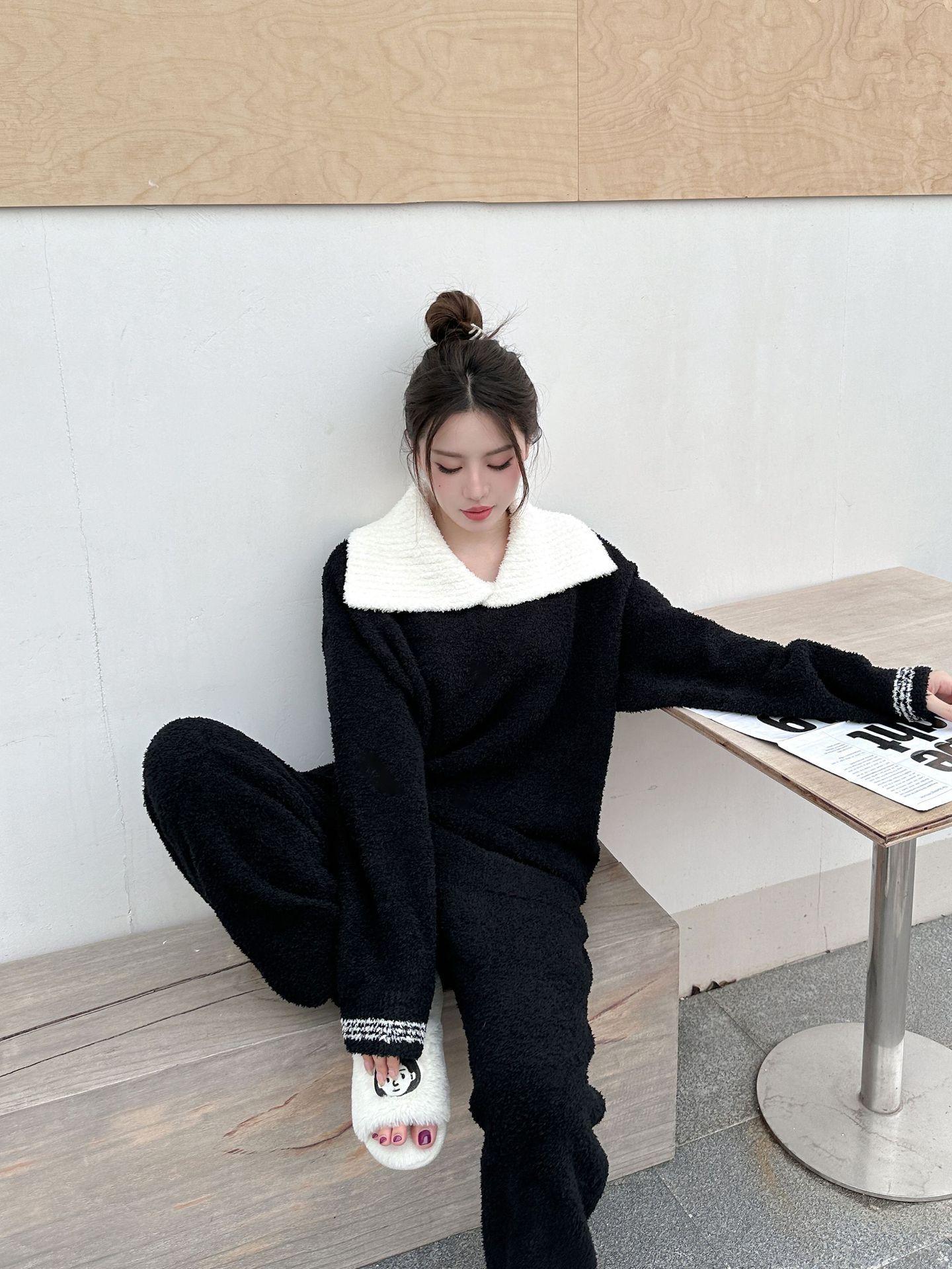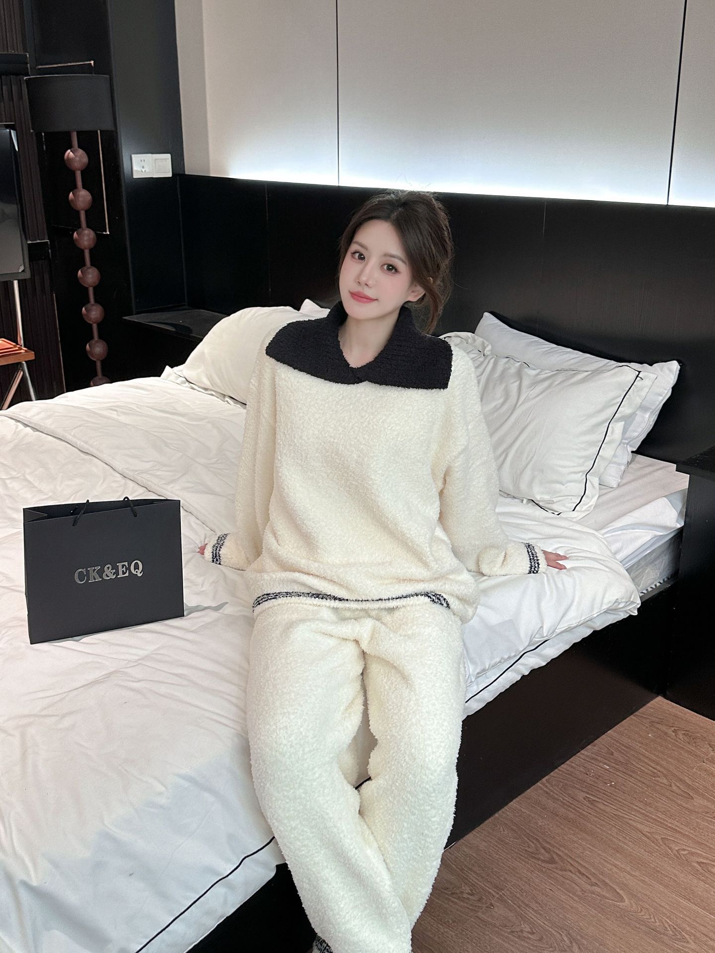 Otoño e Invierno Nuevos Ropa de Casa para Mujer Casual Cómodo Suave Pijama Engrosado Cálido Simple Traje de Pijama