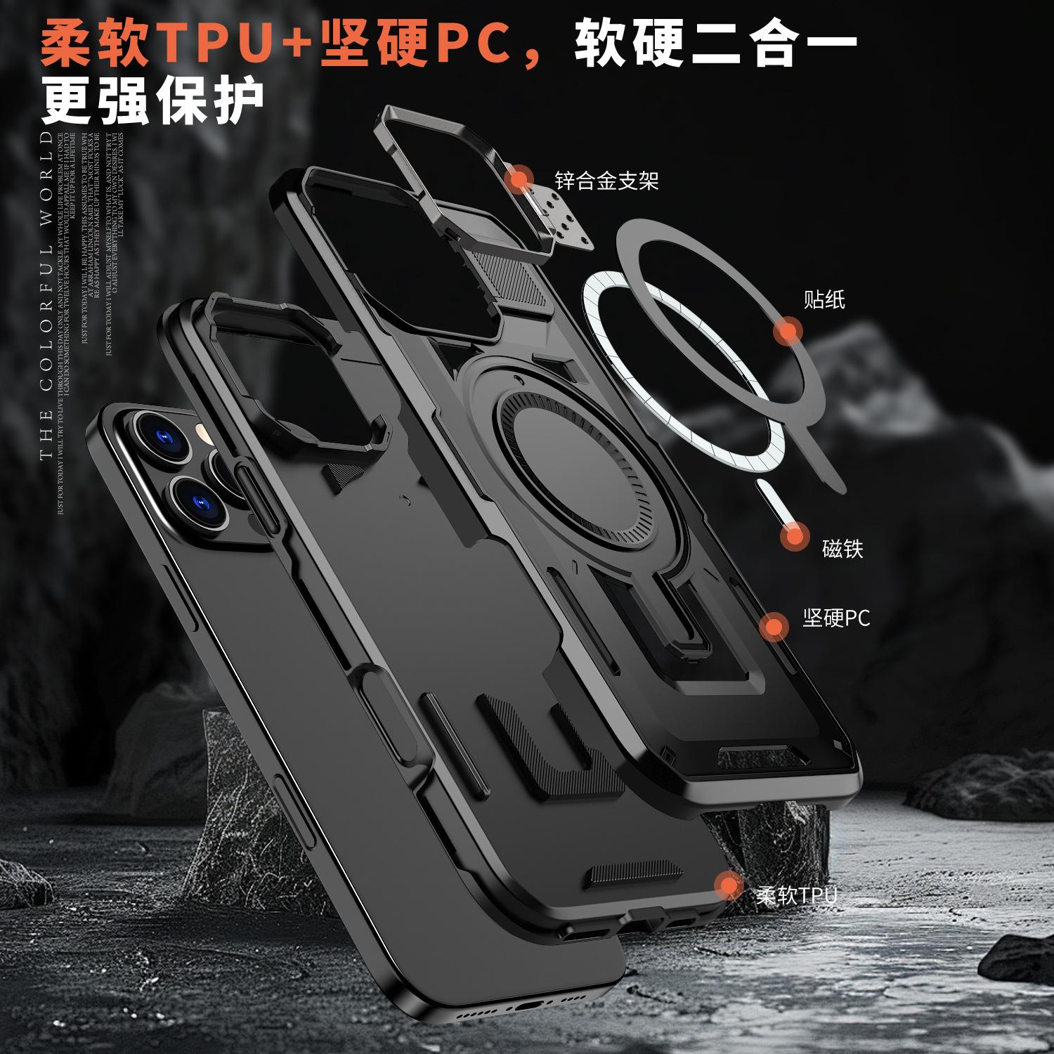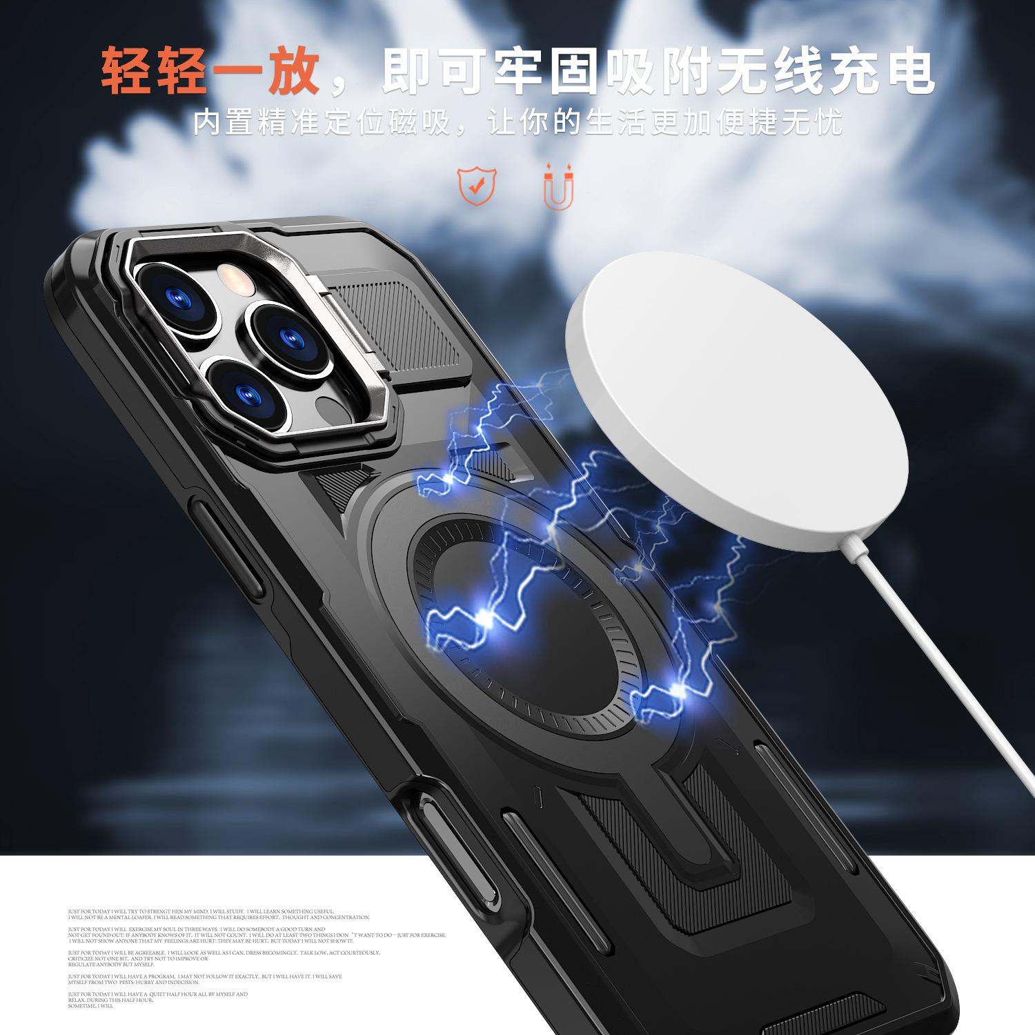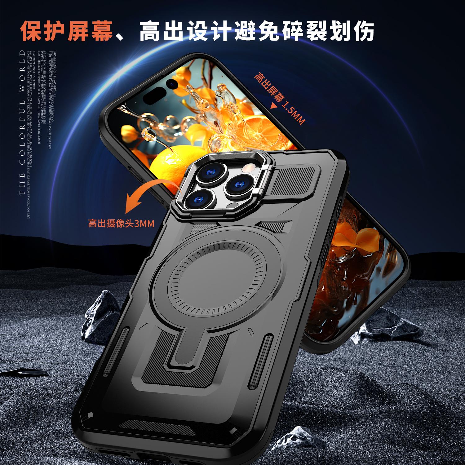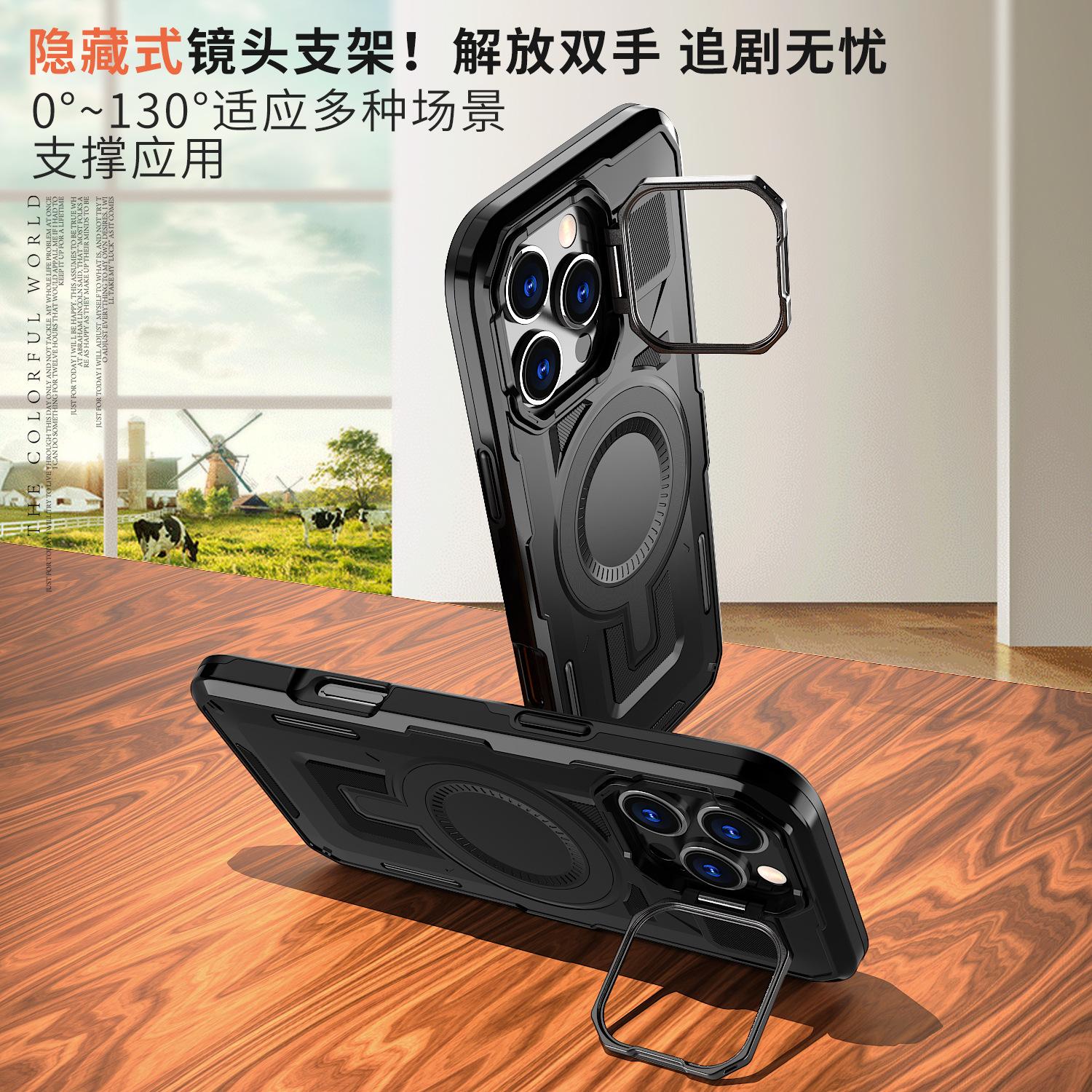 Adecuado para funda de teléfono iPhone16Pro succión magnética Magsafe Apple 16ProMax soporte de marco de lente carcasa anticaídas