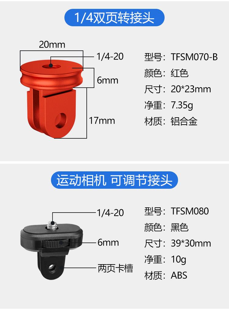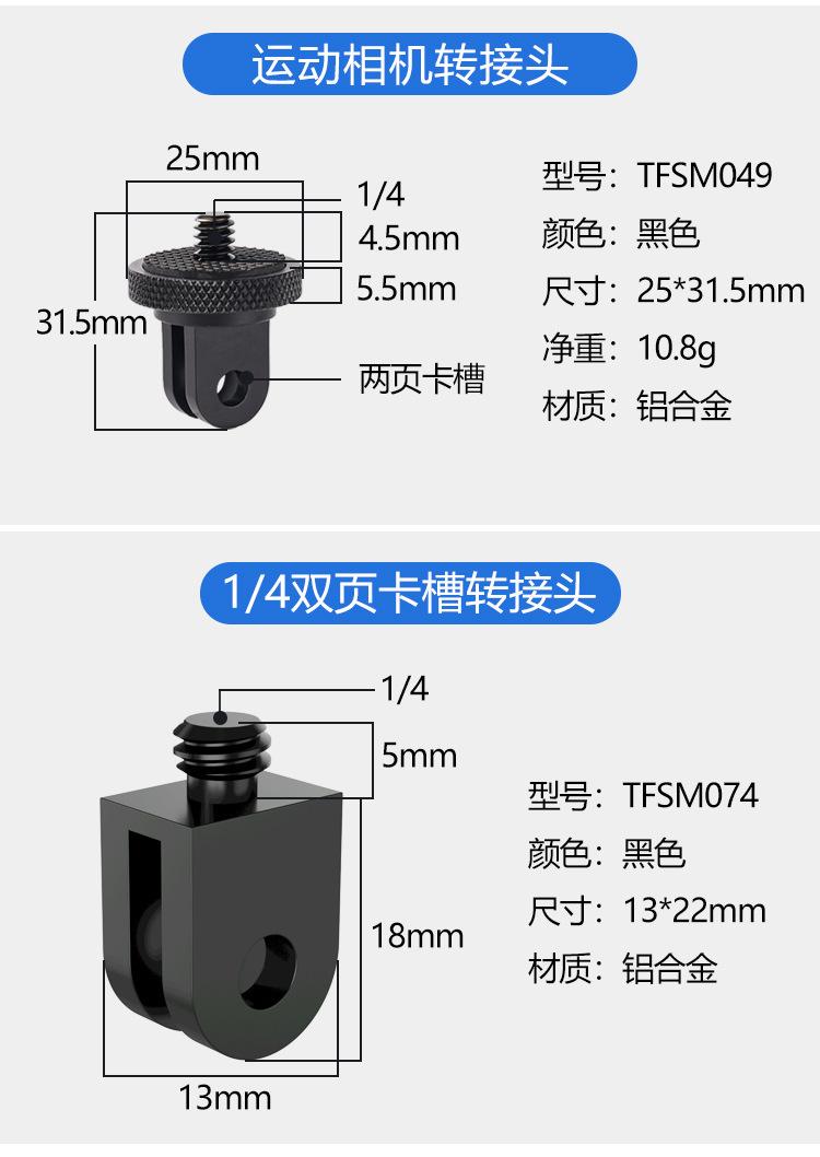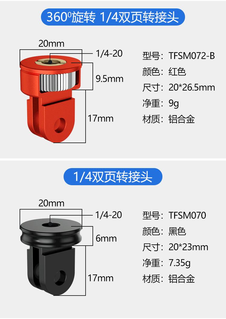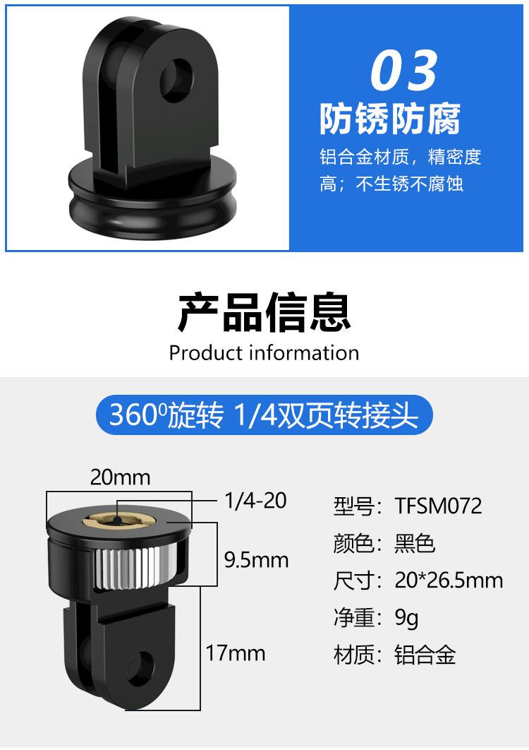 Adaptador de cámara de movimiento GoPro131/4 Adaptador de aleación de aluminio ajustable Adaptador aplicable Insta360X4