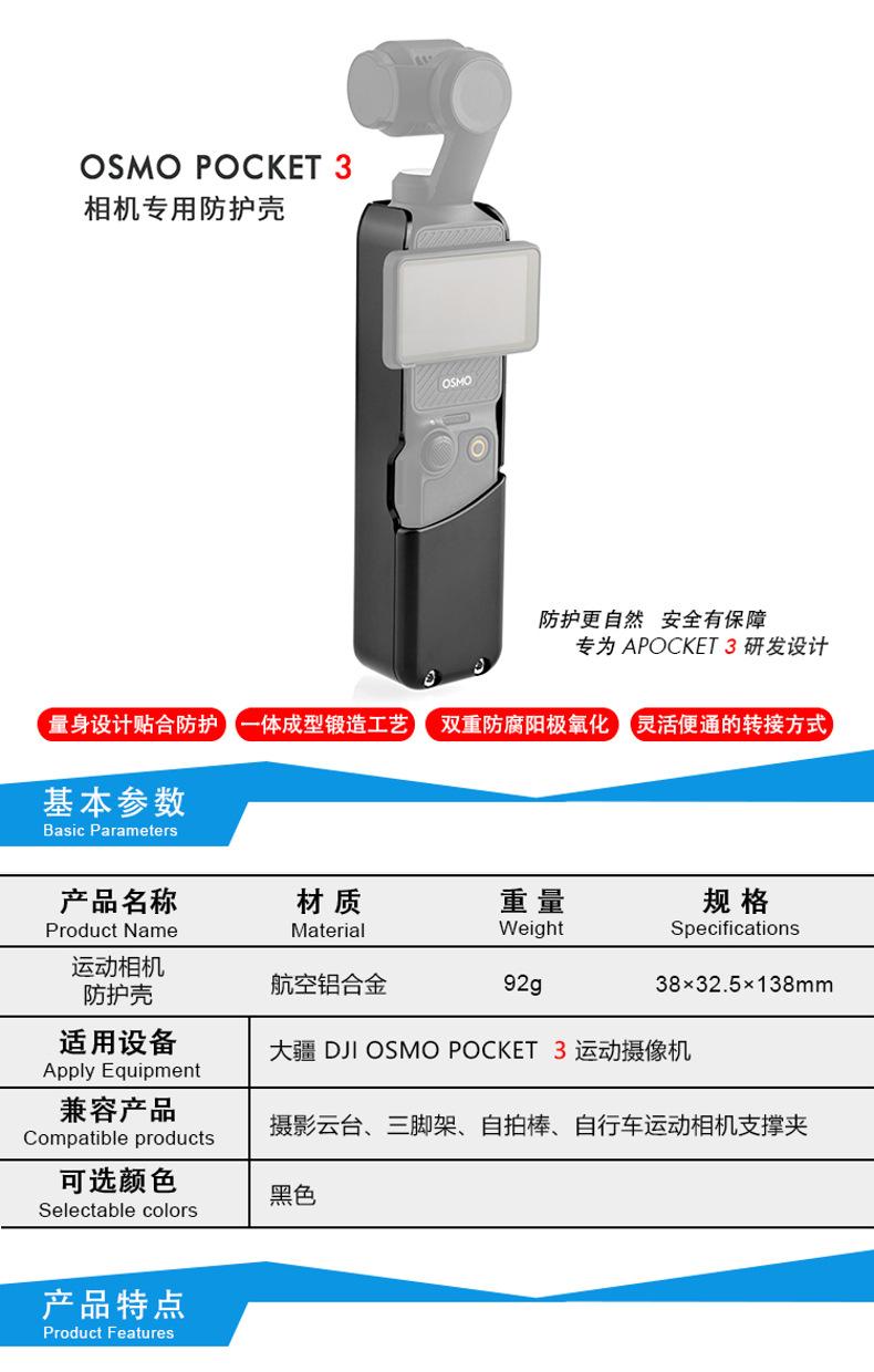Adecuado para DJI Osmo Pocket 3 marco protector de aleación de aluminio DJI Pocket 3 carcasa anticaída de disipación de calor de metal