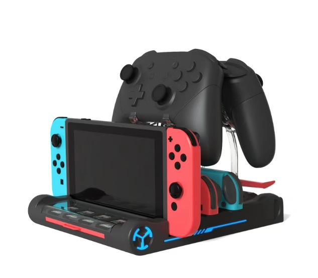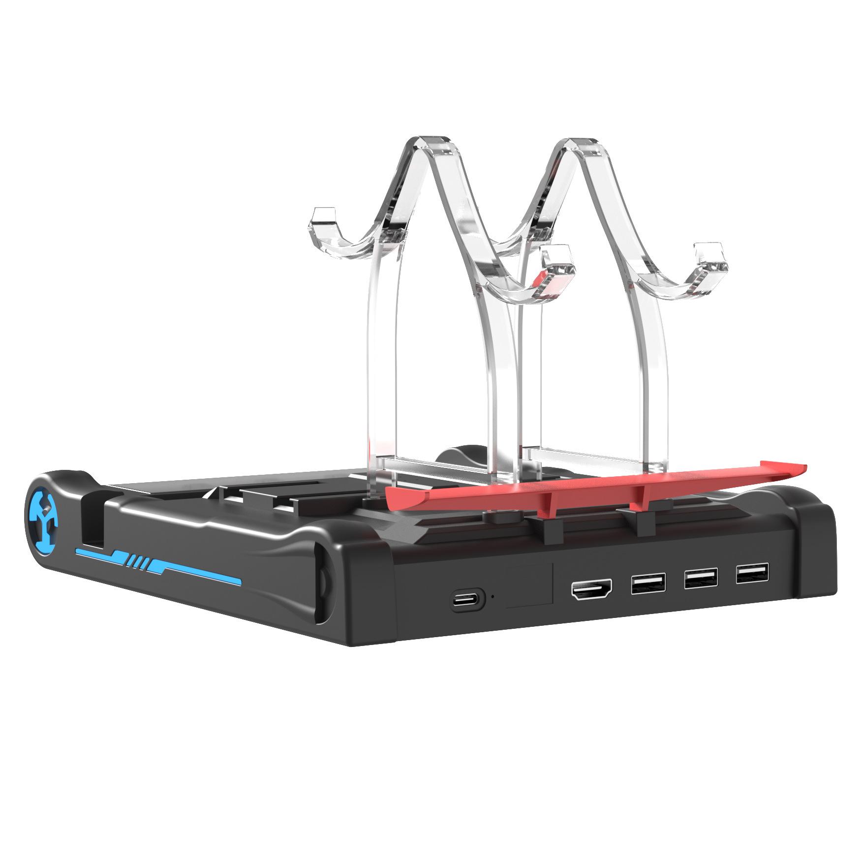 Nombre del producto: soporte de fuente de alimentación para switch oled pantalla de proyección estante de almacenamiento multifunción para tarjetas de juego soporte de carga para mandos Joy-Con