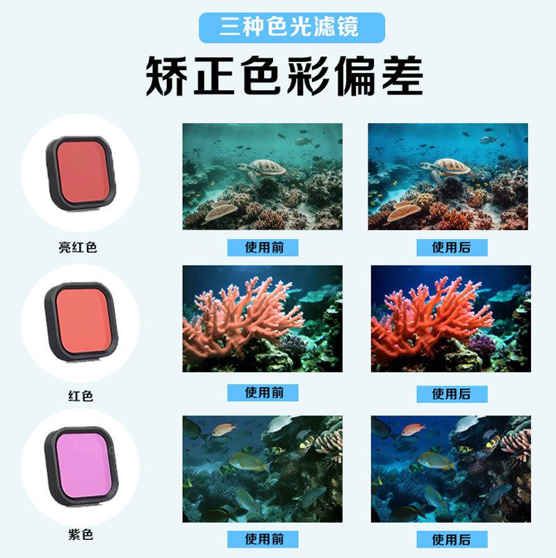 Gopro12/11/10/9 waterproof case, Gopro13 waterproof case, Gopro9-13 generation three-color filter