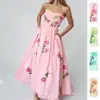 Moda Femenina Nueva Primavera Estilo Europeo y Americano Vestido Estampado Elegante de Cintura Alta con Falda Acampanada Sin Tirantes Vestido Largo