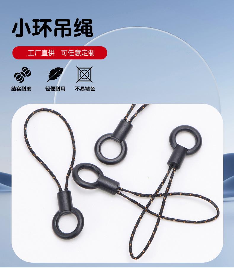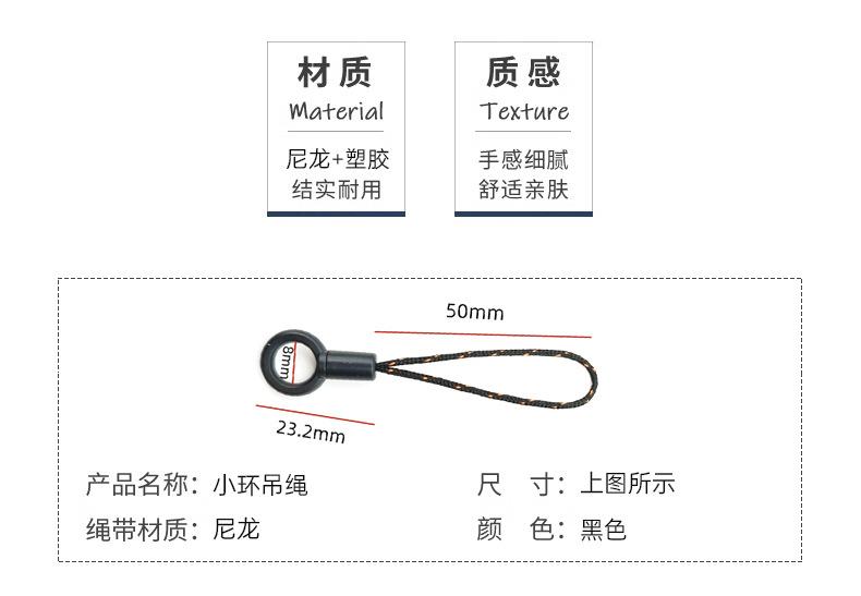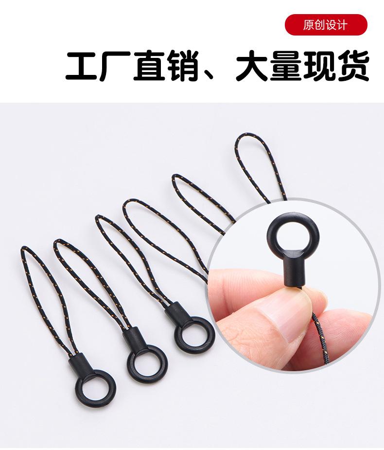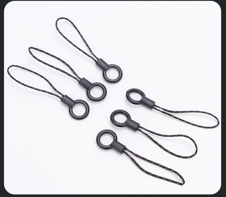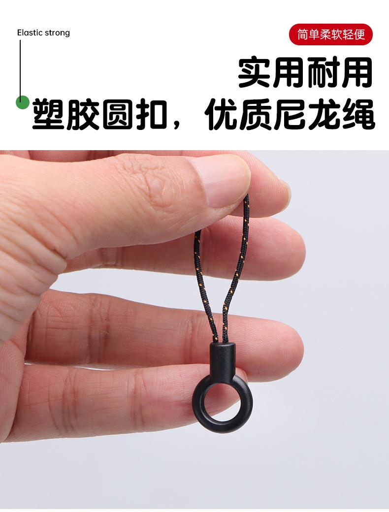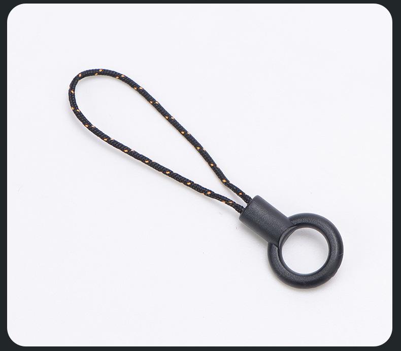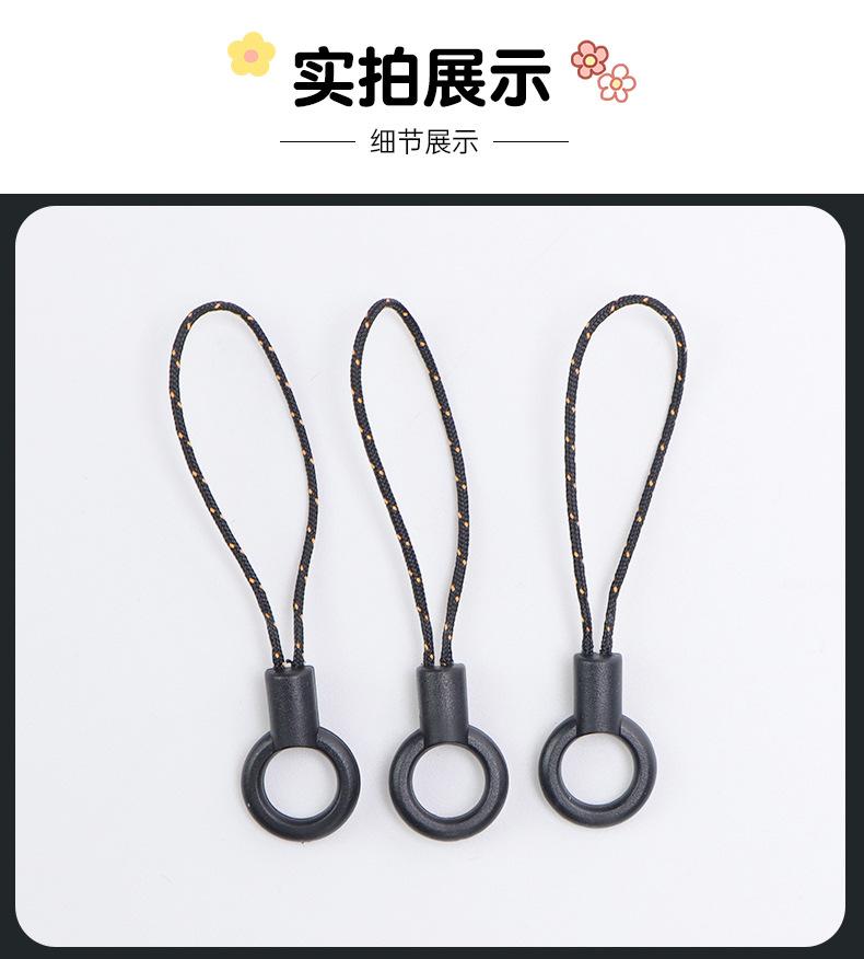 Ventas Directas de Fábrica Teléfono Móvil Anillo Colgante Pequeño Círculo Negro Cabeza de Cuerda Pequeña Hebilla de Plástico Hebilla Colgante Cordón para el Dedo Cordón Moldeo por Inyección