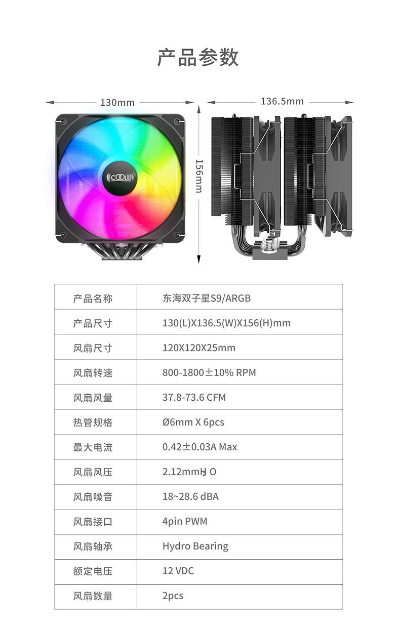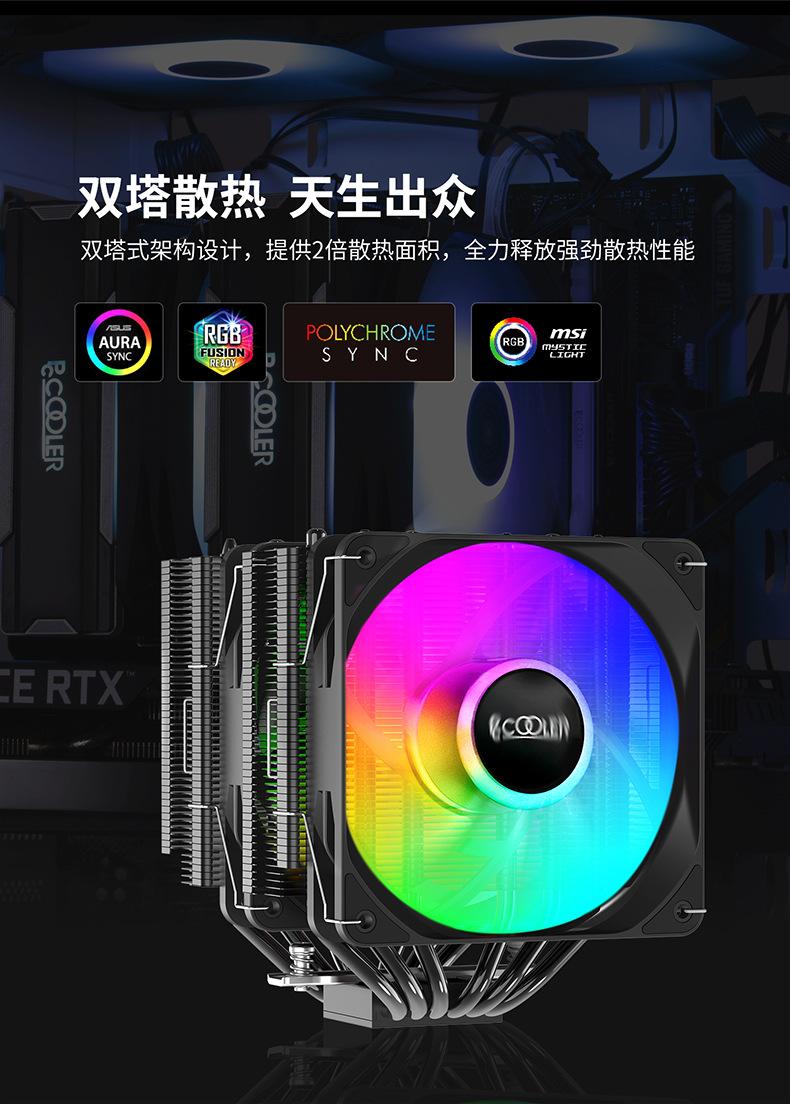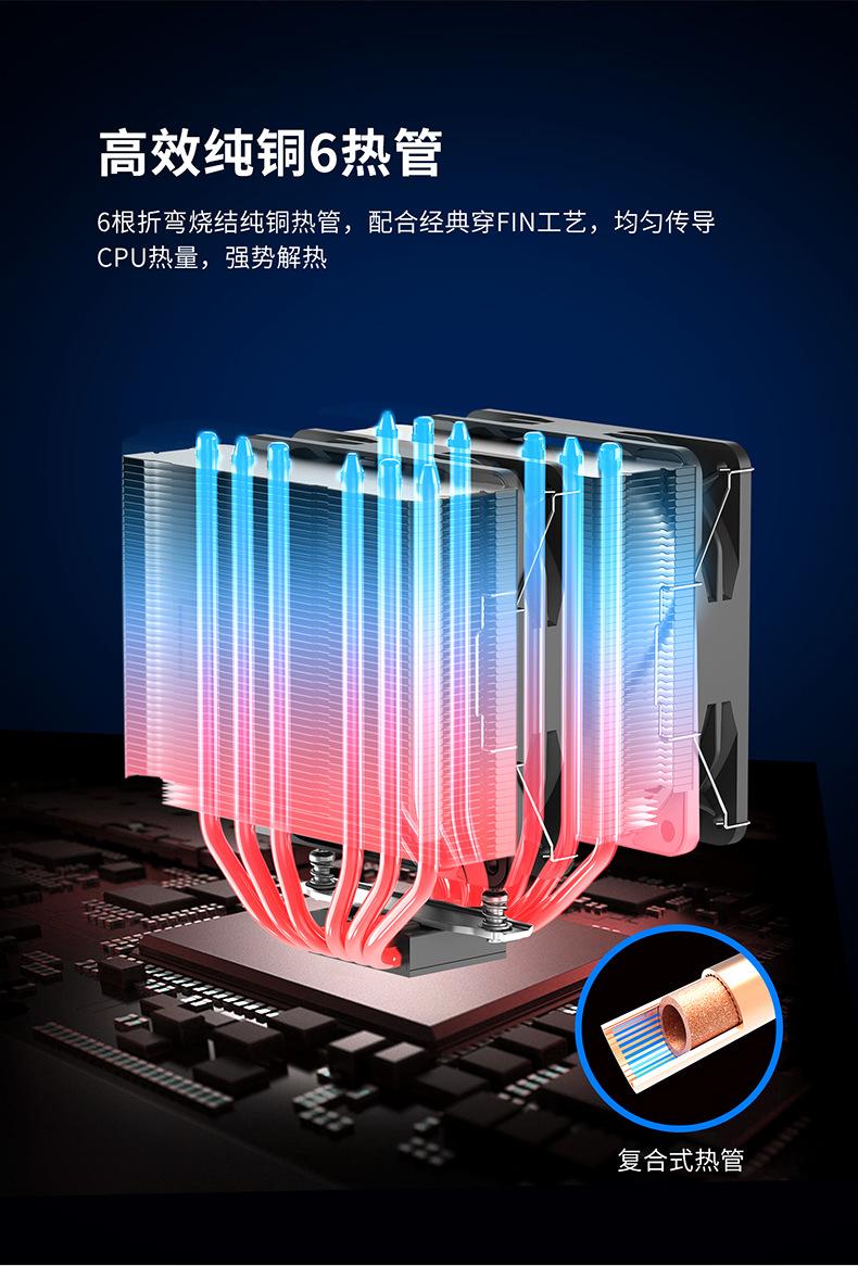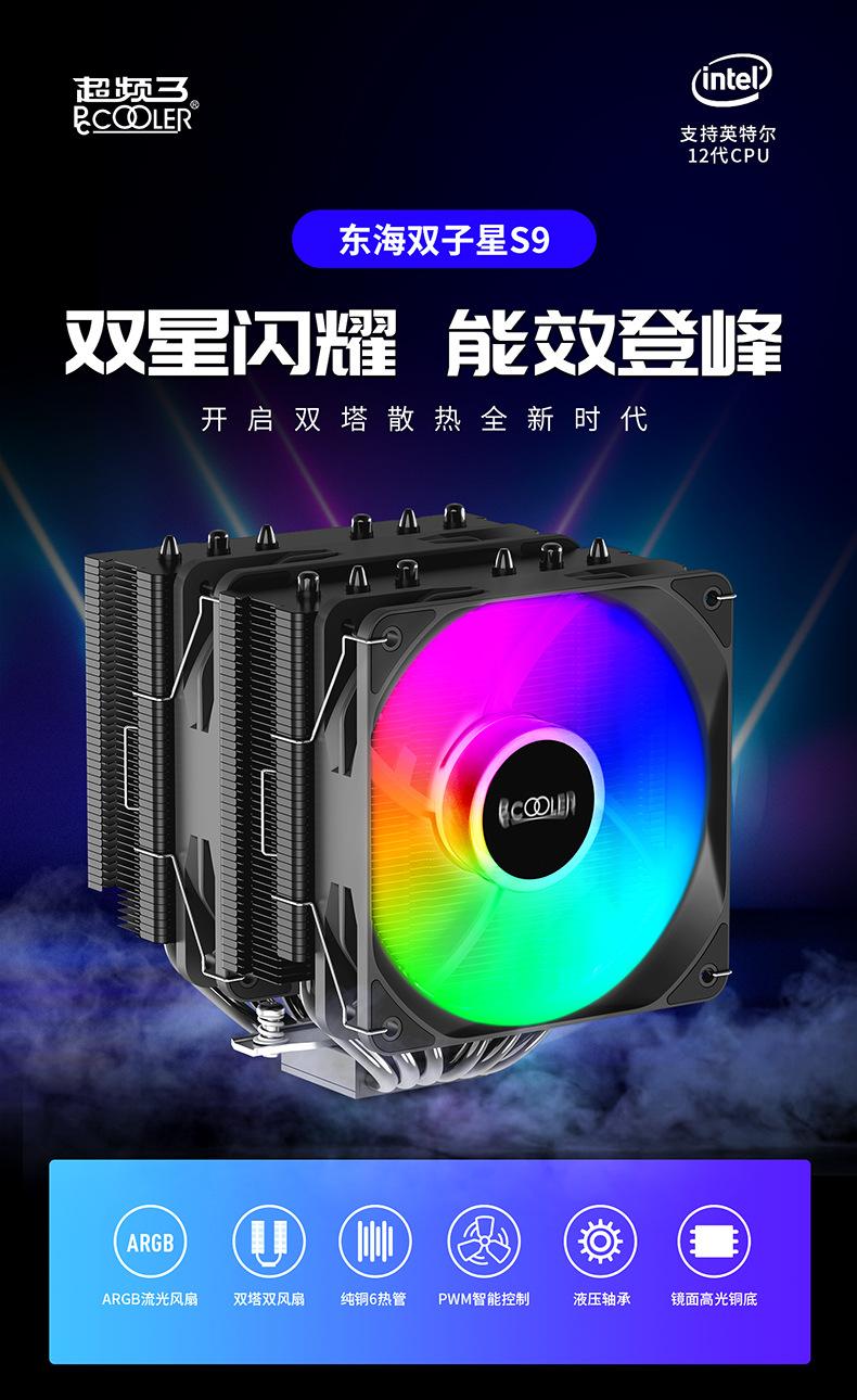 Radiador de CPU de torre doble S9s7 de tres frecuencias y súper frecuencia, con 6 tubos de calor y ventilador de enfriamiento por aire para computadora de escritorio.