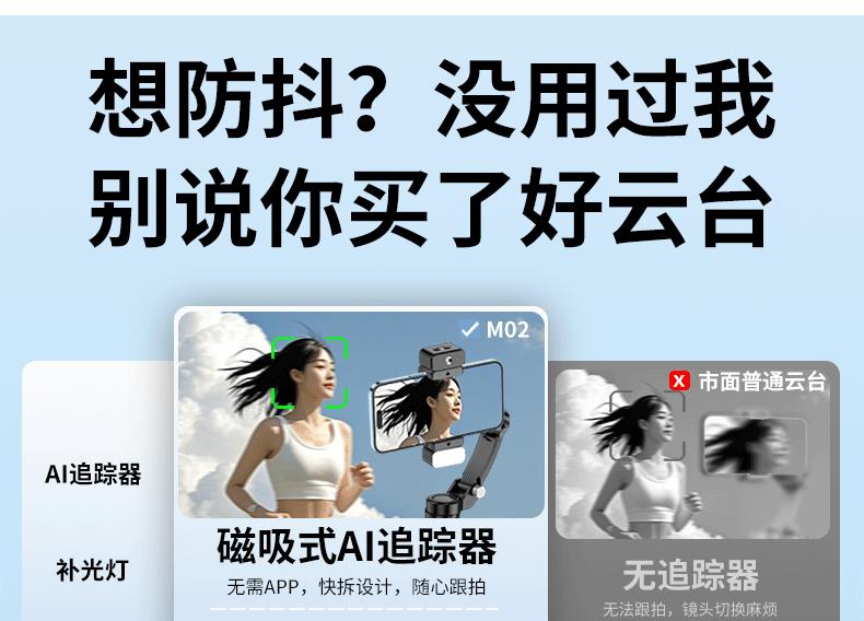 M02-smart three-axis gimbal stabilizer, [m02+ follower module + fill light module] intelligent three-axis gimbal stabilizer