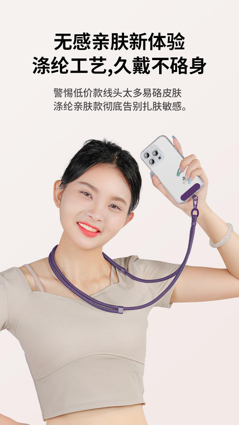 Can be hung around the neck/cross-body [rotating buckle·lilac purple] 7mm polyester rope + stainless steel clip