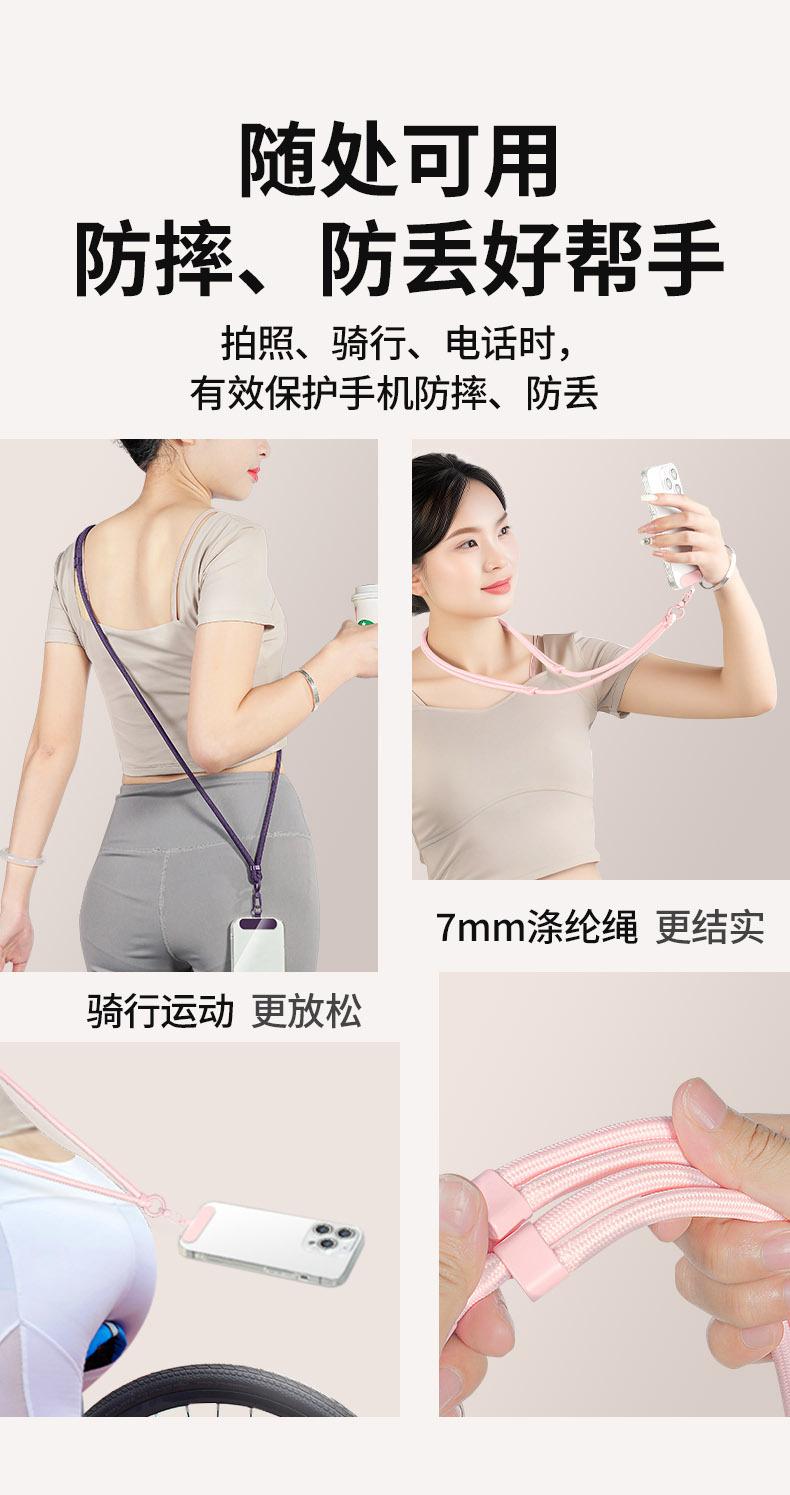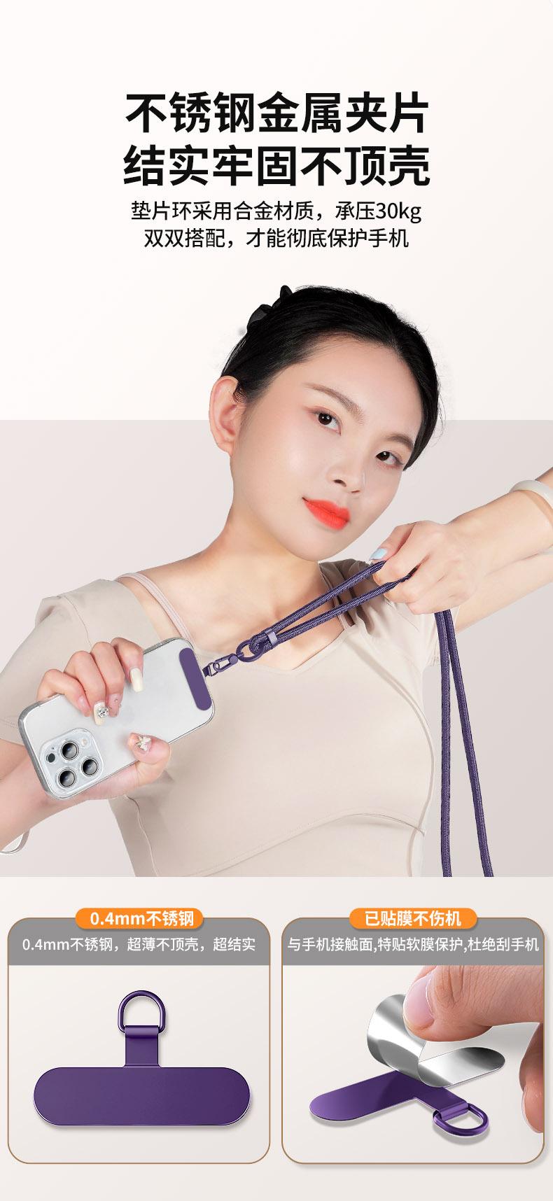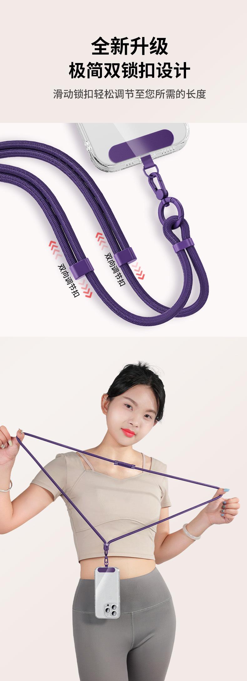 Can be hung around the neck/crossbody [rotating buckle·lilac purple] 7mm polyester rope + stainless steel clip...