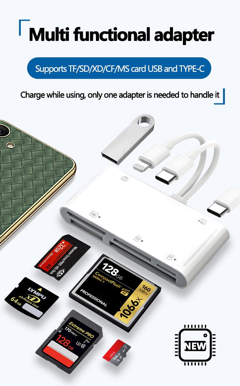 Lector de tarjetas 7 en 2 multifunción XD card MS card TF card SD card CF card disco duro para teléfono móvil Apple TypeC