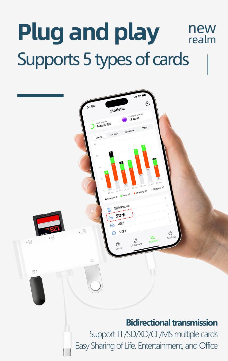 5-in -1 Apple Interface [Read CF TF SD USB Charging] Read Hard Disk