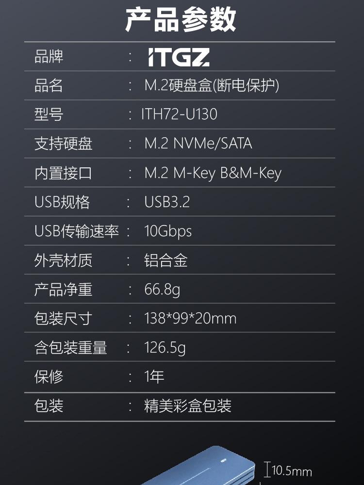 Caja de unidad de estado sólido ITGZ M.2 de doble protocolo, 10 Gbps, protección contra apagado, computadora, portátil, teléfono, USB externo