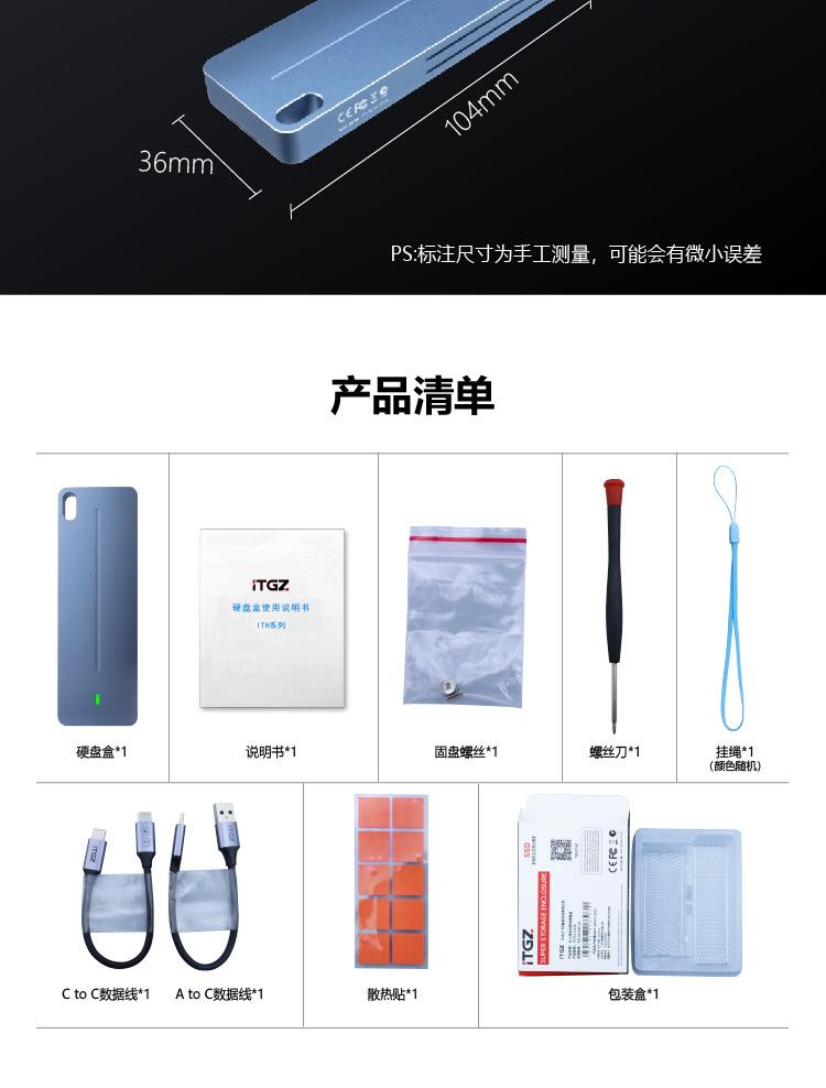 Hard drive box, hard drive, manual, heat dissipation sticker