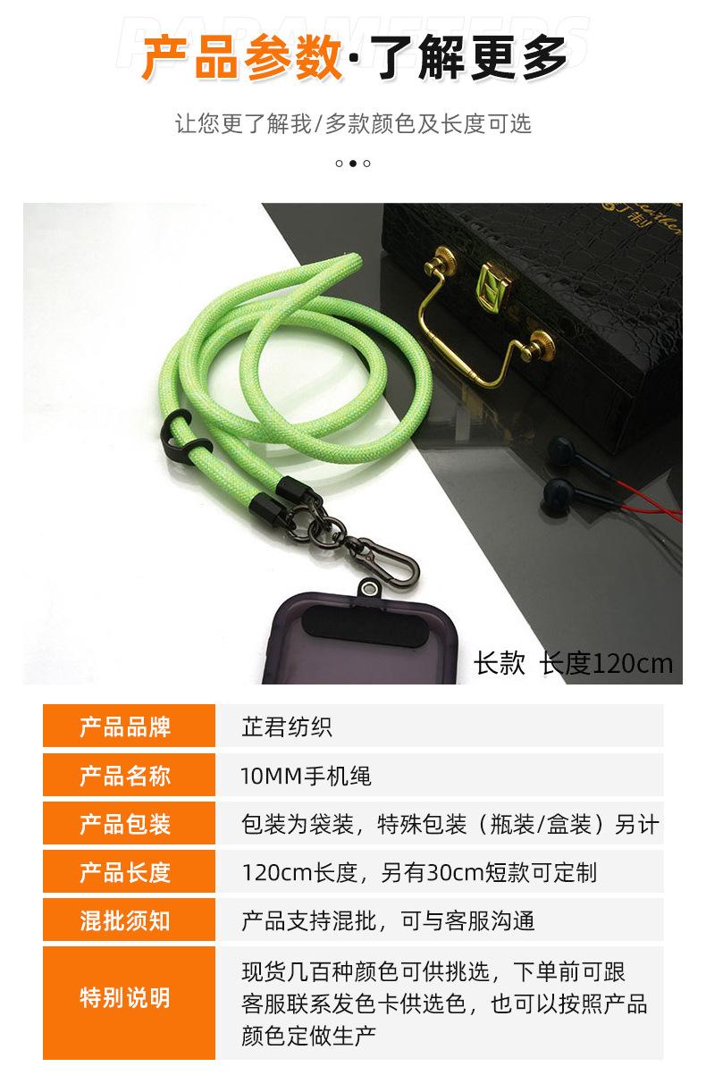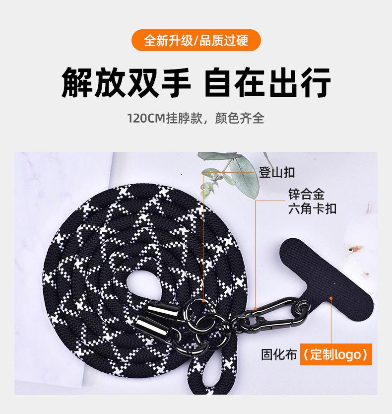 Fabricante 8mm Blanco y Negro Grano Fino Redondo Cordón para Teléfono Móvil Poliéster Anti-Caída Trenzado DIY Cordón Pulsera 120cm