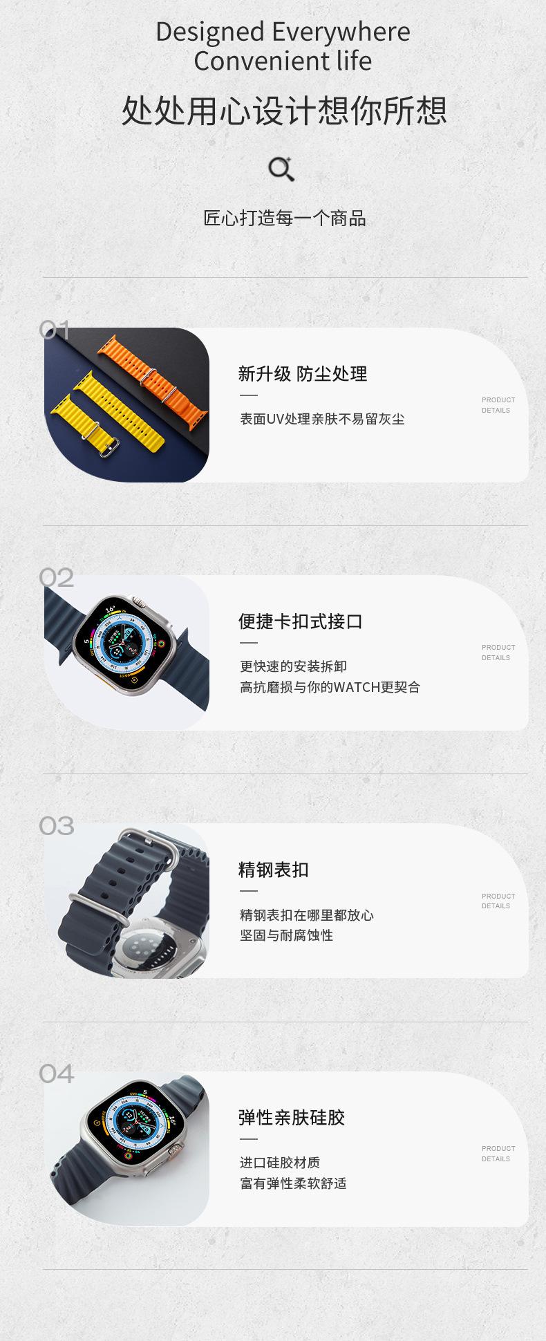 49mm True Snap Silicone Marine, 49MM fake buckle silicone strap, 42-49mm silver Milan steel watch