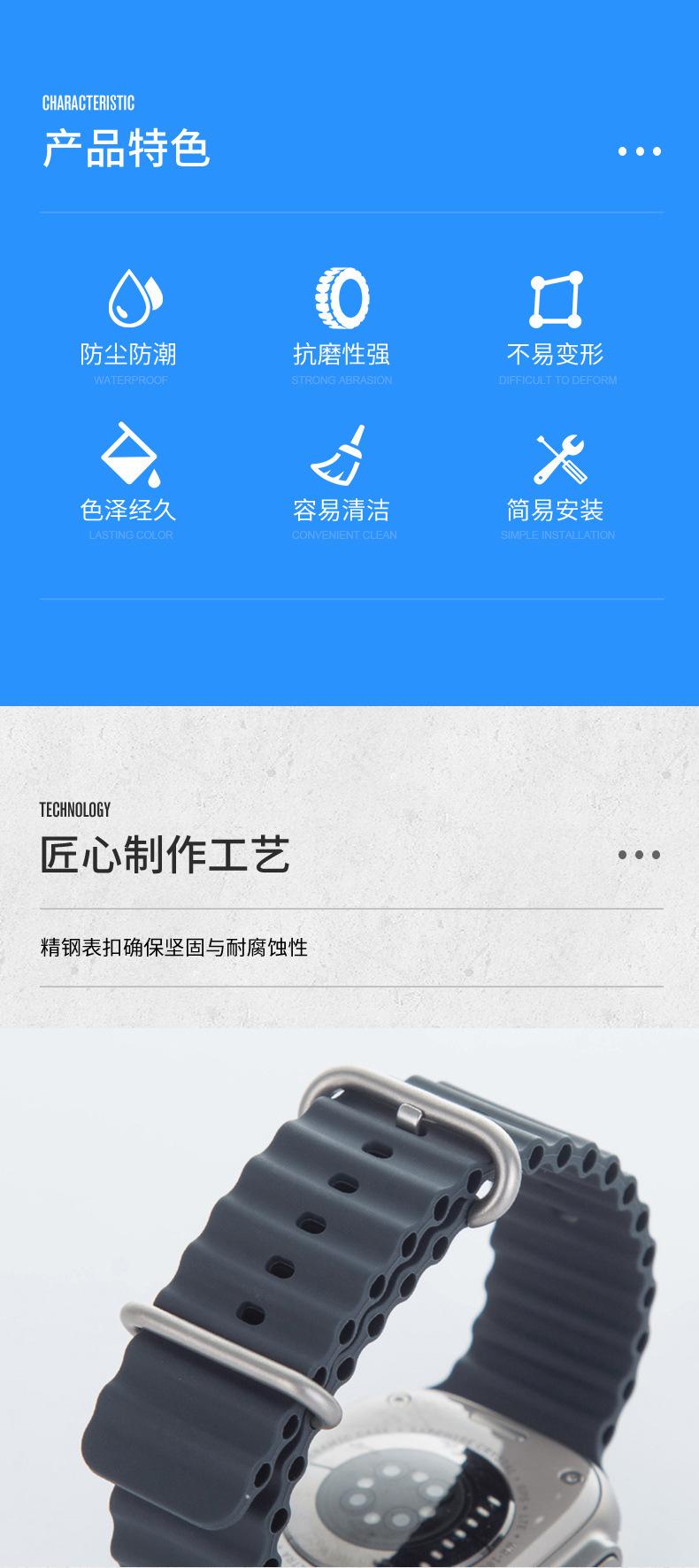 Correa de silicona marina para Apple Watch Band iwatchs8/6/7 Smart Watch