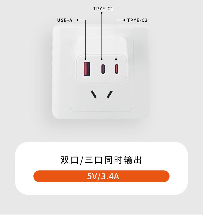 Black [two usb+type-c three-in-one] 33w fast charge
