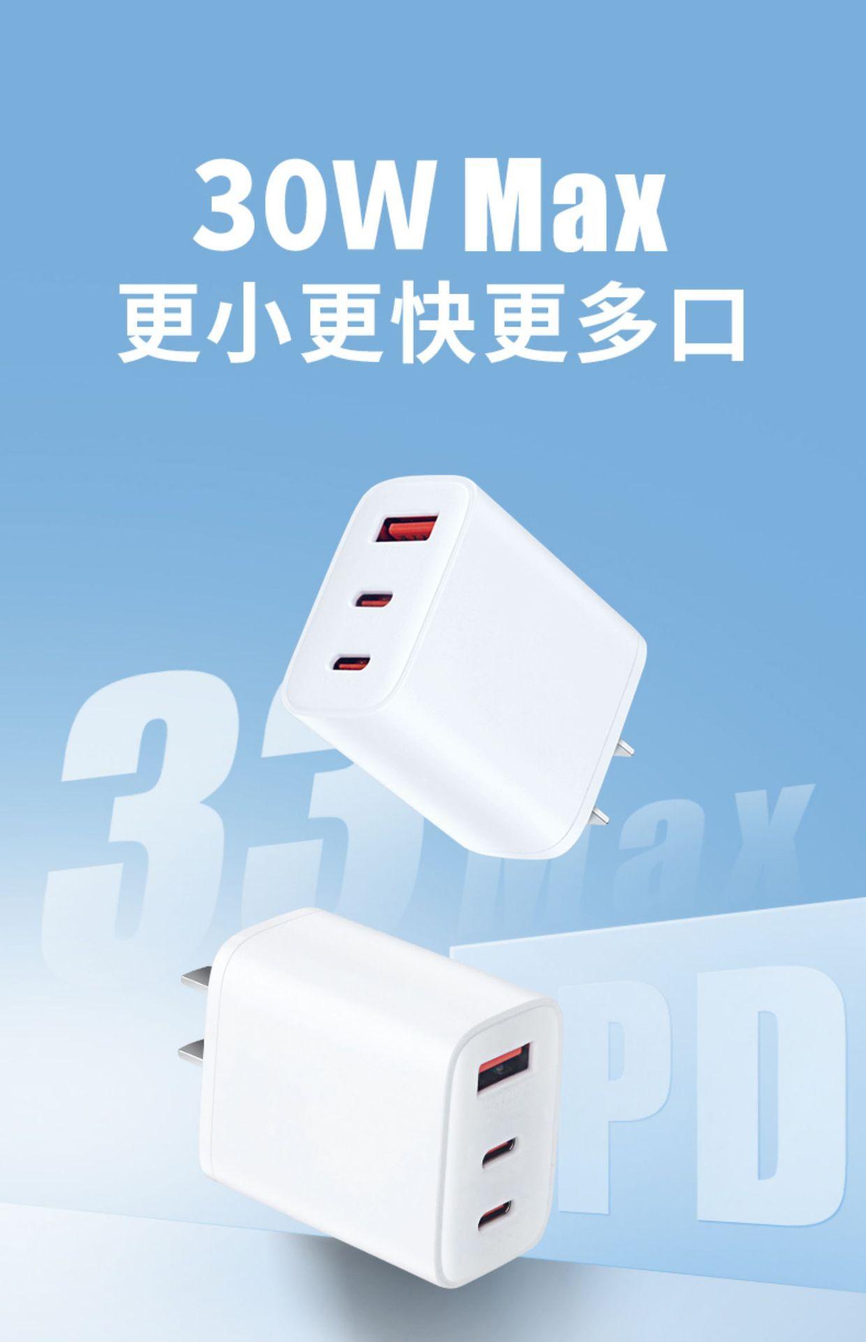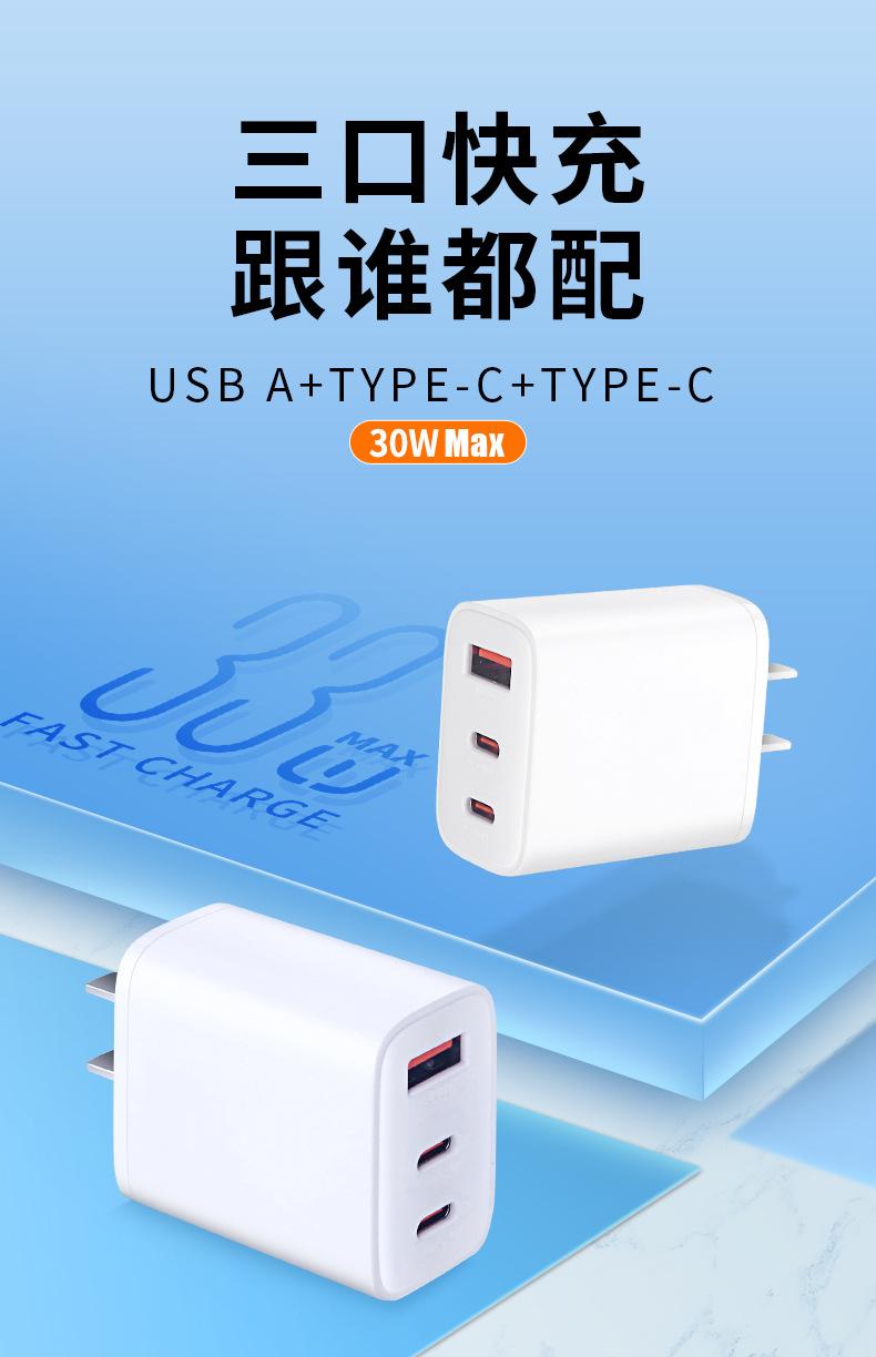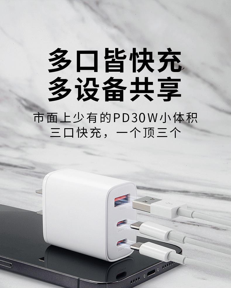 Cargador de teléfono móvil 30W cabezal de carga superrápida tres en uno carga rápida PD para Apple 16 Huawei cabezal de carga tipo C