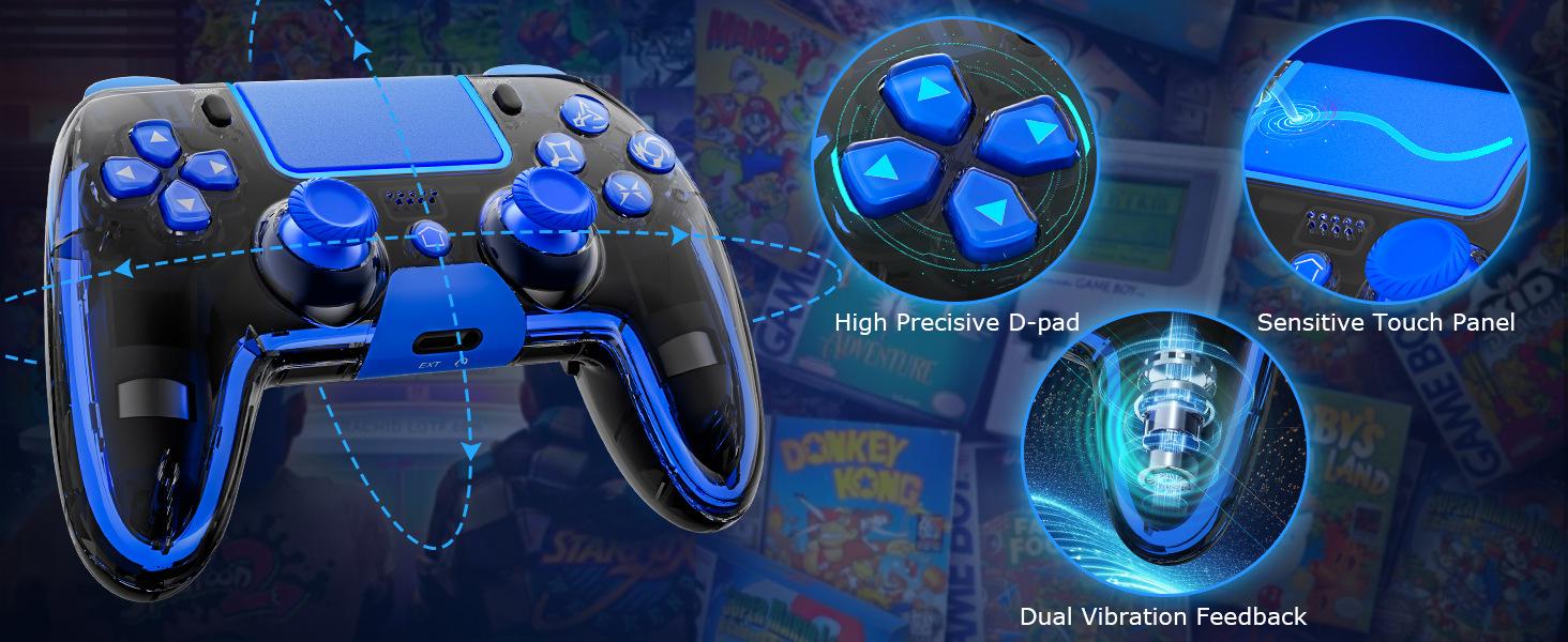 Mando de juego PS4 Doble Balancín Hall P4 Inalámbrico Bluetooth Luz Deslumbrante RGB Móvil PC Android steam