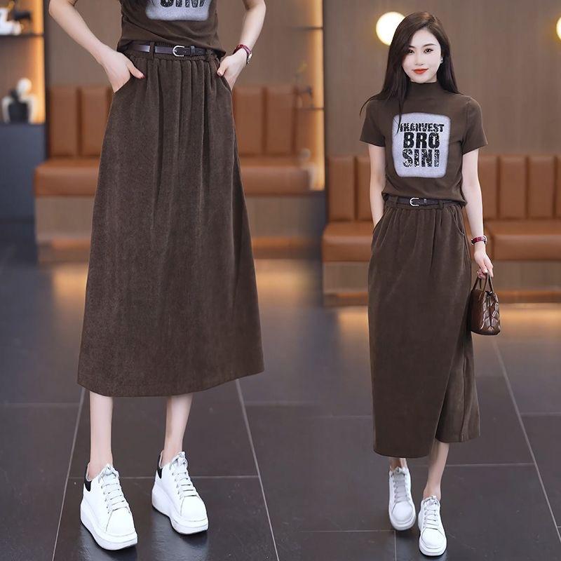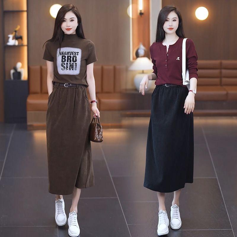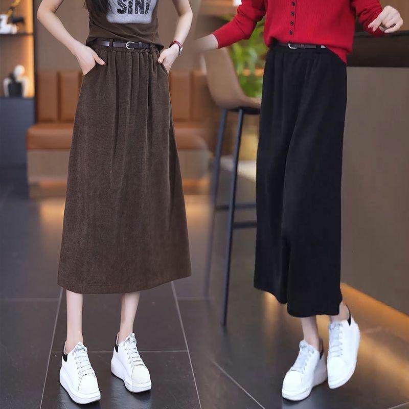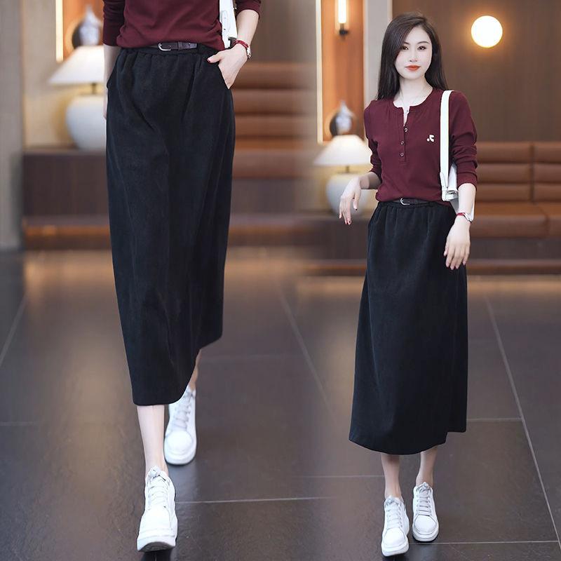 Falda Midi para Mujer 2024 Otoño Nueva Moda Versátil Cintura Alta Cubre Caderas Dobladillo Amplio Look Adelgazante Falda A-Line
