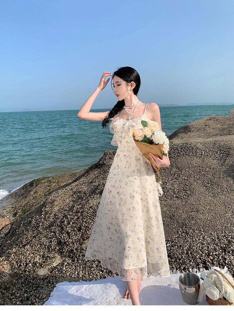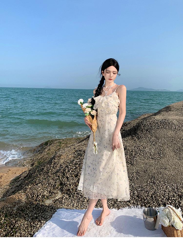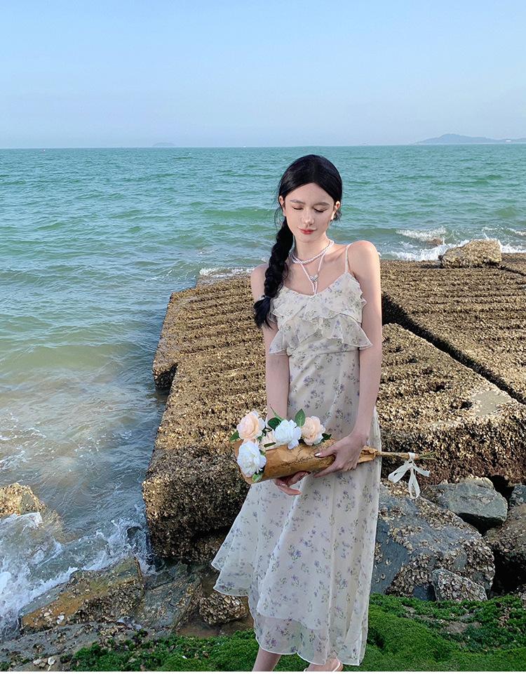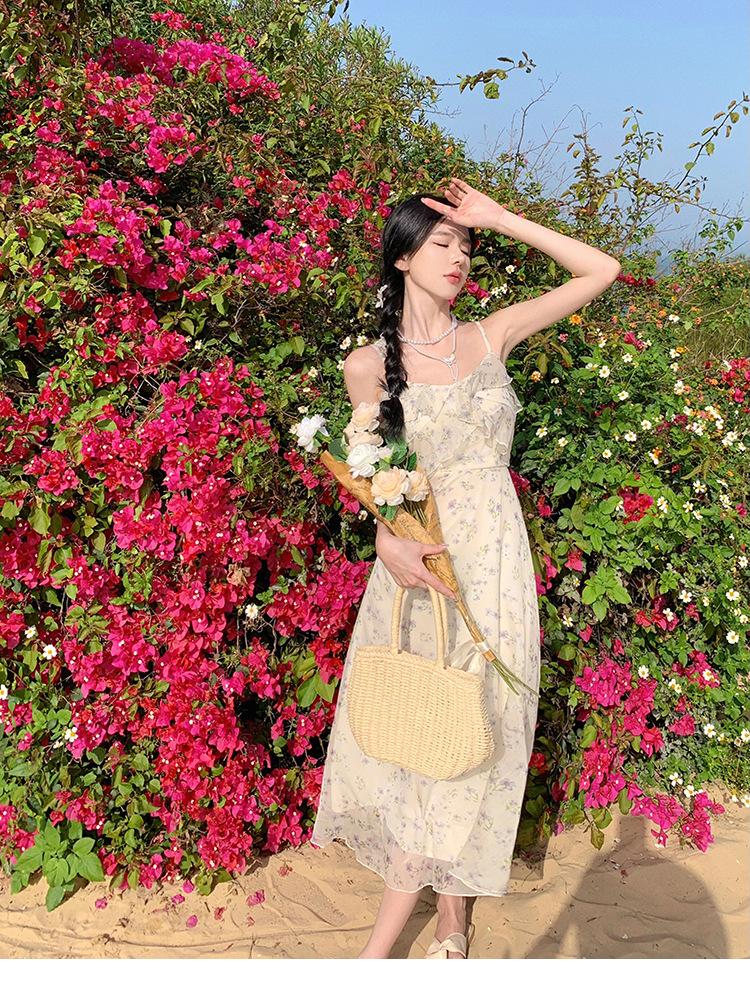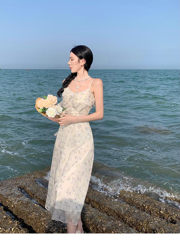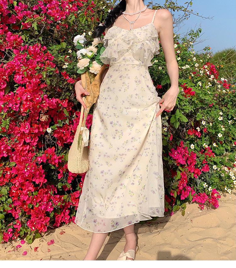 Vestido de tirantes florales suaves de jazmín, diseño de verano, pequeño, super hada, vacaciones, playa, vestido largo