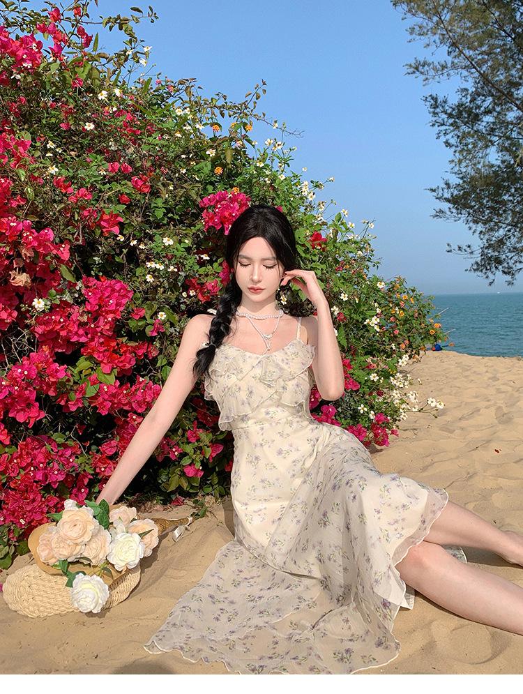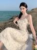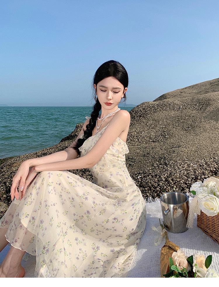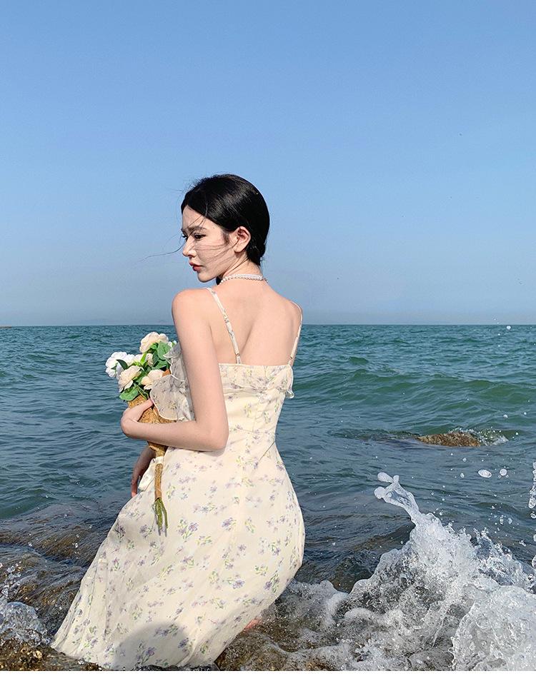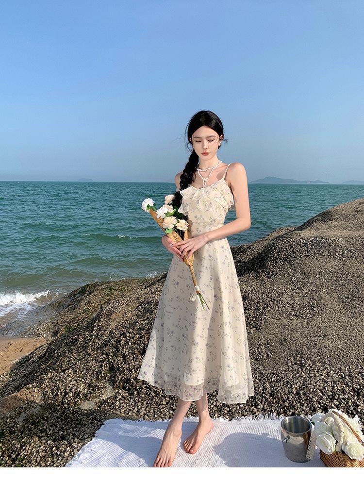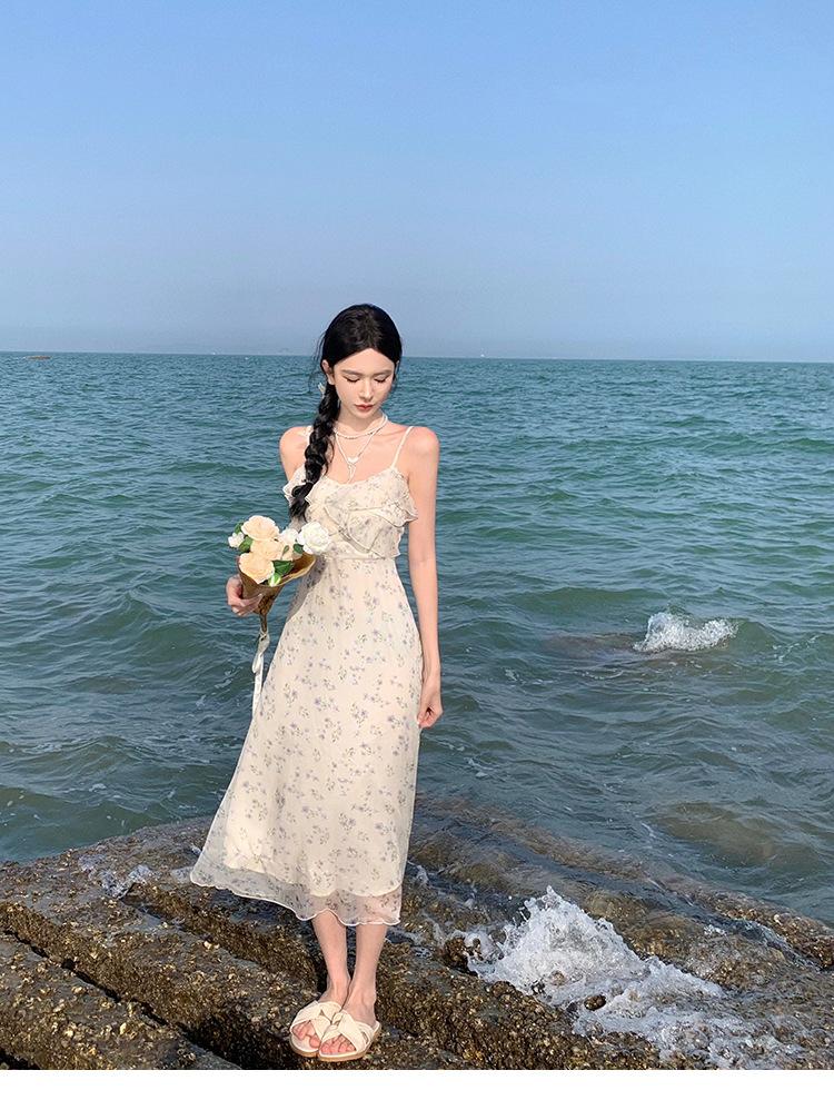 Vestido de tirantes florales suaves de jazmín, diseño de verano, pequeño, super hada, vacaciones, playa, vestido largo