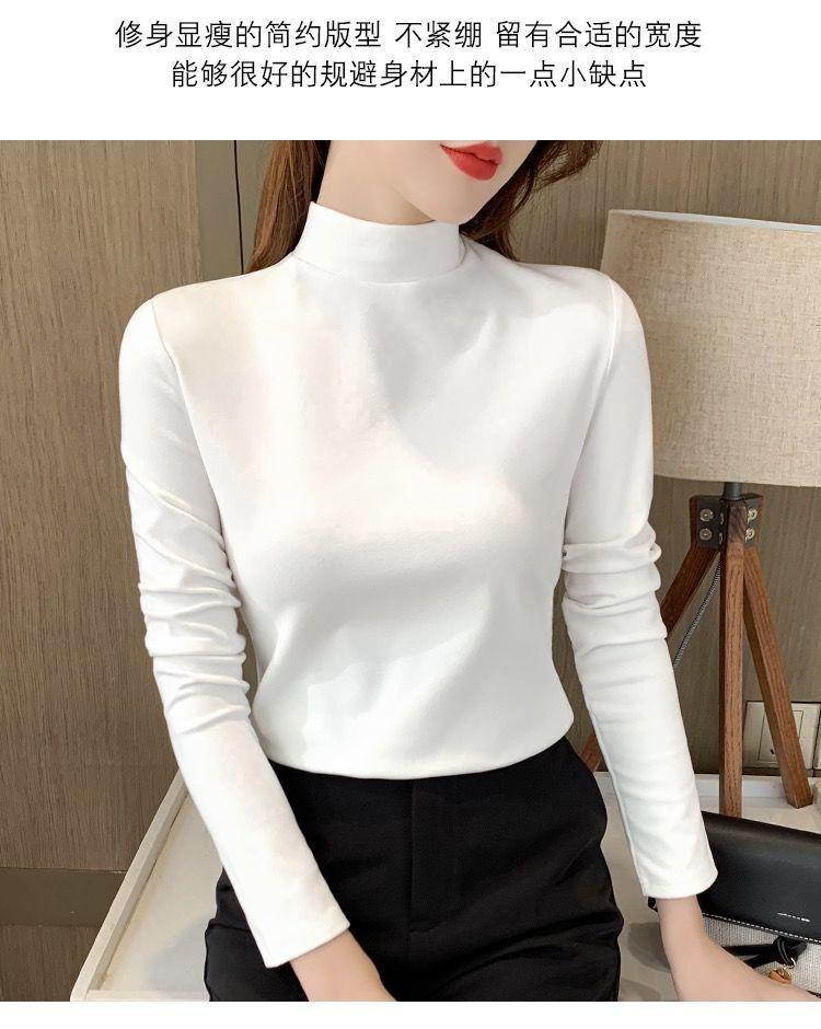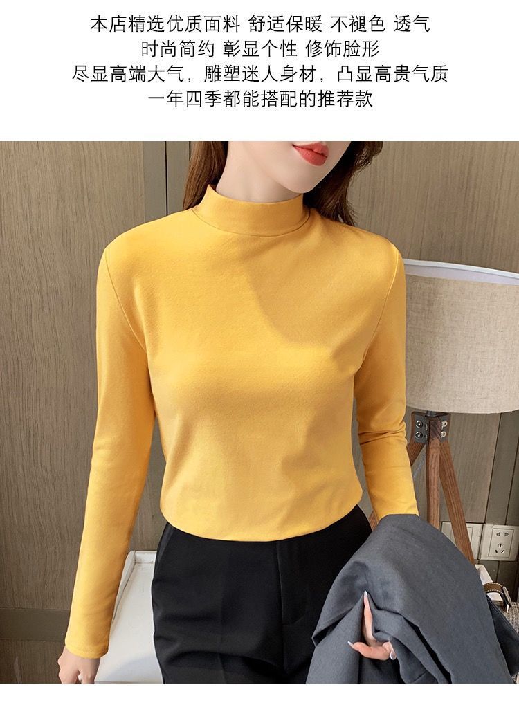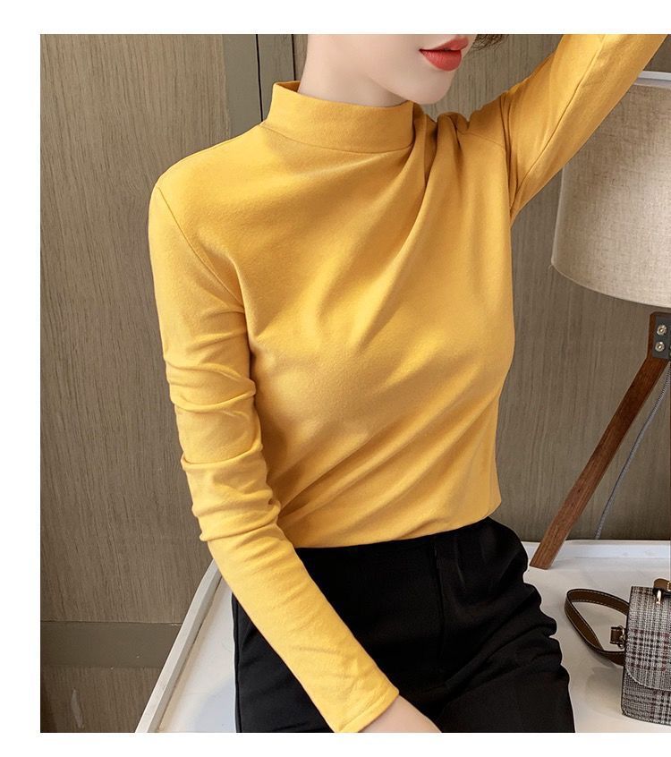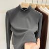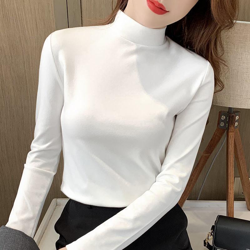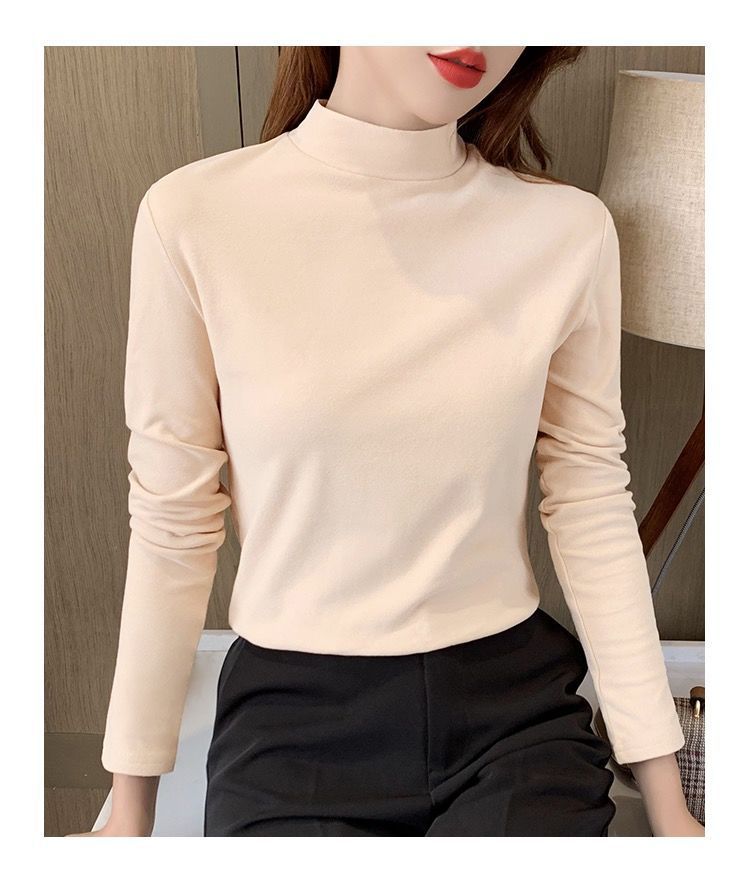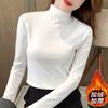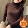 Camiseta de manga larga para mujer, de terciopelo de doble cara, con cuello medio alto y forro polar, gruesa y cálida, ajustada, combinable con todo, para otoño e invierno.